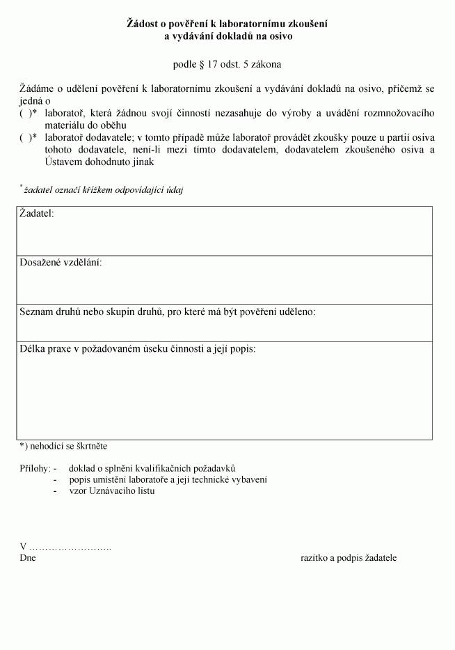 razítkem laboratoře. V případě pověřené laboratoře, která nebude