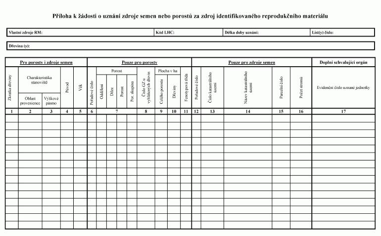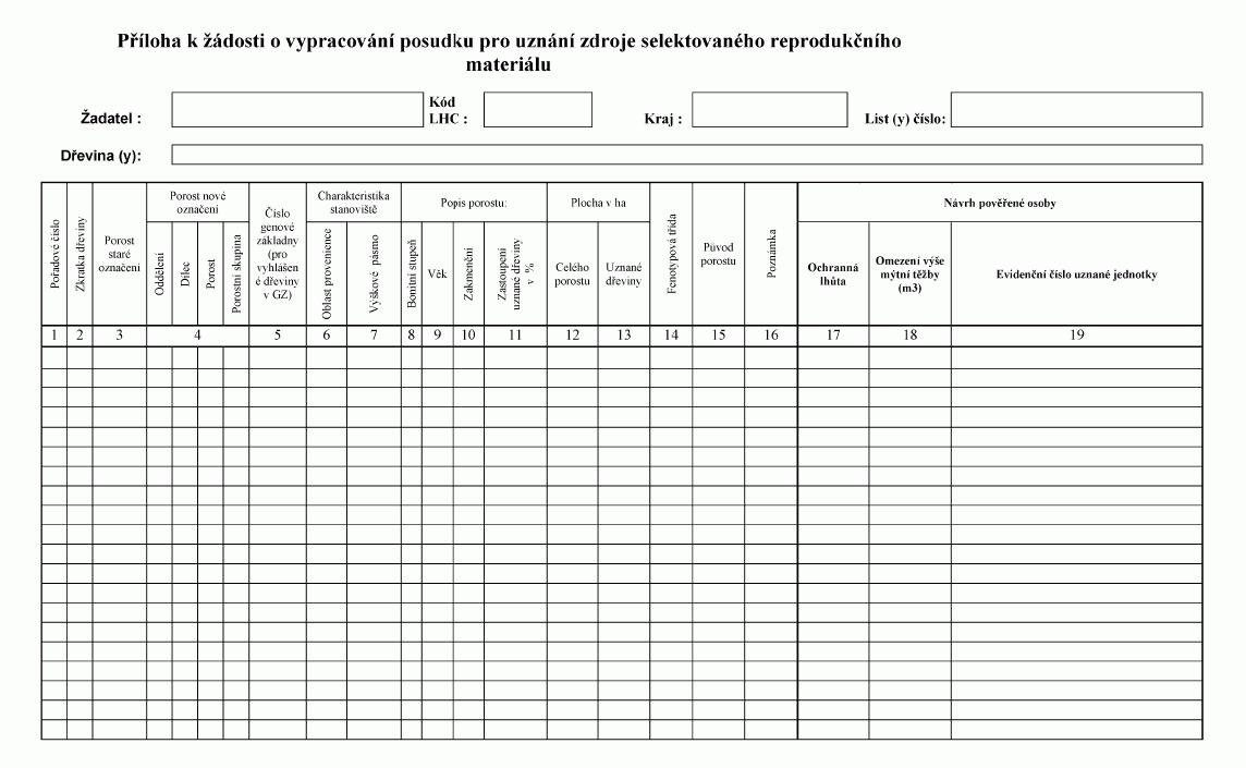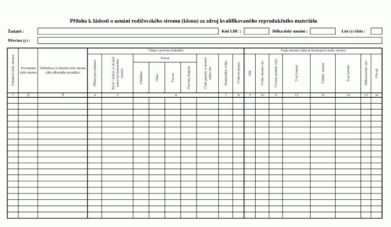 Příloha k žádosti o uznání rodičovského stromu (klonu) za zdroj