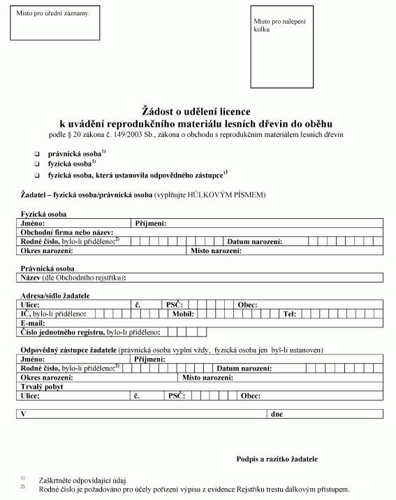 Příloha k Žádosti o udělení licence podle zákona č. 149/2003