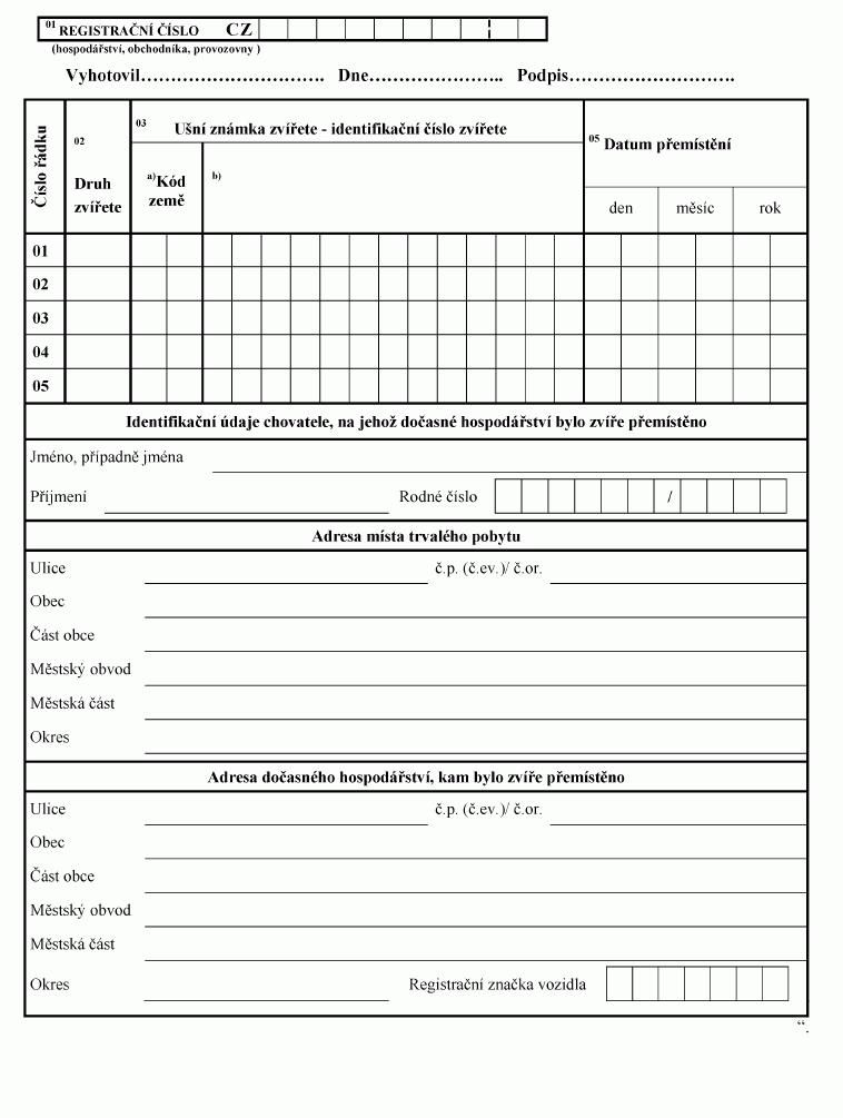 Poznámka: Identifikační číslo zvířete uvedené na ušní známce se uvádí vždy v tomto