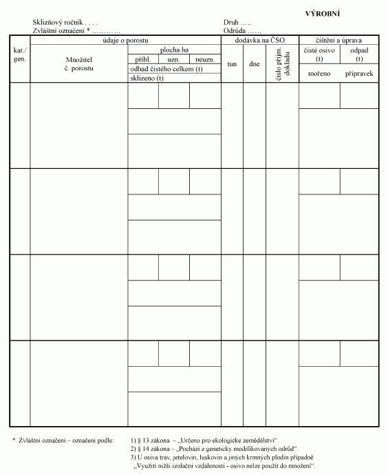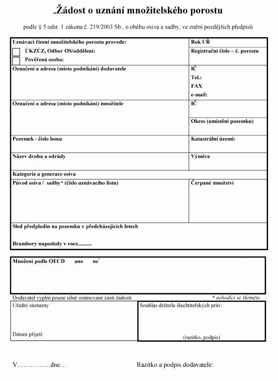 množitelských porostů a vydávání dokladů na množitelské porosty nahrazuje vzorem