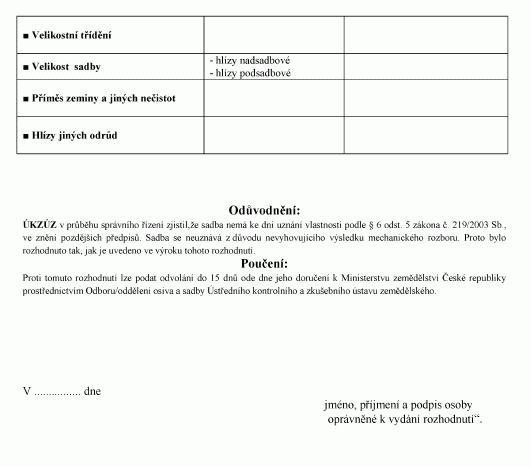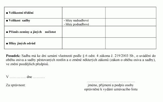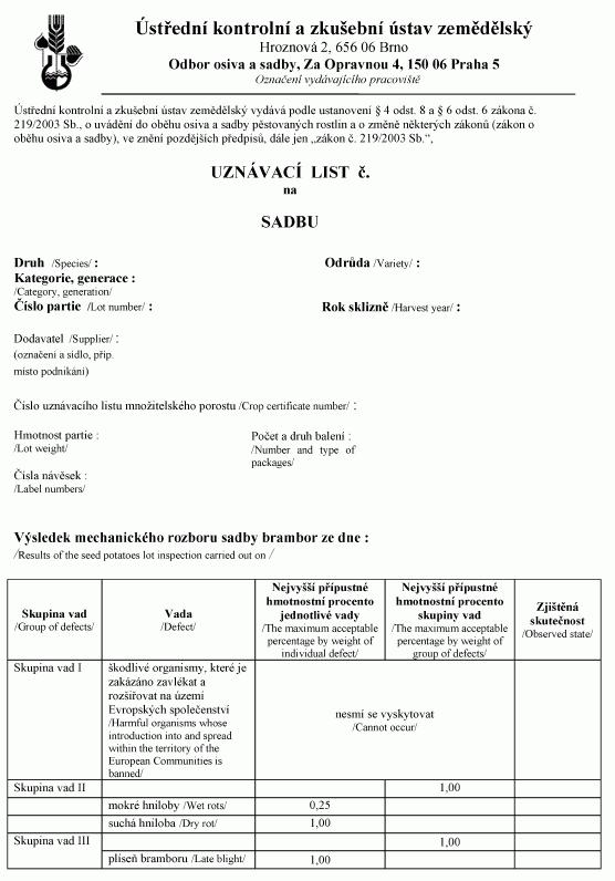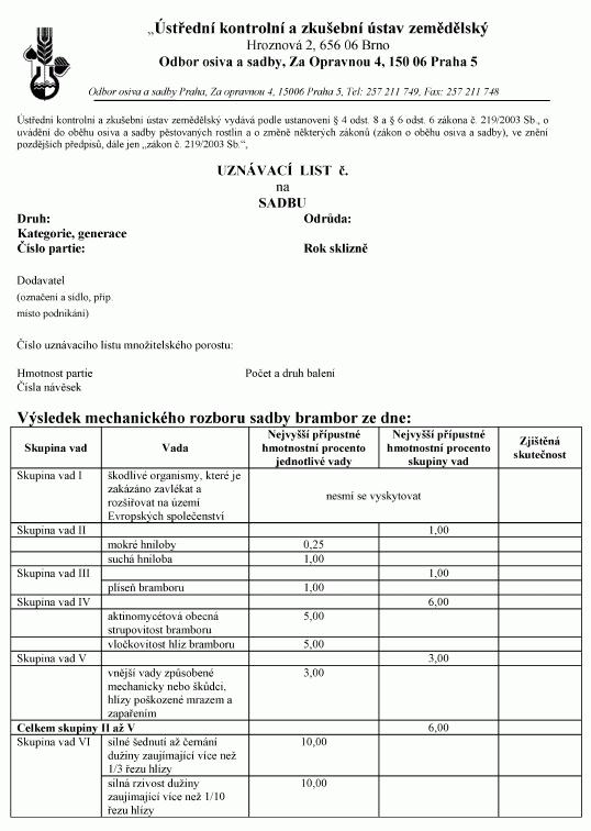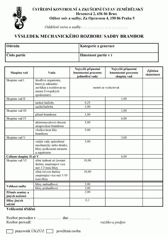 sadby brambor“ nahrazují slovy „pro výsledek mechanického rozboru sadby brambor“