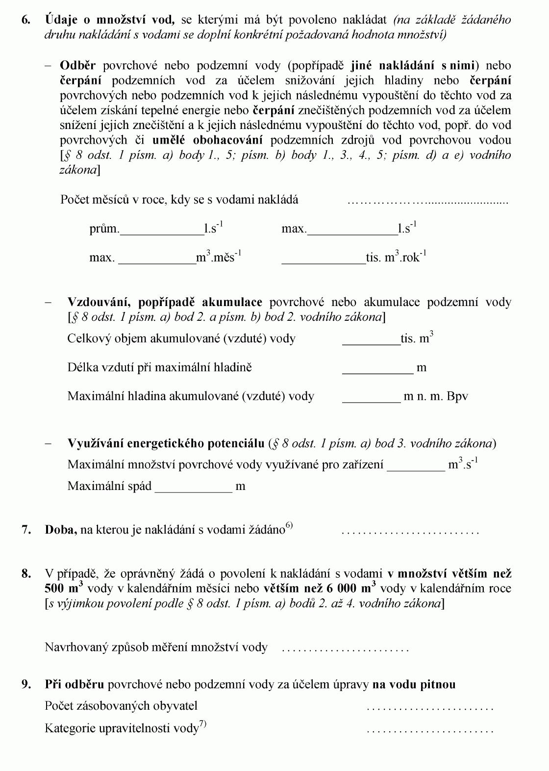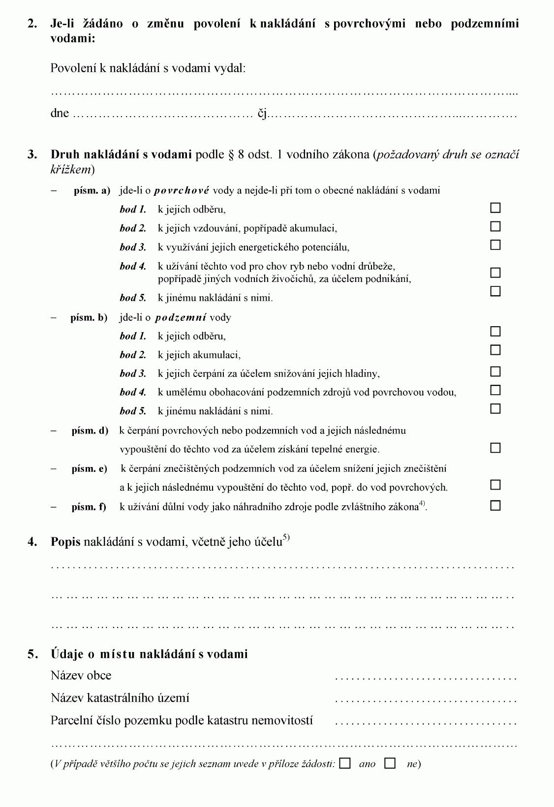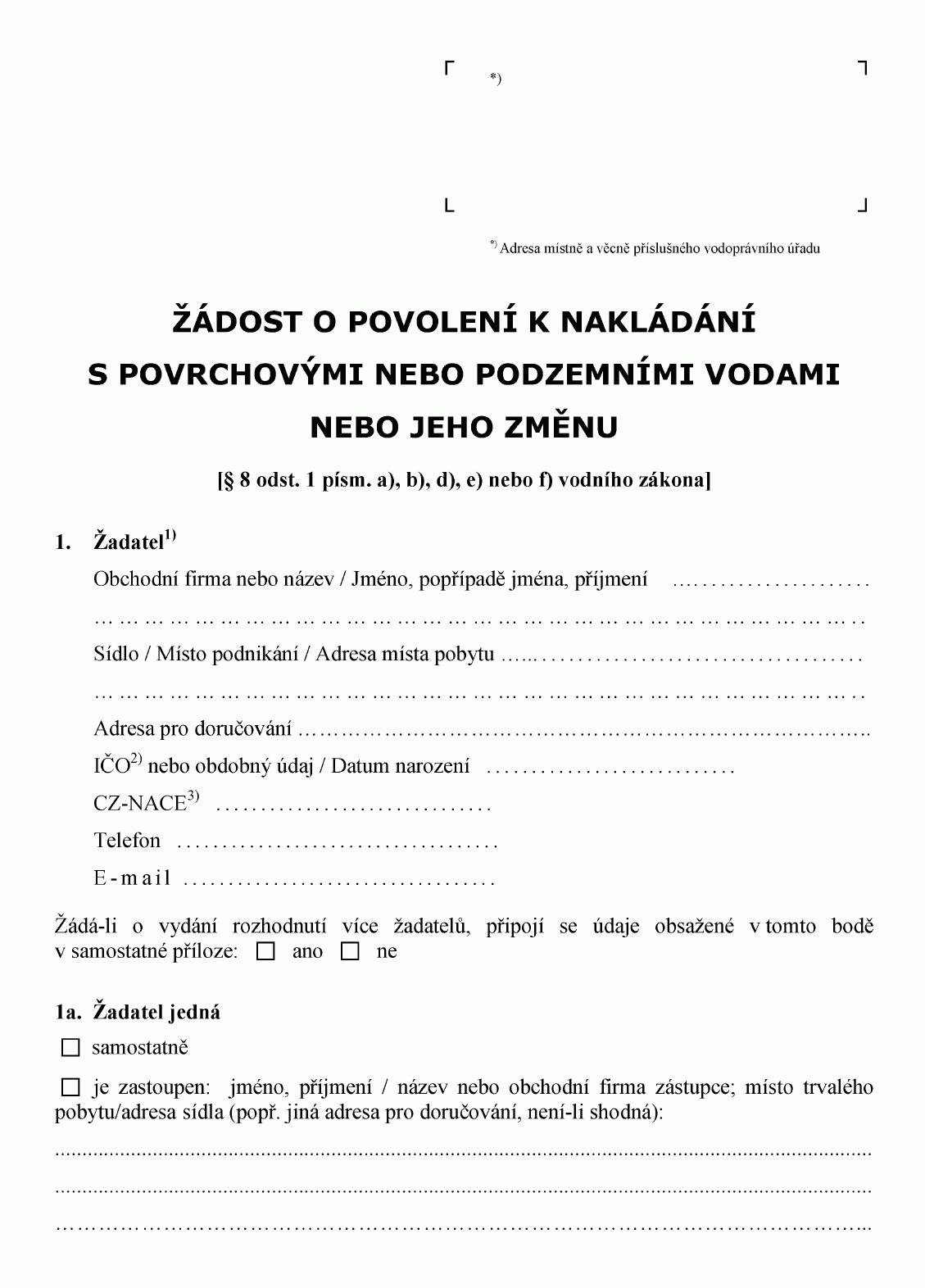 ŽÁDOST O POVOLENÍ K NAKLÁDÁNÍ S POVRCHOVÝMI NEBO PODZEMNÍMI VODAMI NEBO