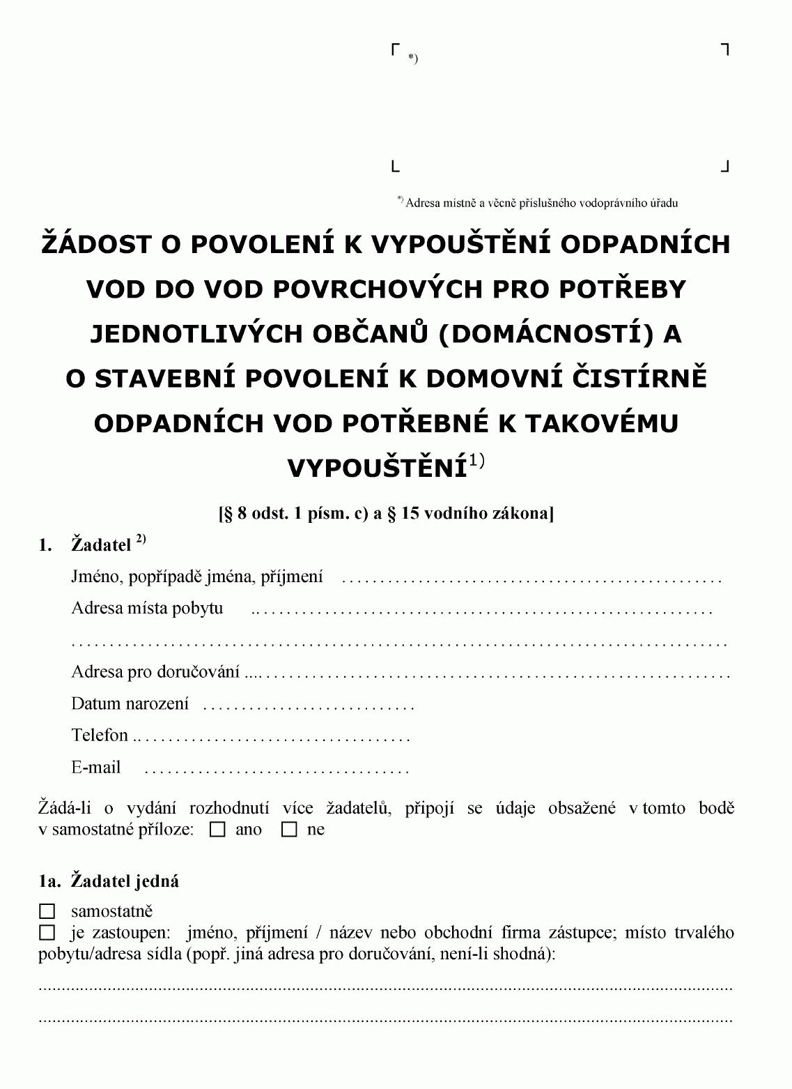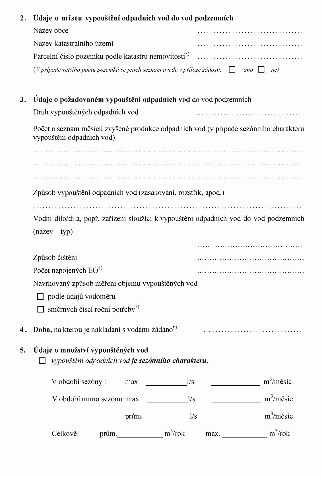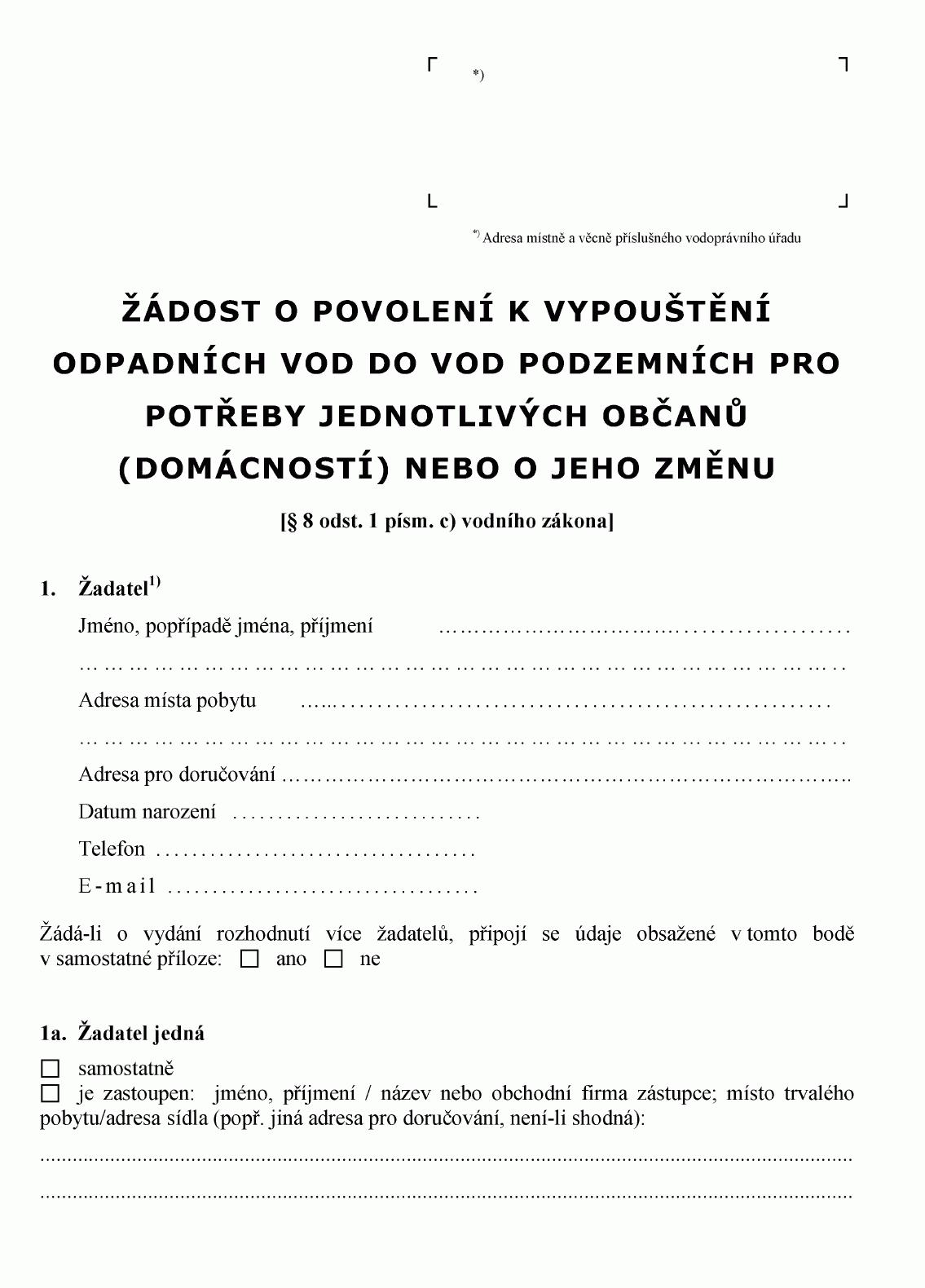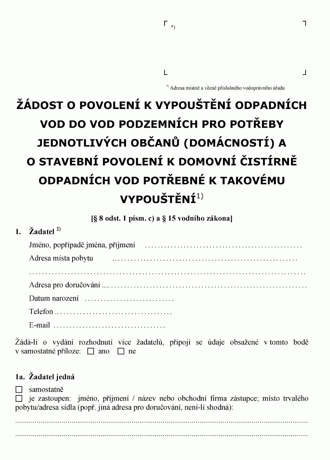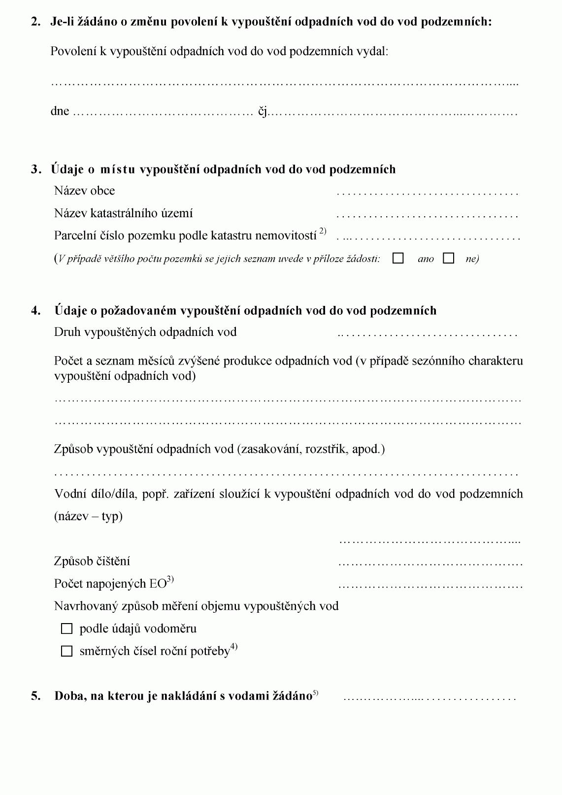 ŽÁDOST O POVOLENÍ K VYPOUŠTĚNÍ ODPADNÍCH VOD DO VOD PODZEMNÍCH1) NEBO O