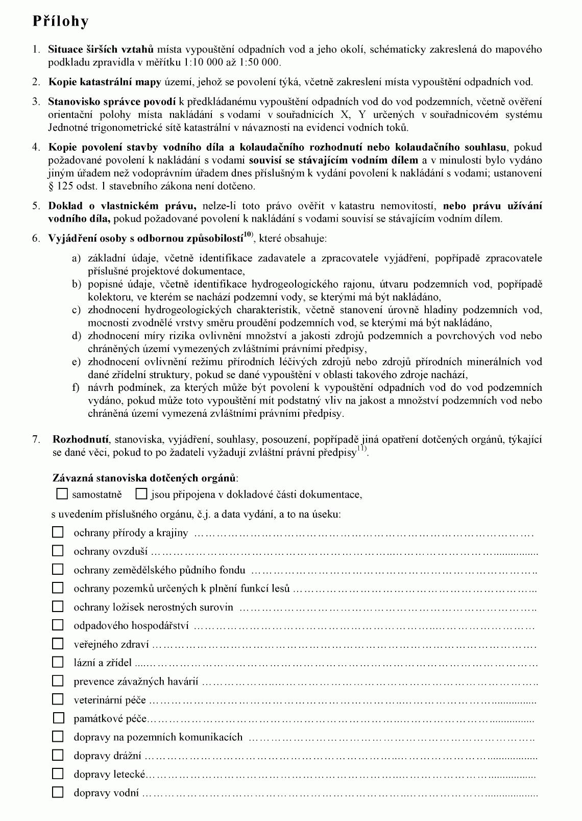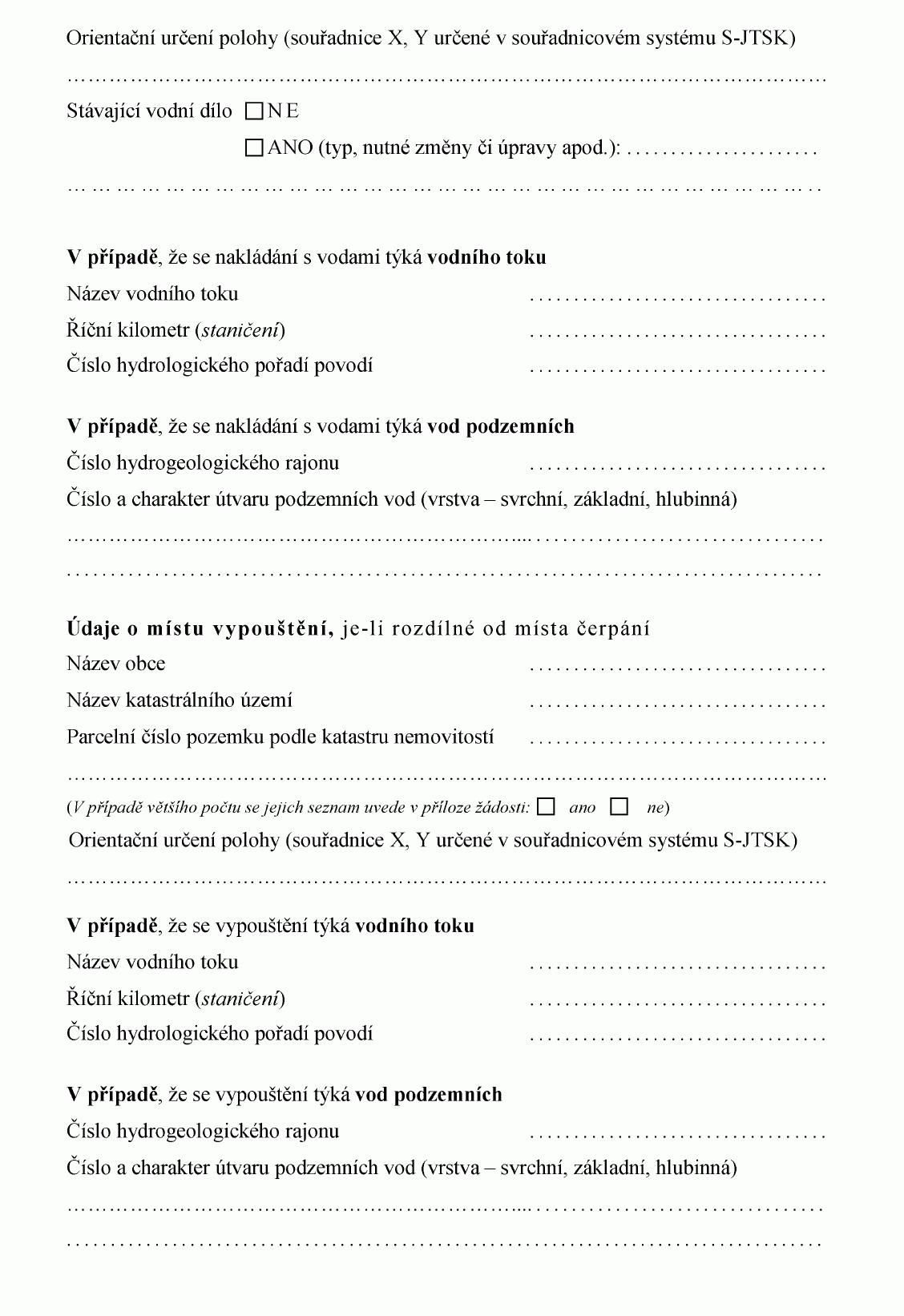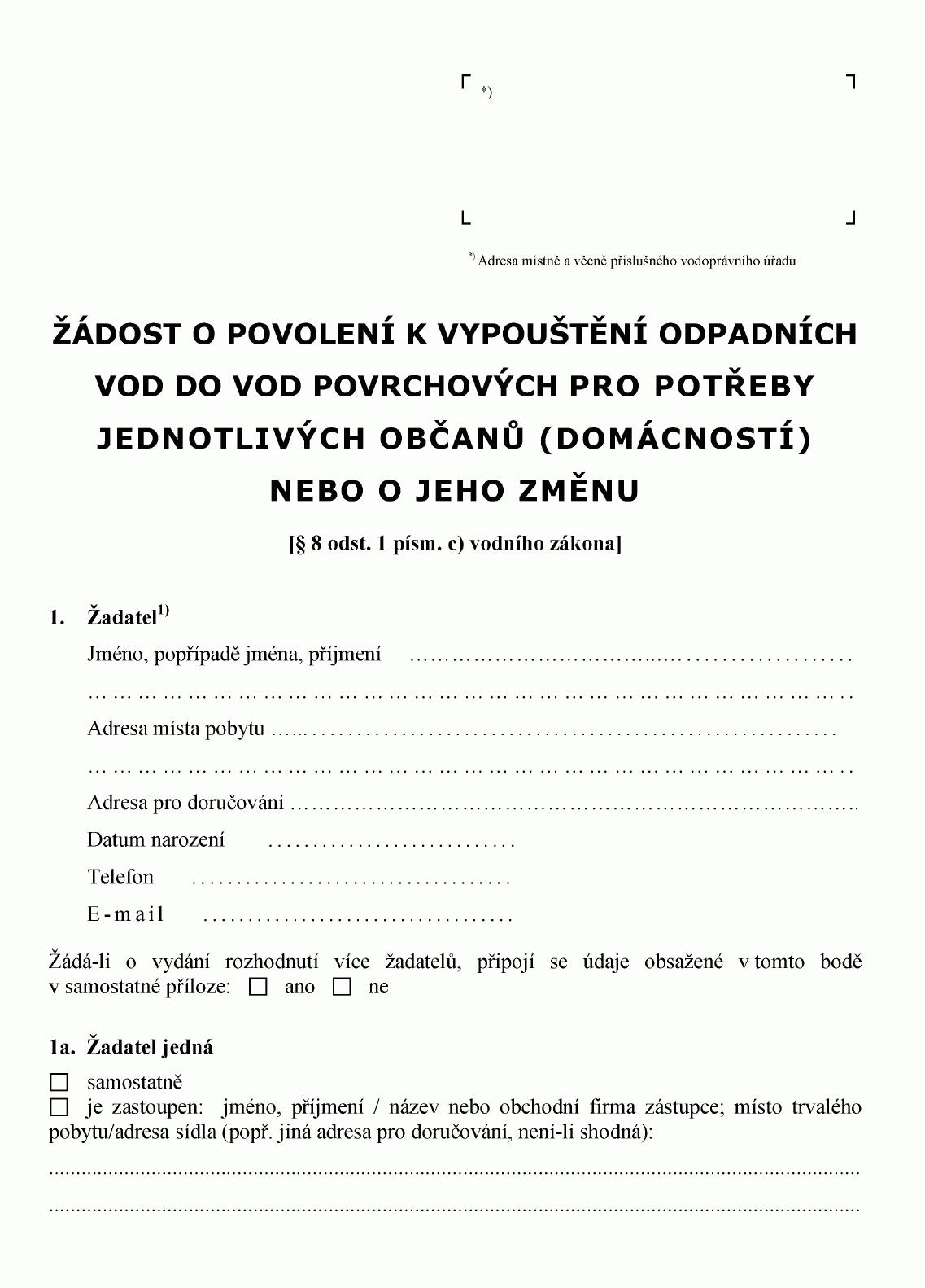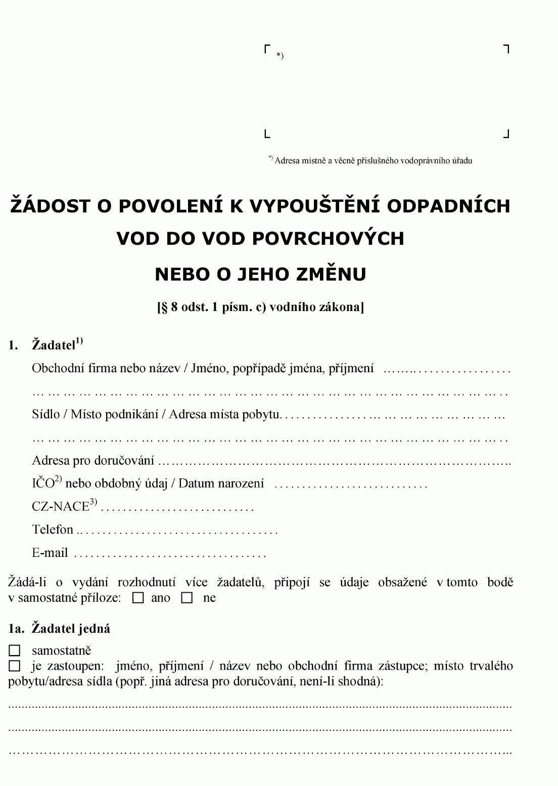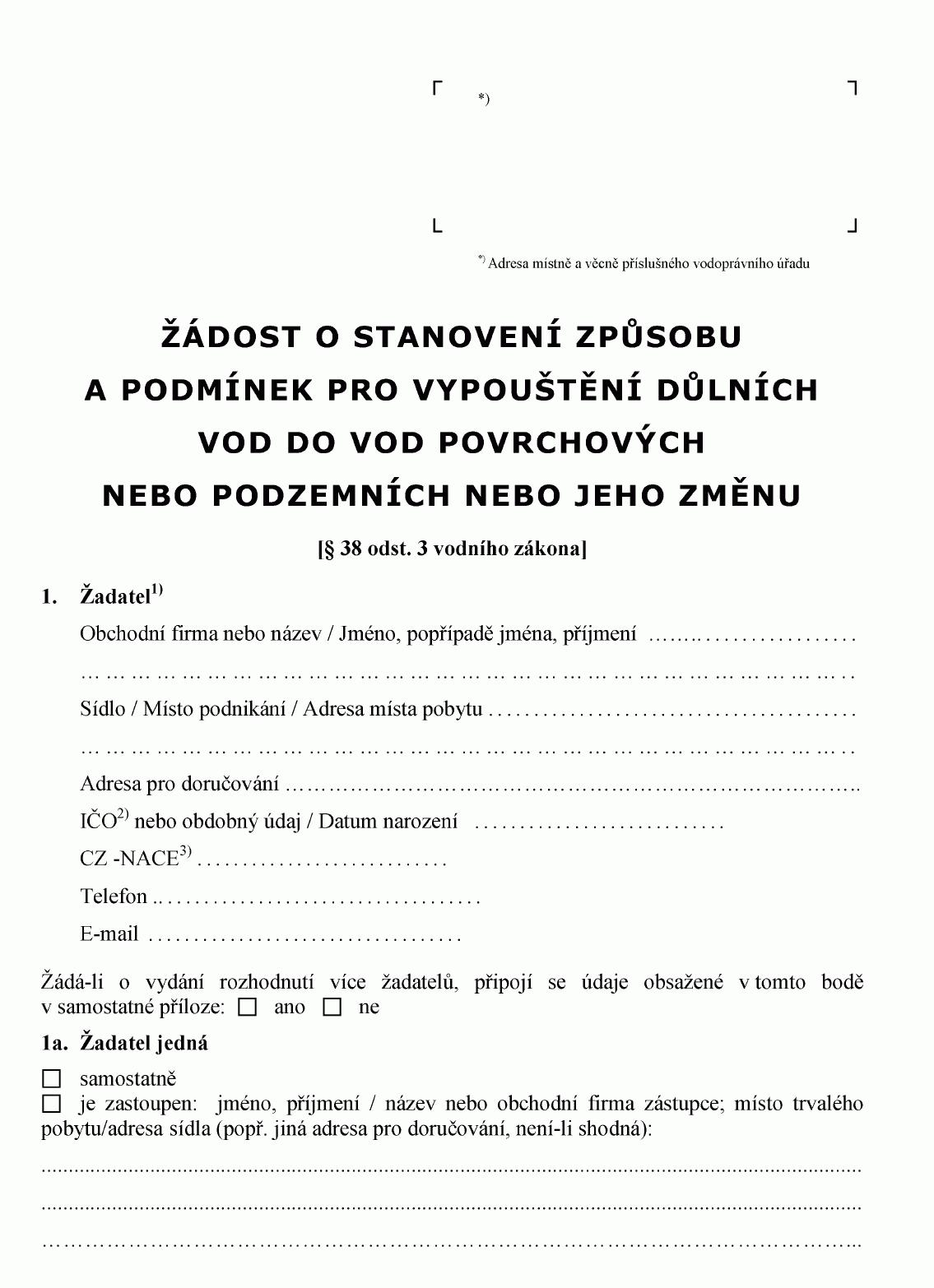 ŽÁDOST O POVOLENÍ K VYPOUŠTĚNÍ ODPADNÍCH VOD DO VOD PODZEMNÍCH1) NEBO O