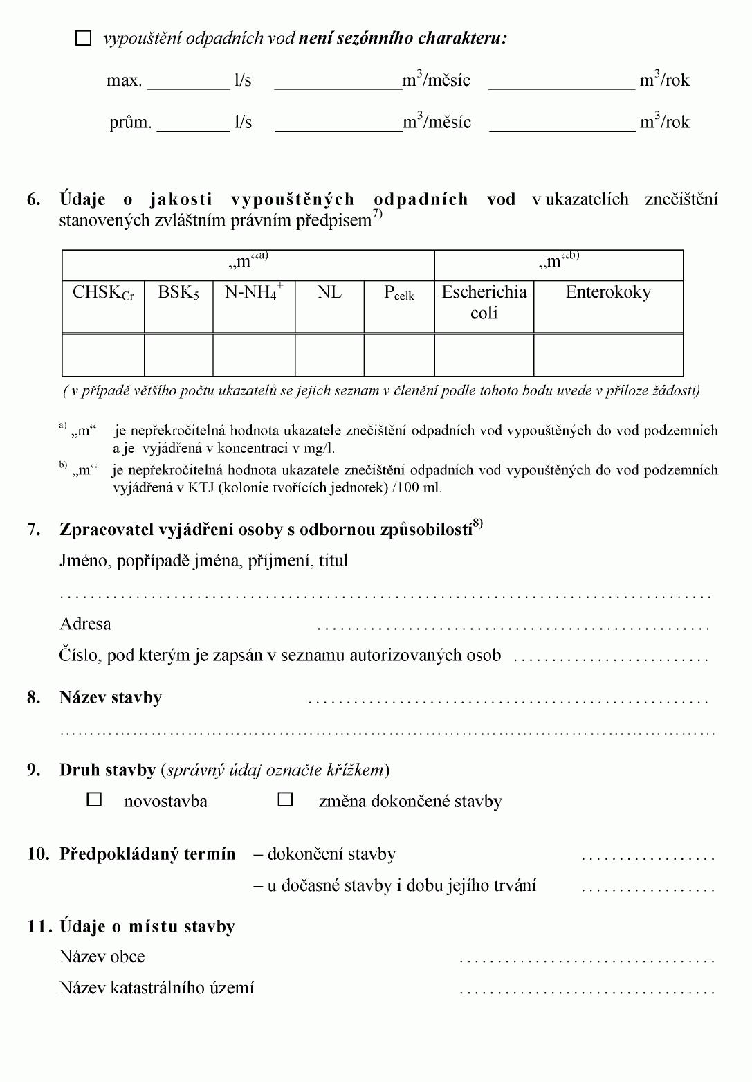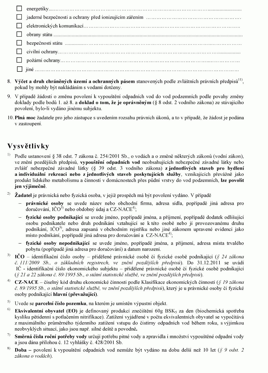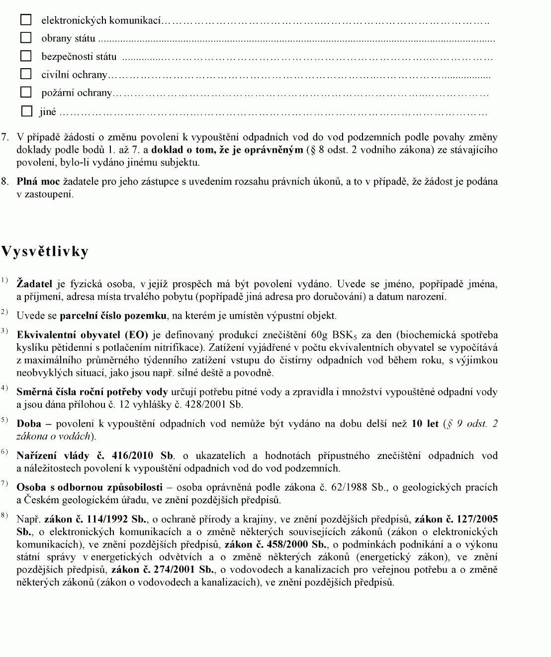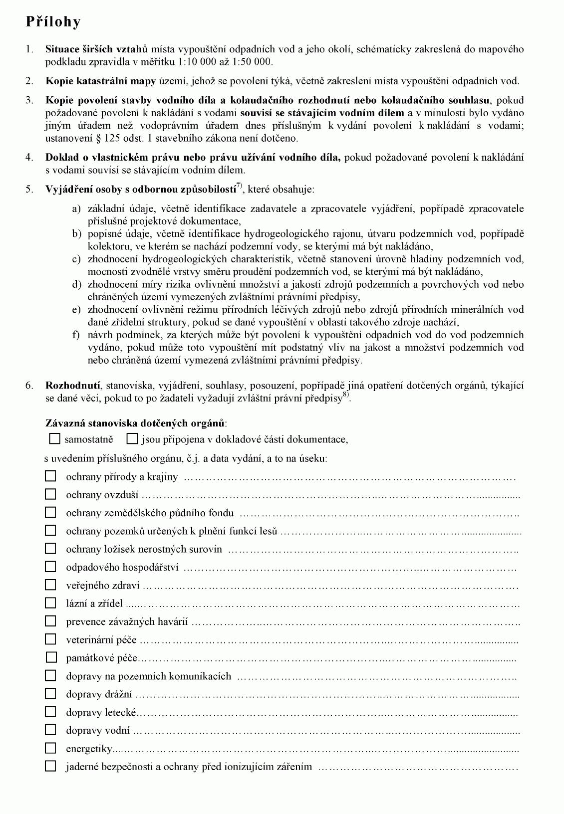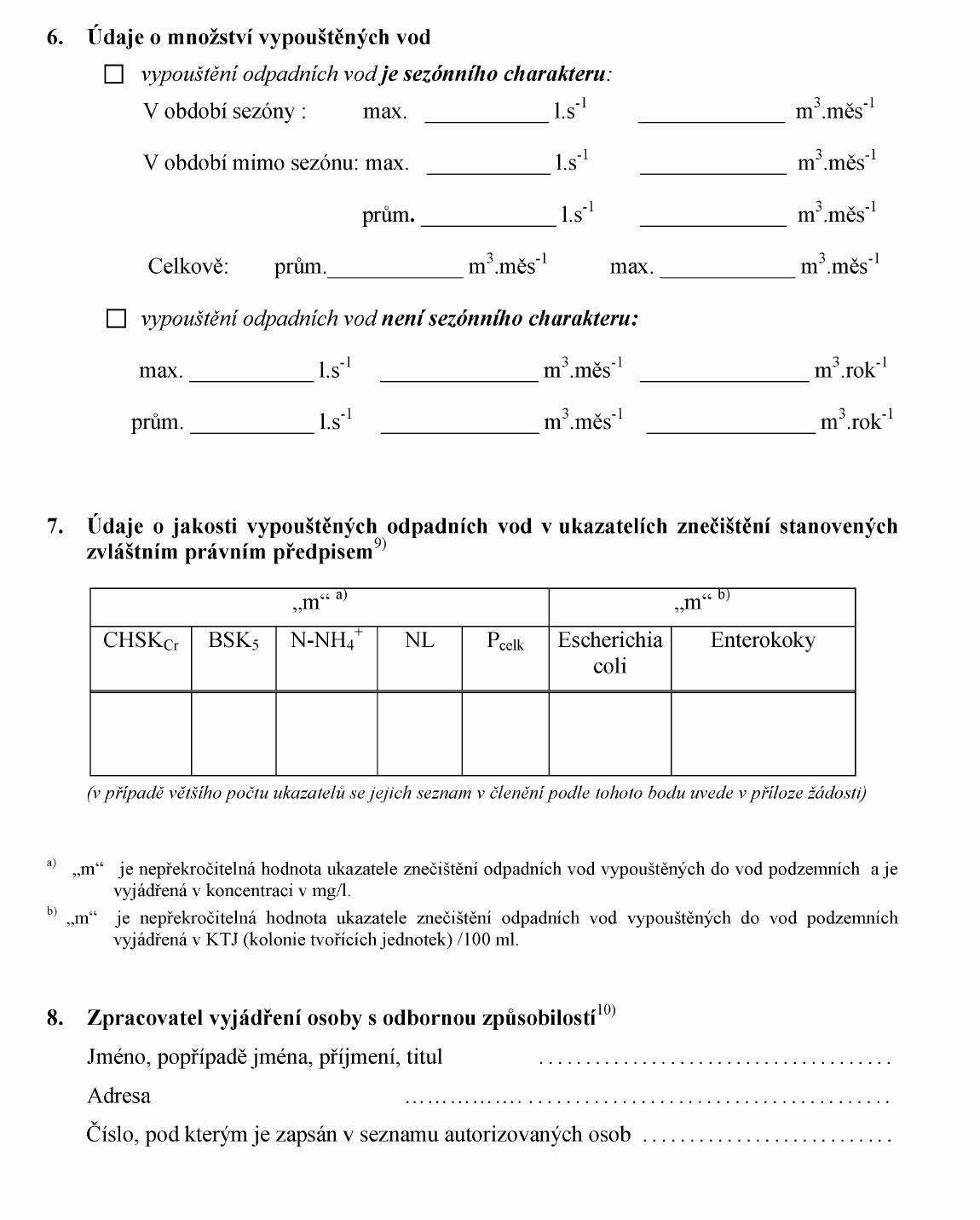 ŽÁDOST O POVOLENÍ K VYPOUŠTĚNÍ ODPADNÍCH VOD DO VOD PODZEMNÍCH1) NEBO O