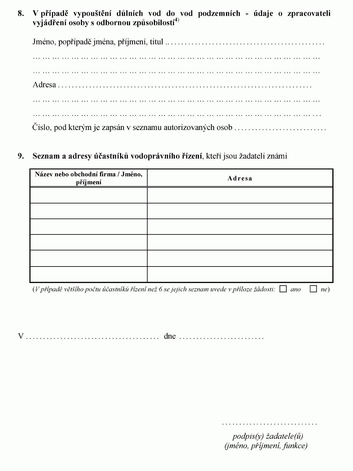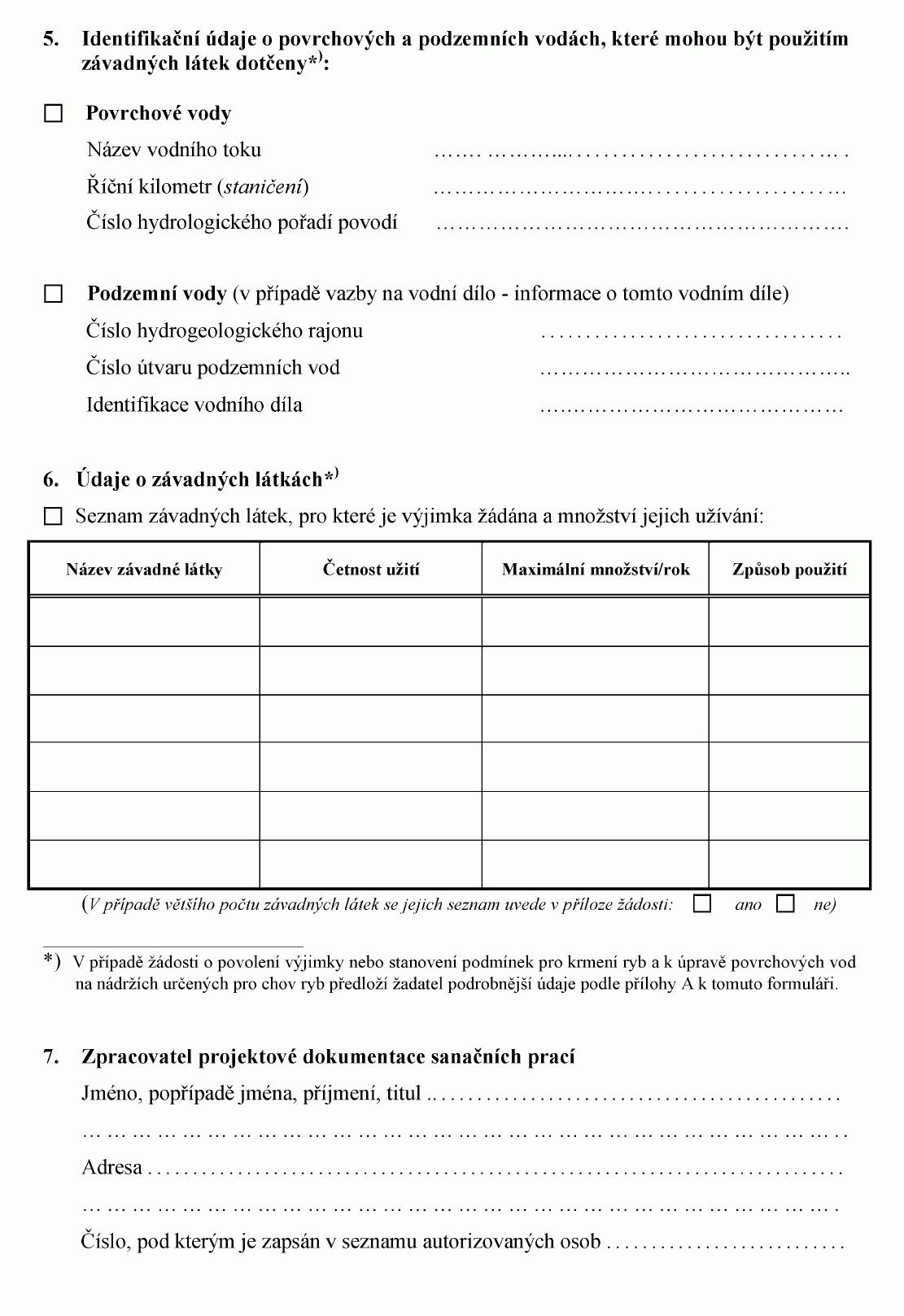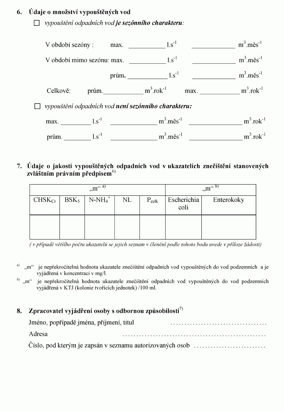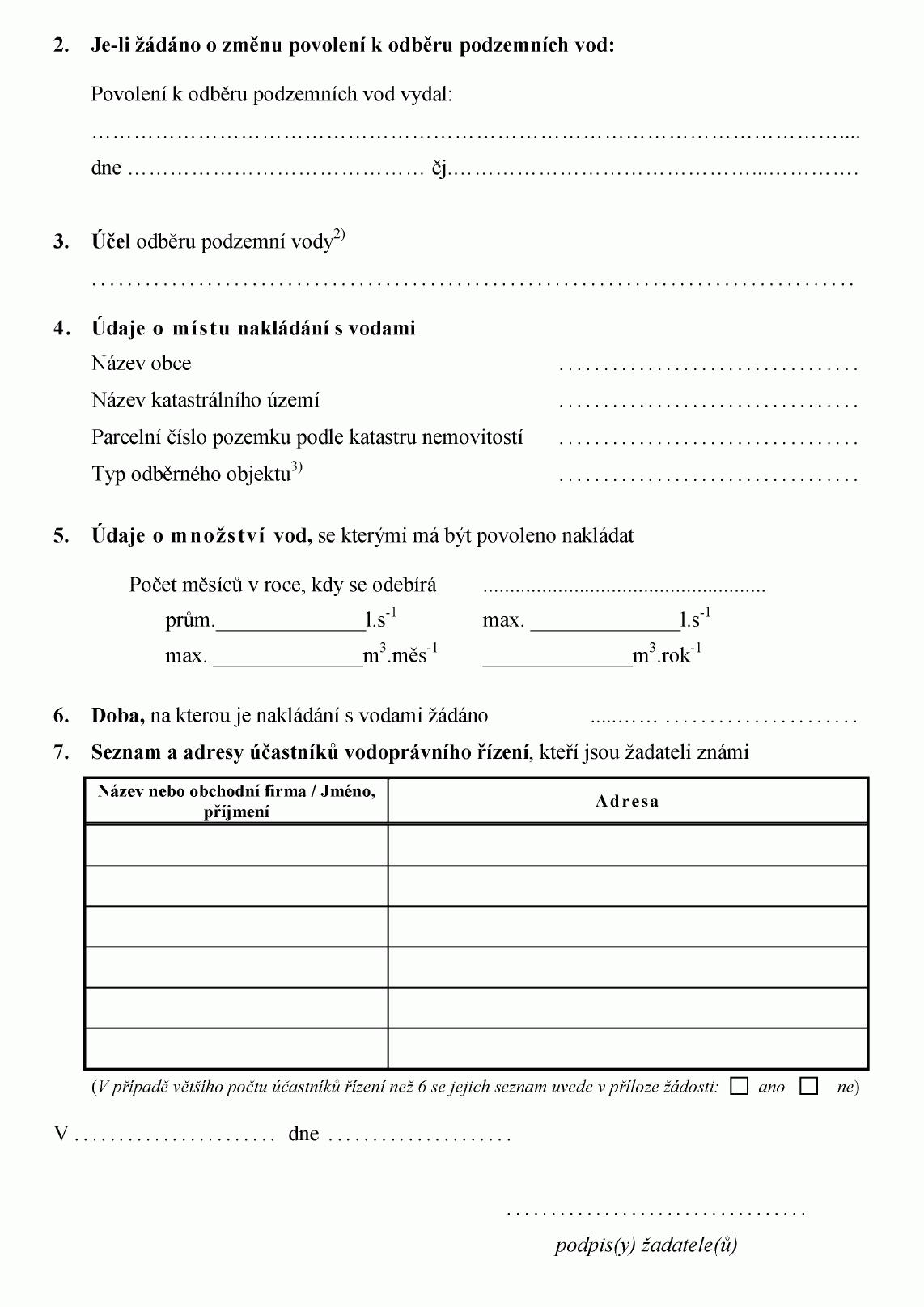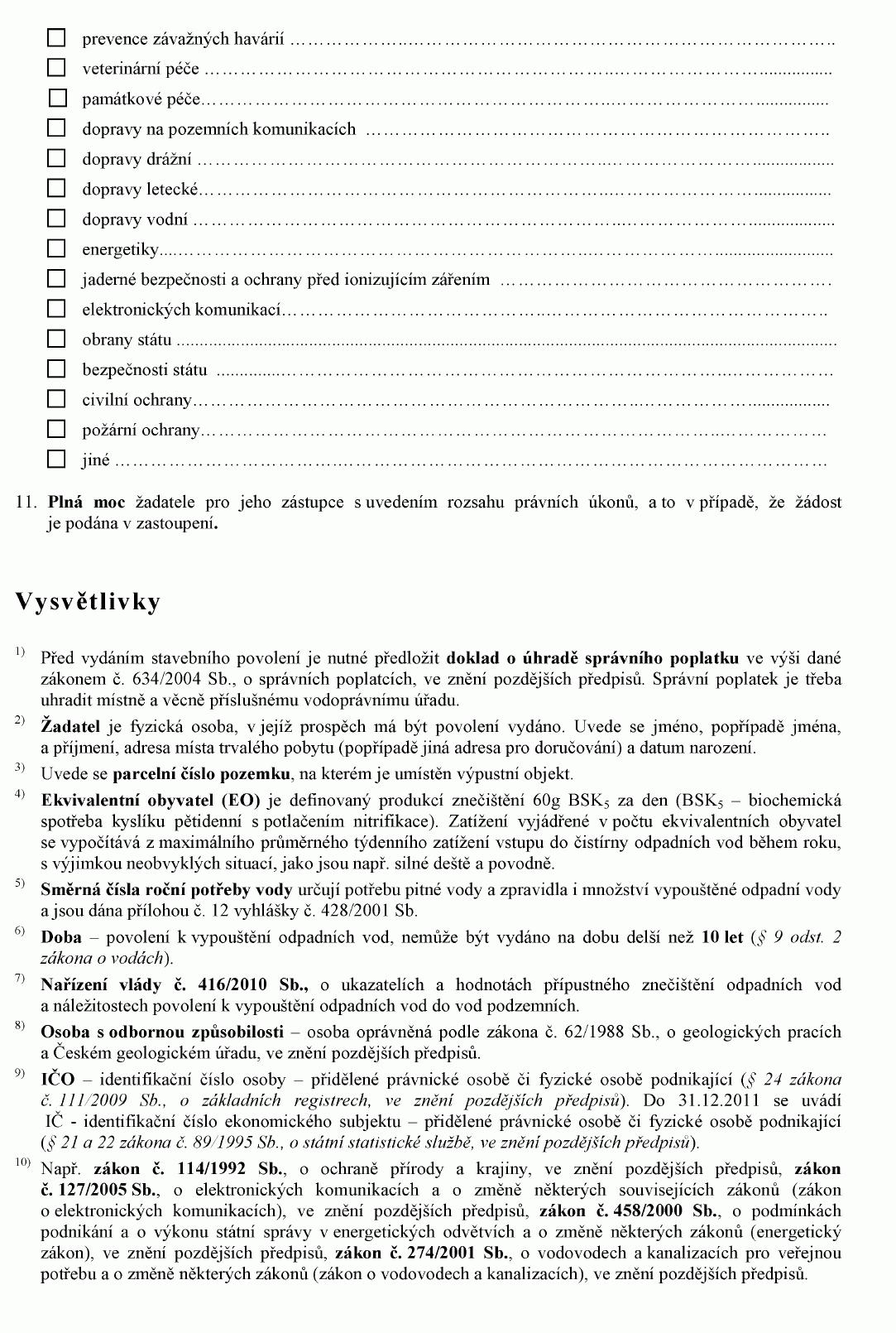 ŽÁDOST O POVOLENÍ K VYPOUŠTĚNÍ ODPADNÍCH VOD DO VOD PODZEMNÍCH1) NEBO O