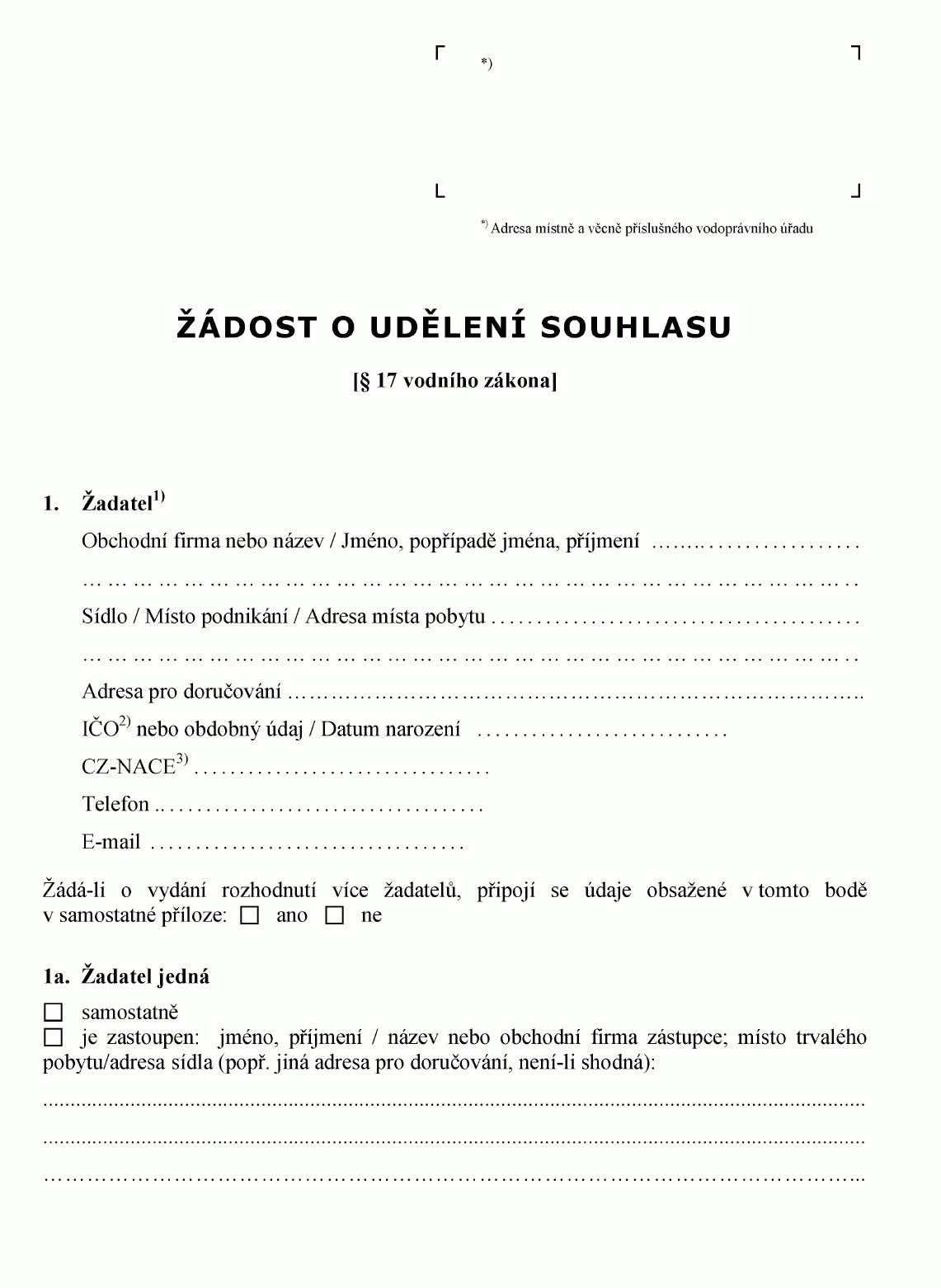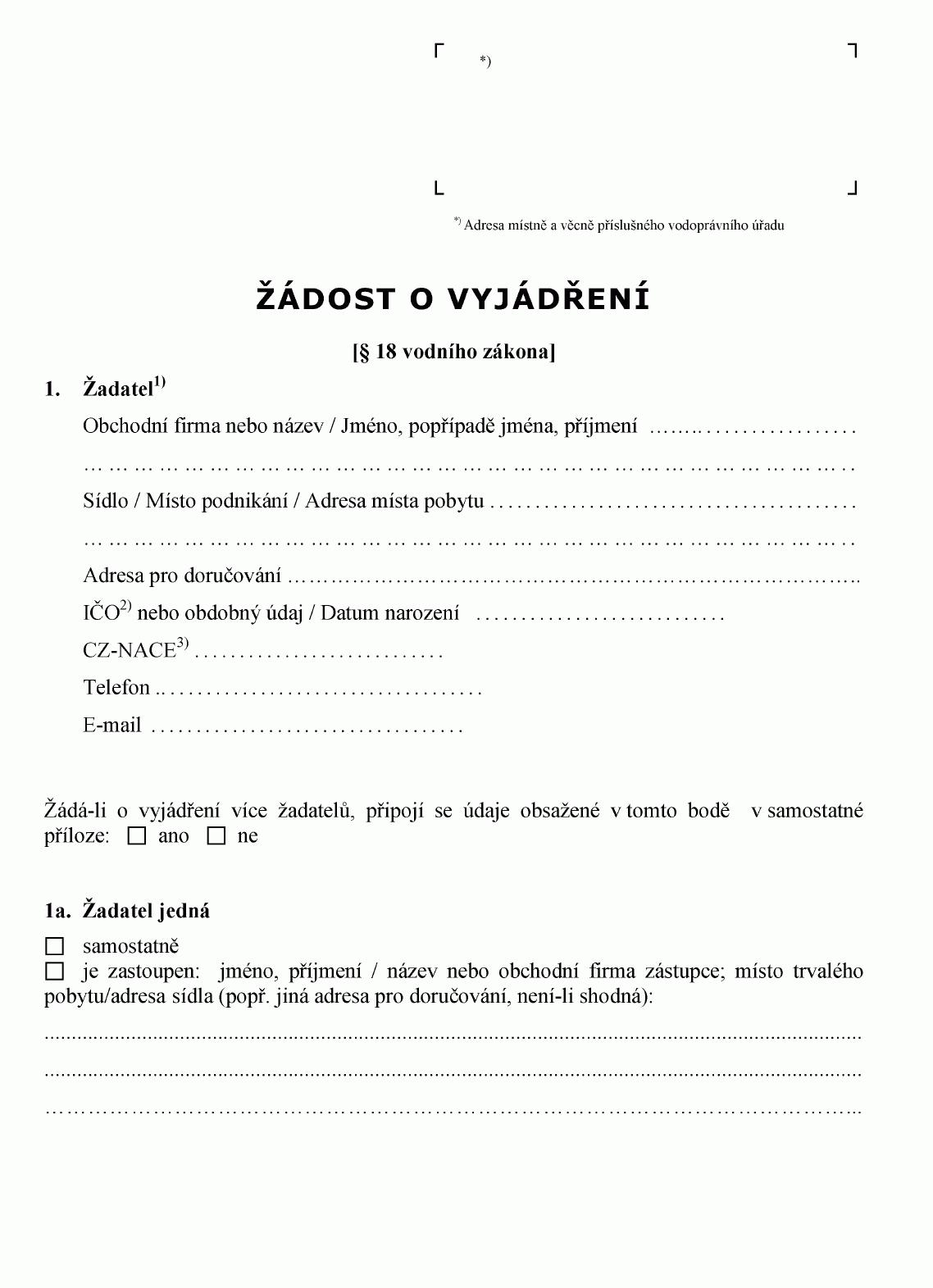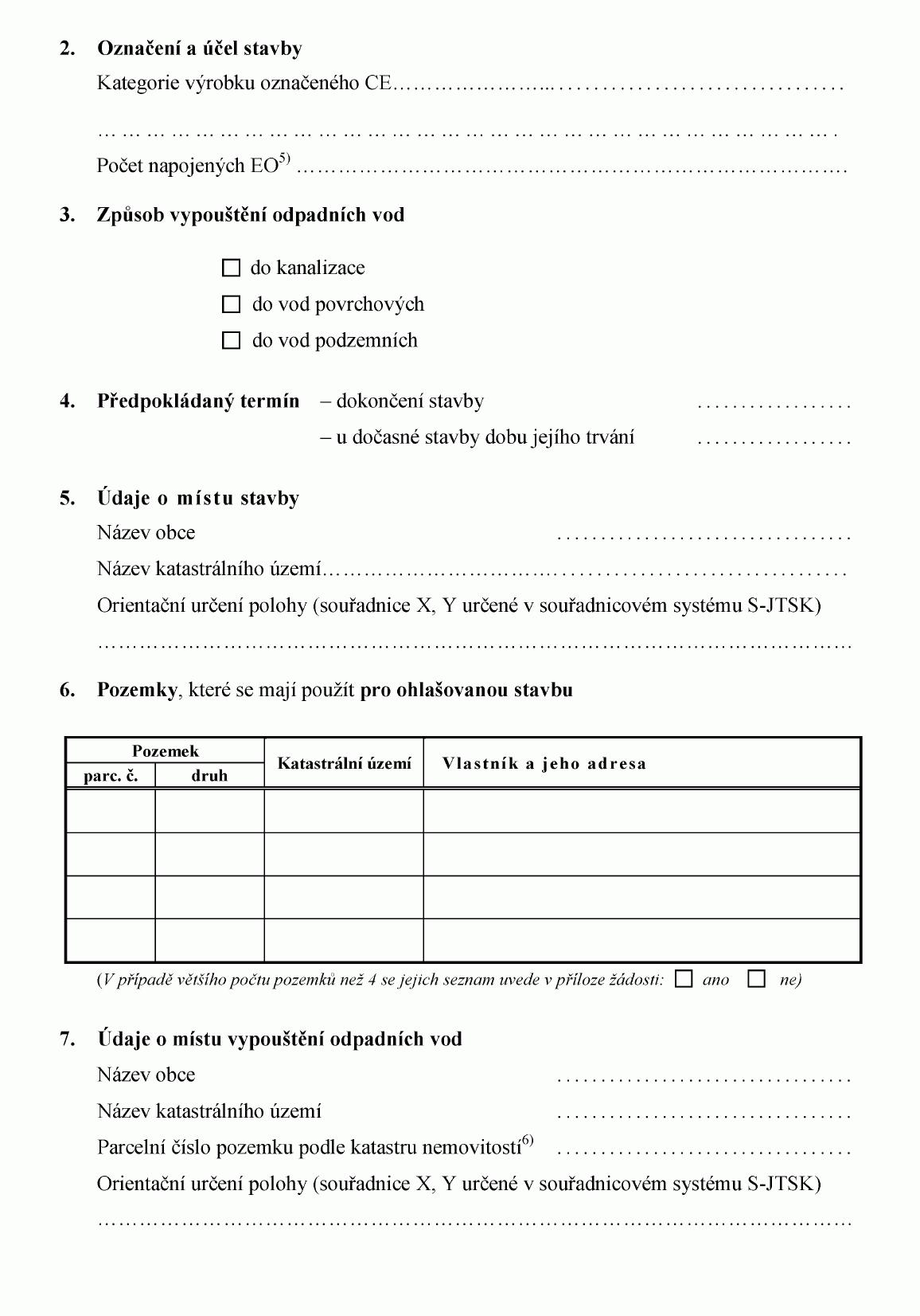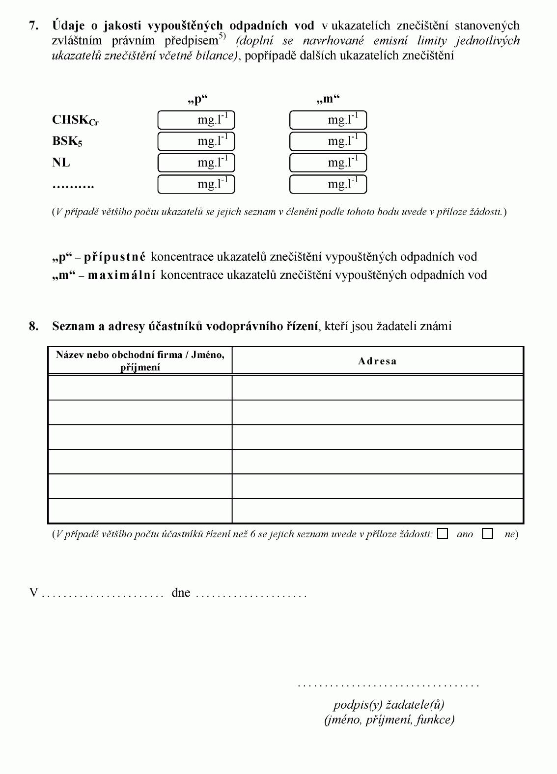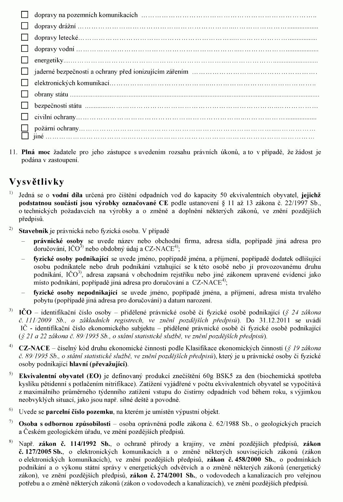 ŽÁDOST O POVOLENÍ K VYPOUŠTĚNÍ ODPADNÍCH VOD DO VOD PODZEMNÍCH1) NEBO O