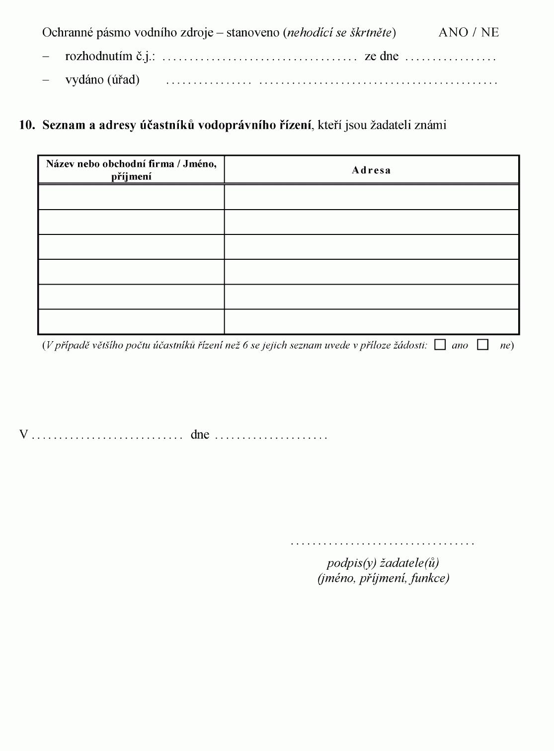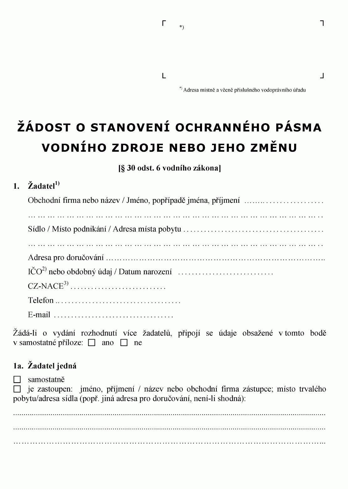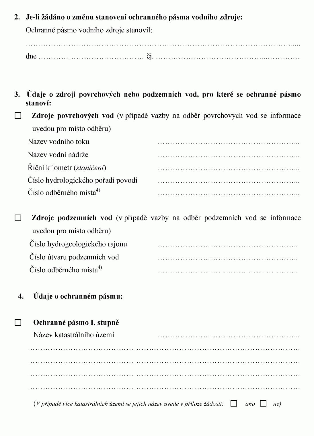 ŽÁDOST O STANOVENÍ OCHRANNÉHO PÁSMA VODNÍHO ZDROJE NEBO JEHO ZMĚNU