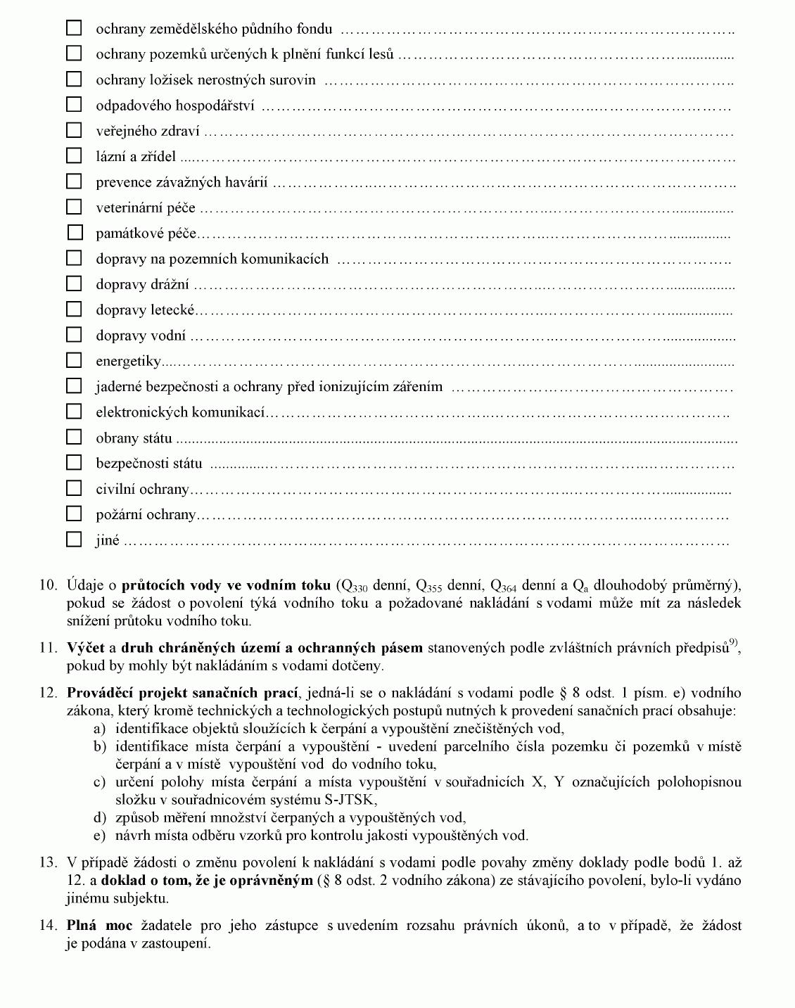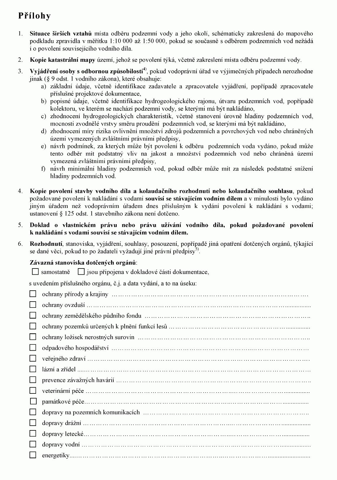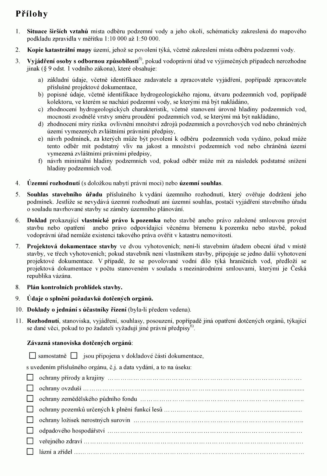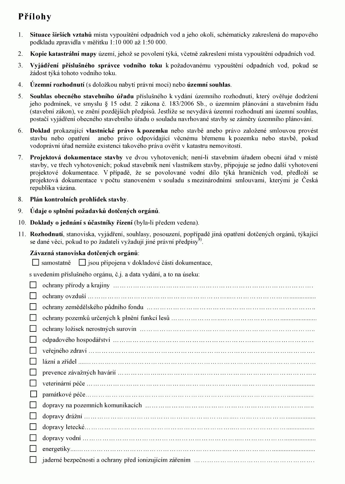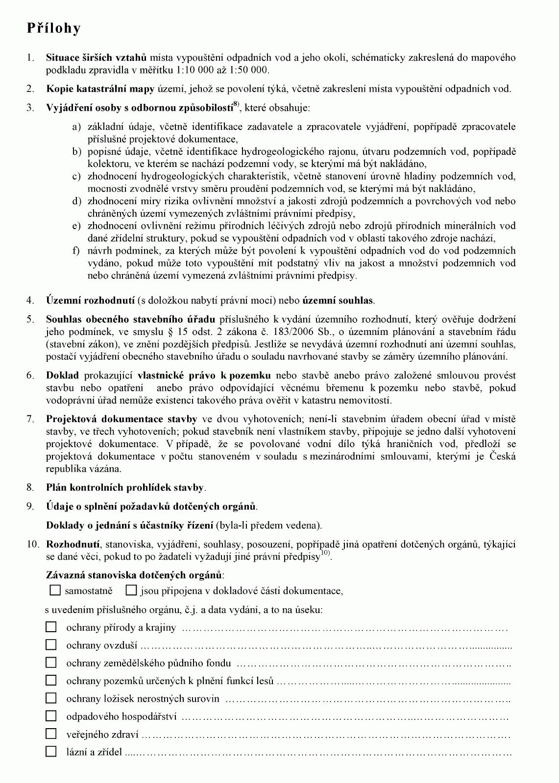 (2) Doklady uvedené v odstavci 1 předkládá žadatel vodoprávnímu úřadu spolu
