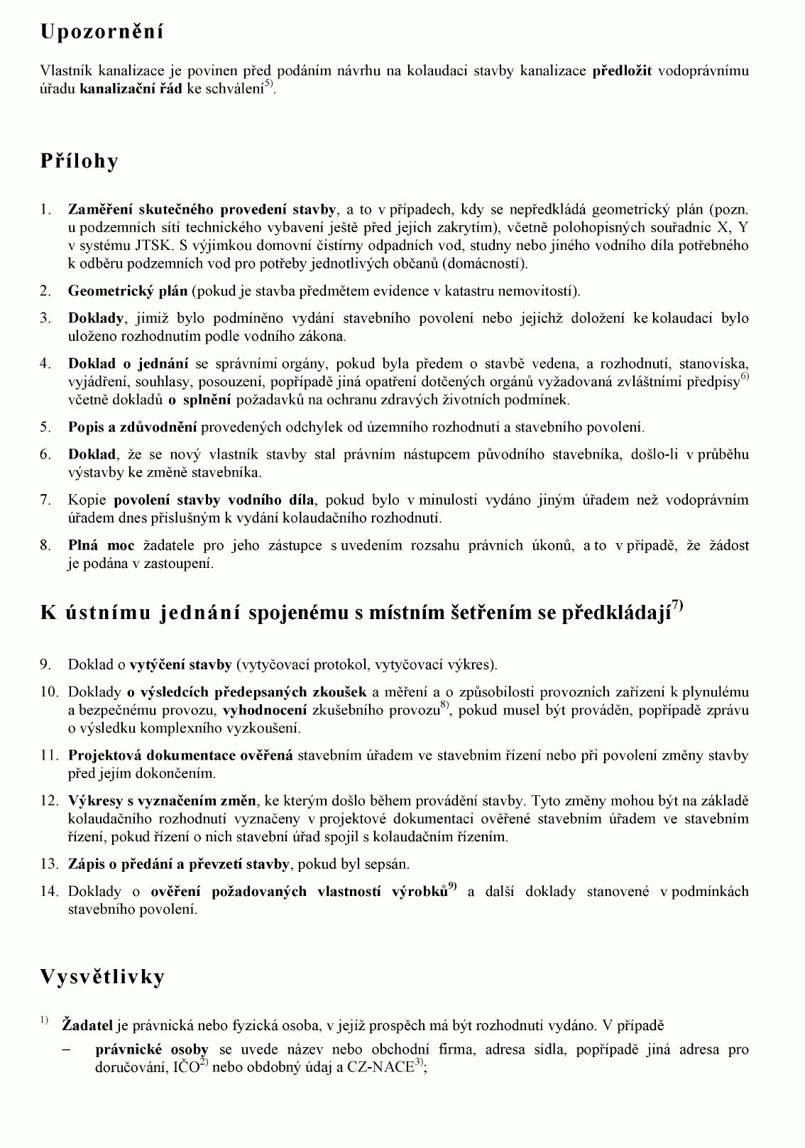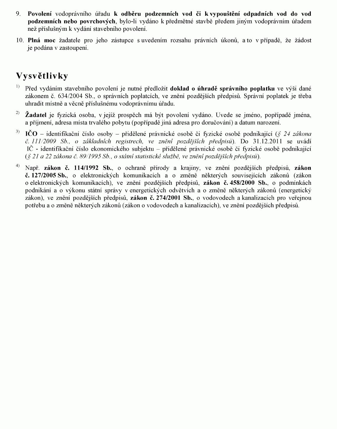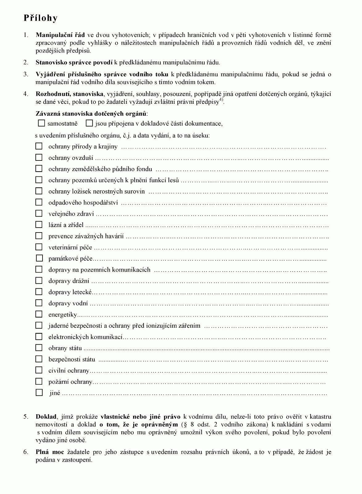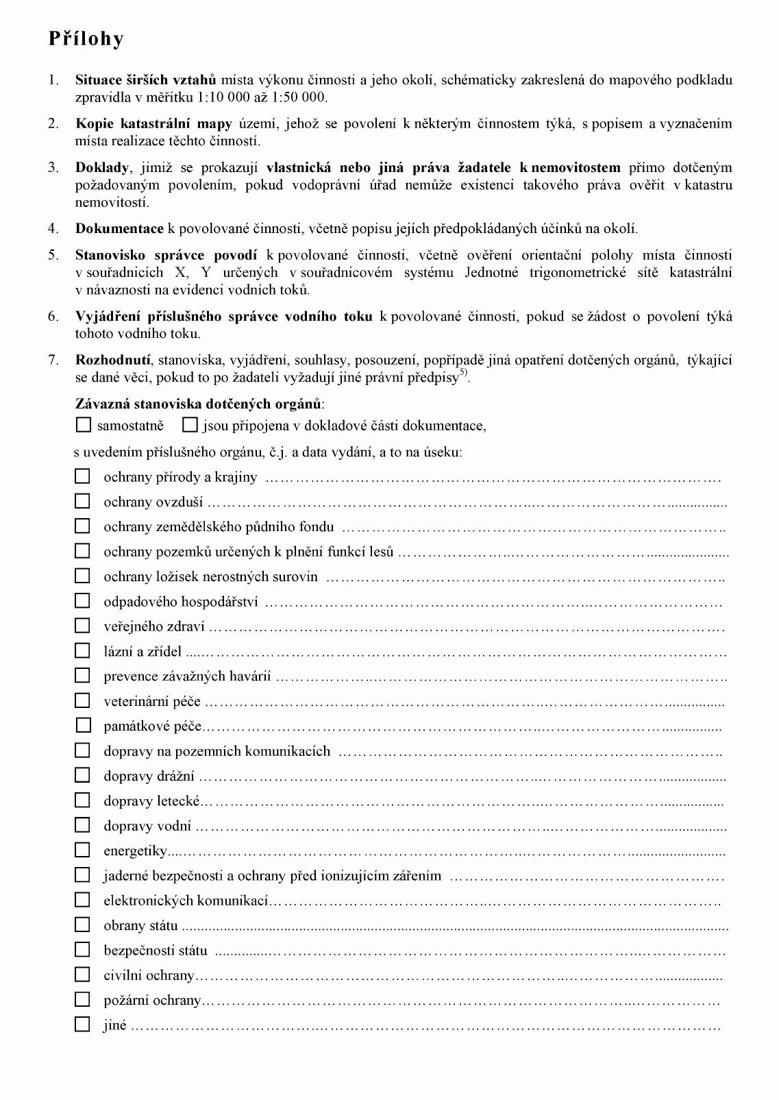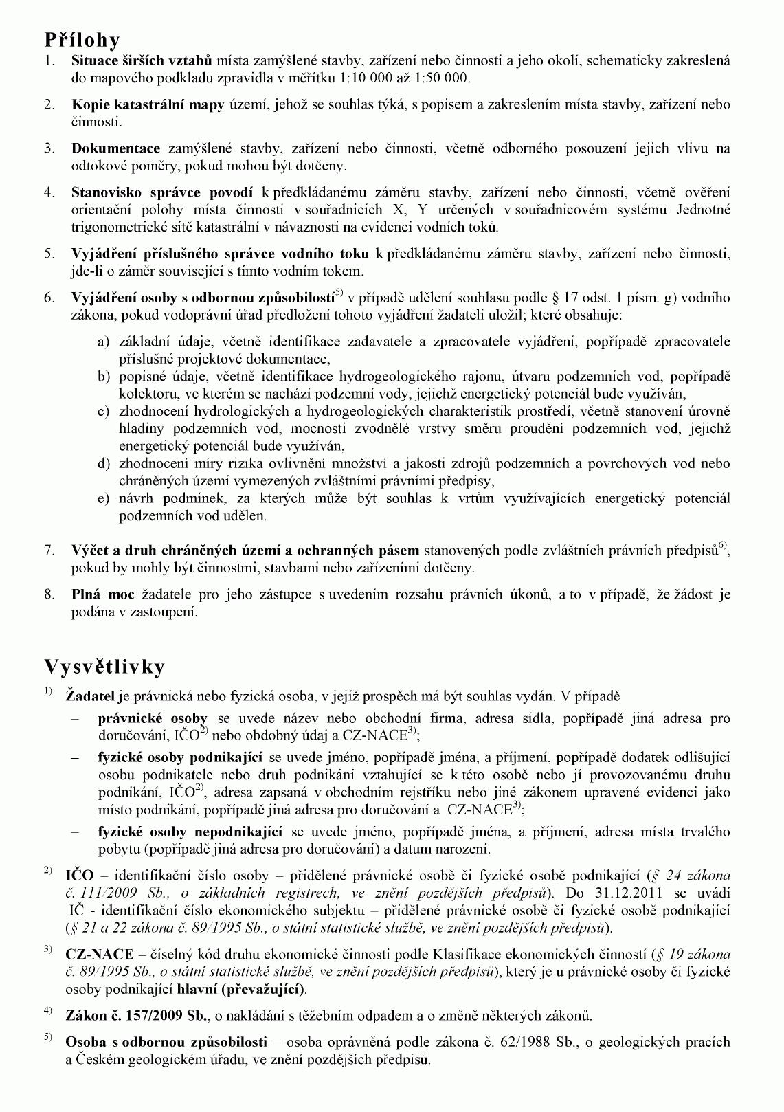 (2) Doklady uvedené v odstavci 1 předkládá žadatel vodoprávnímu úřadu spolu