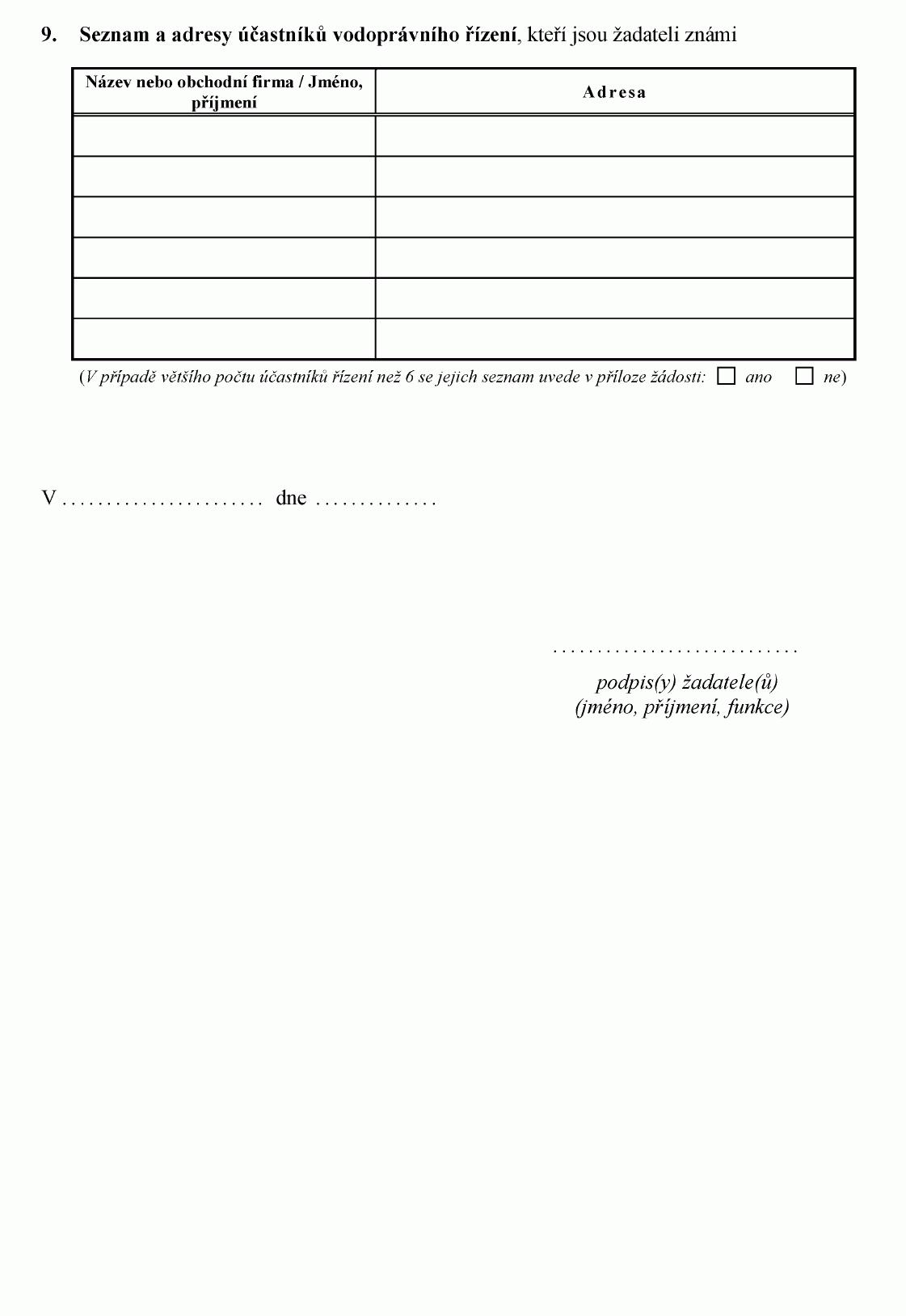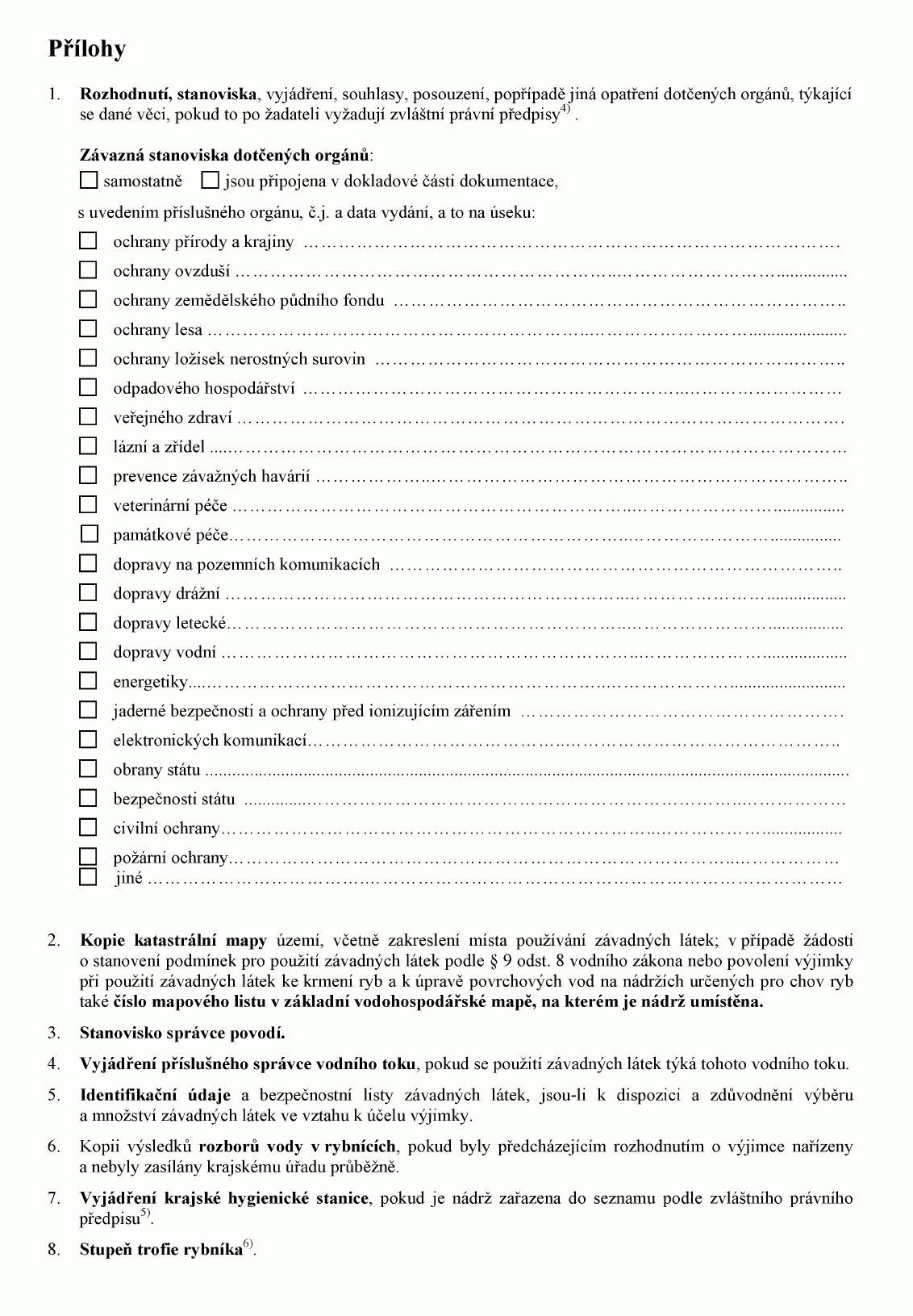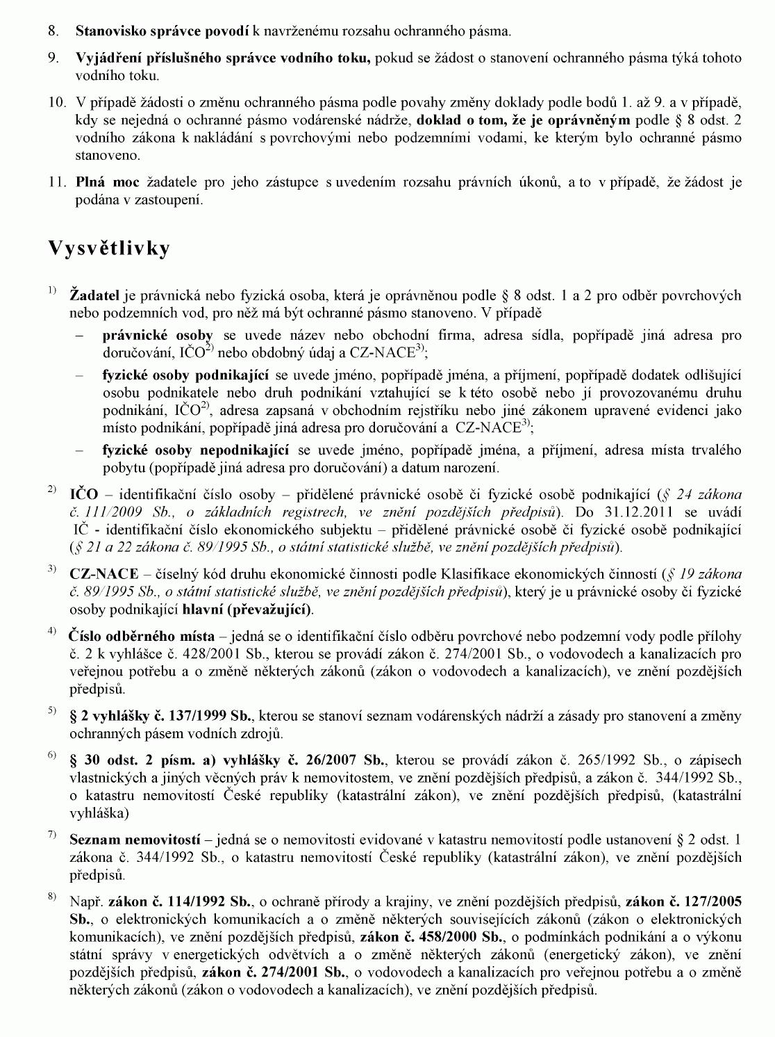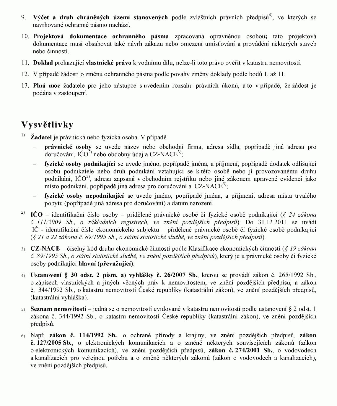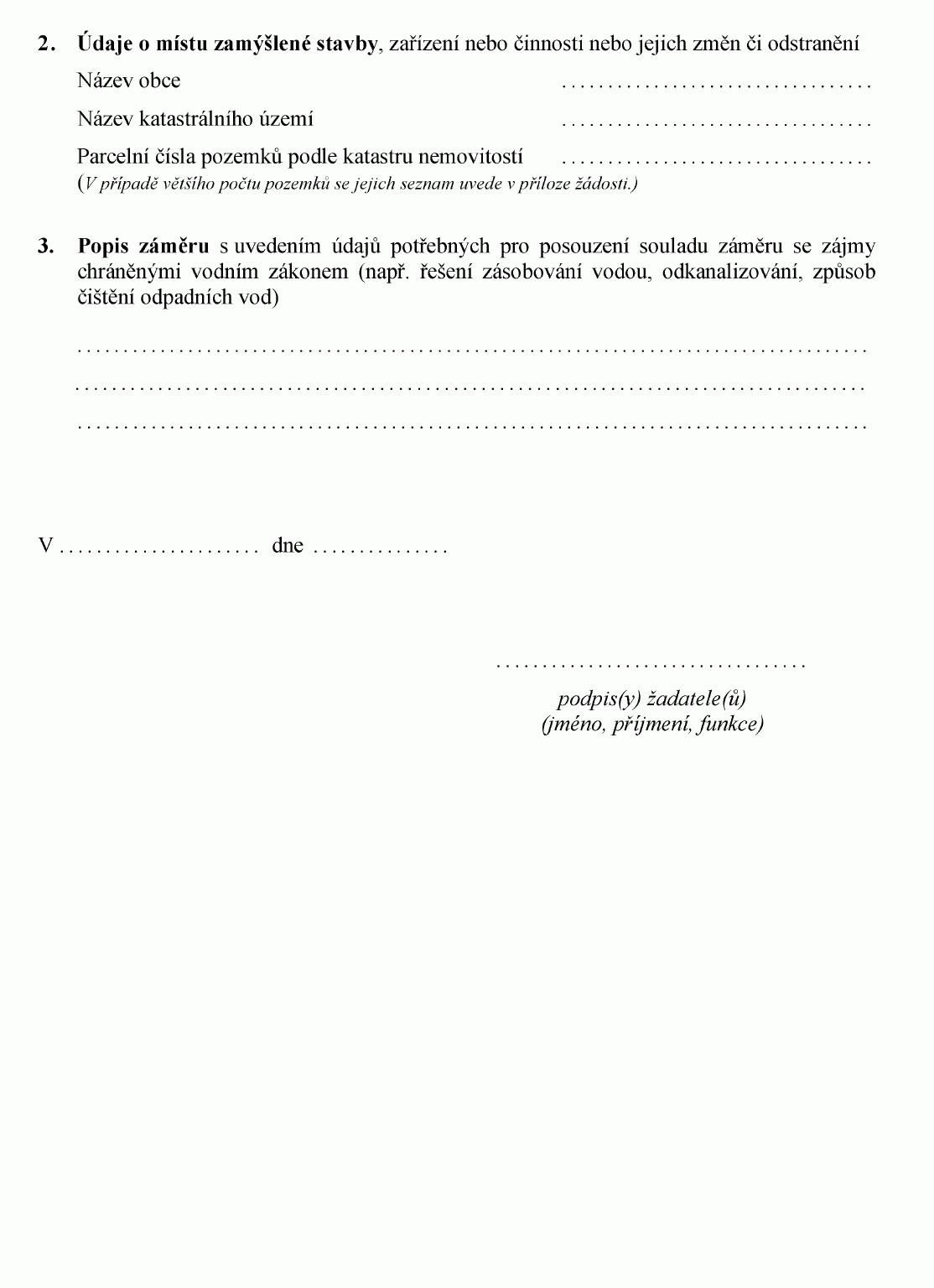 (2) Doklady uvedené v odstavci 1 předkládá žadatel vodoprávnímu úřadu spolu