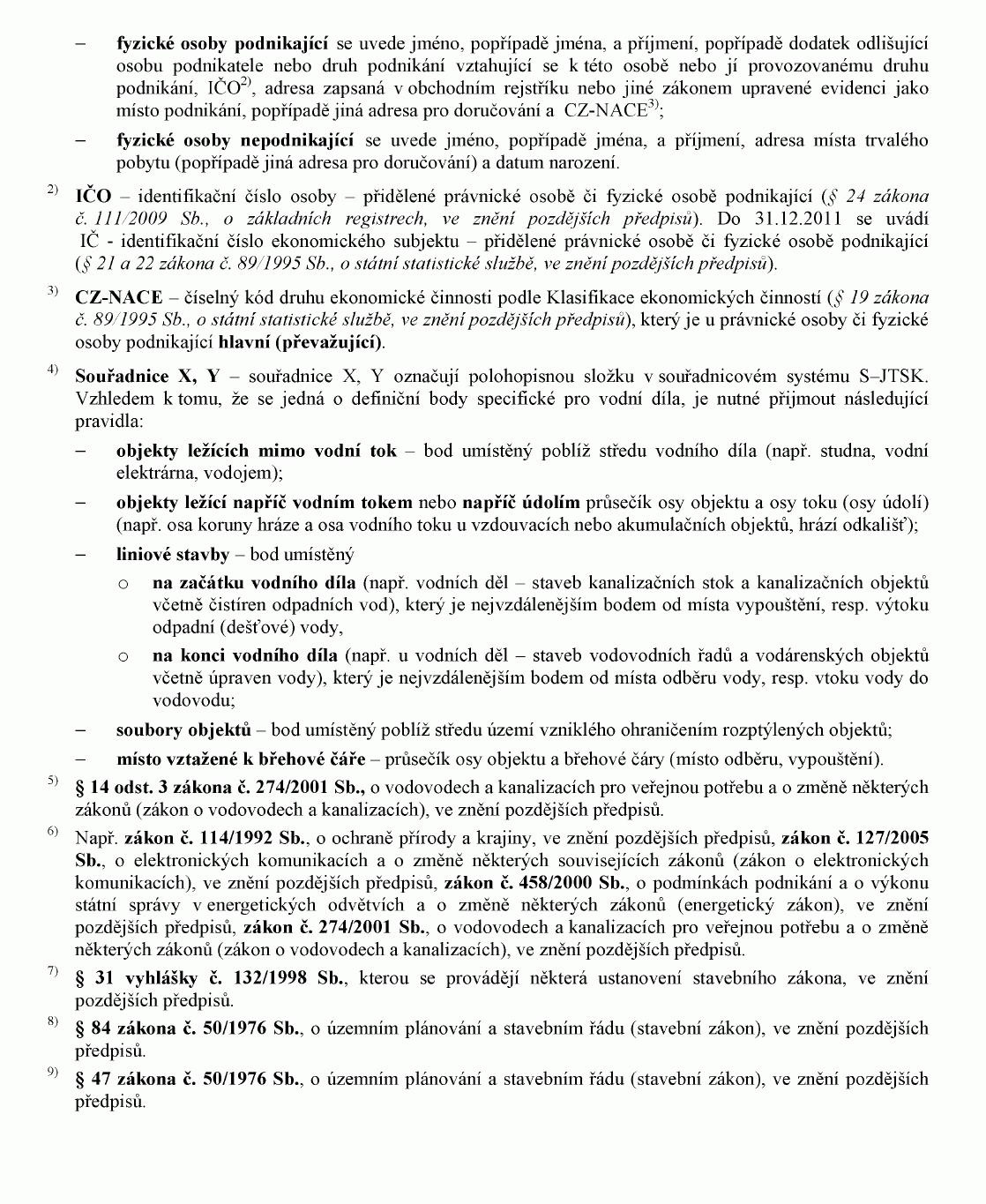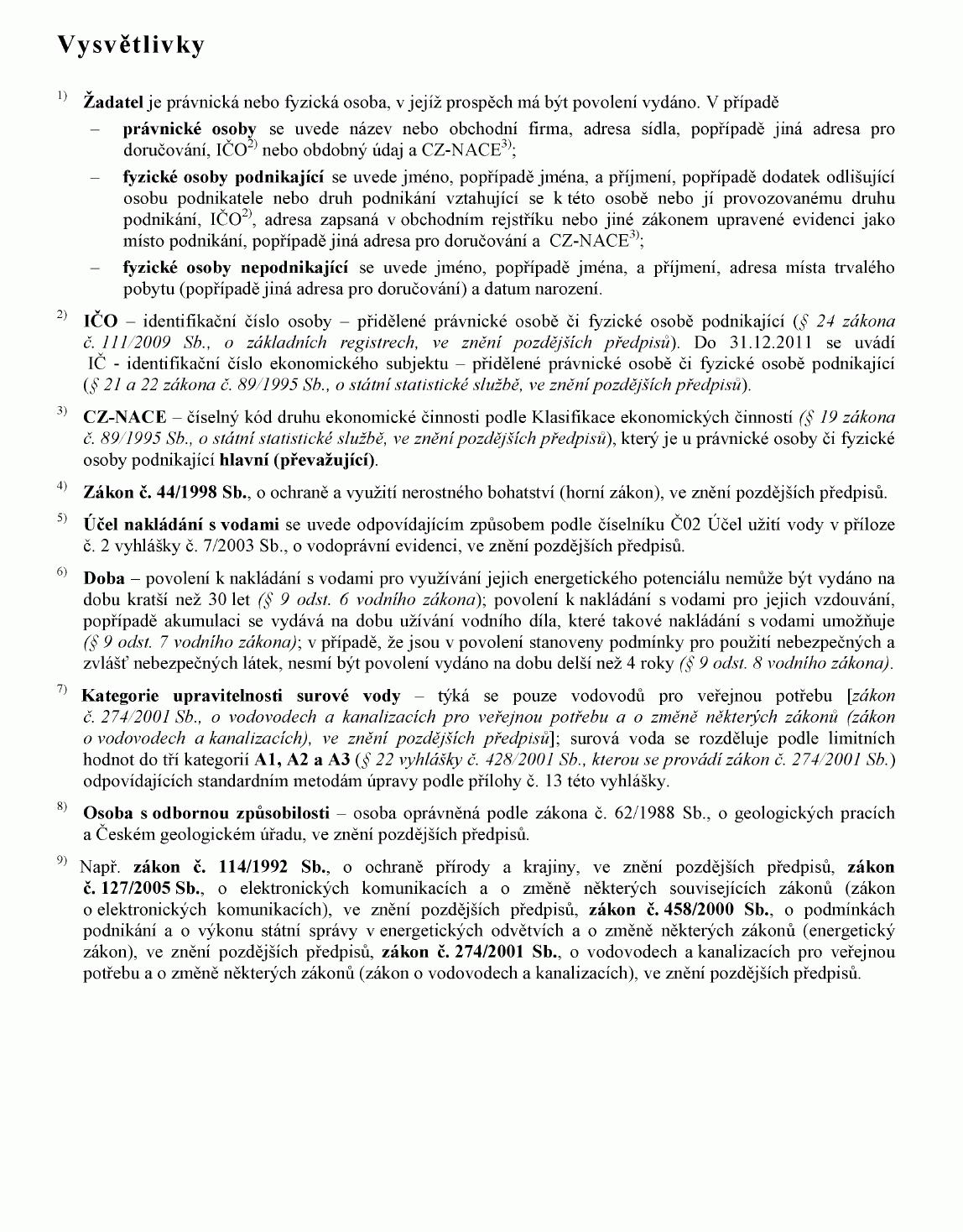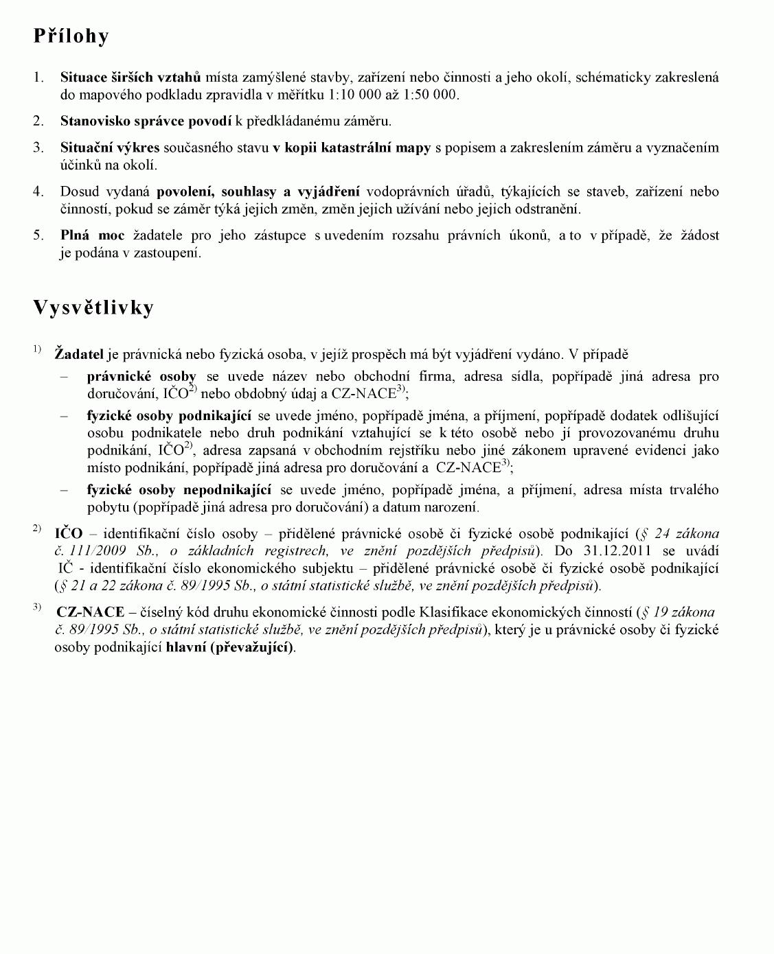 o náležitostech povolení, souhlasů a vyjádření vodoprávního úřadu, ve znění vyhlášky