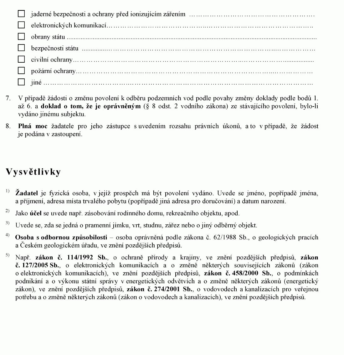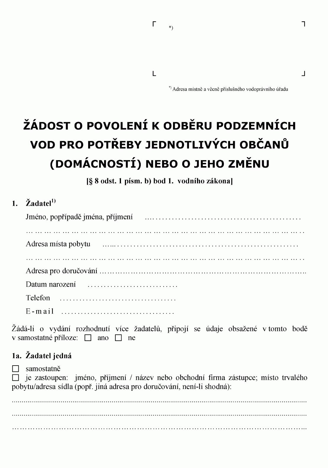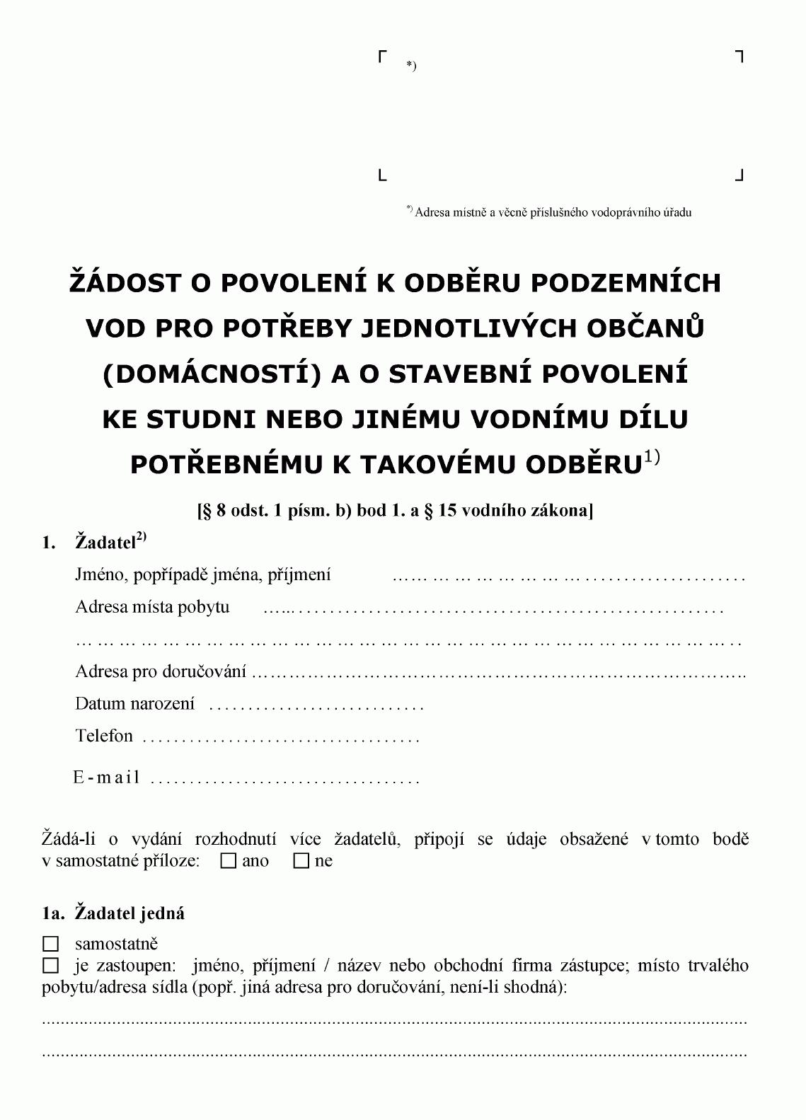 ŽÁDOST O POVOLENÍ K ODBĚRU PODZEMNÍCH VOD PRO POTŘEBY JEDNOTLIVÝCH OBČANŮ