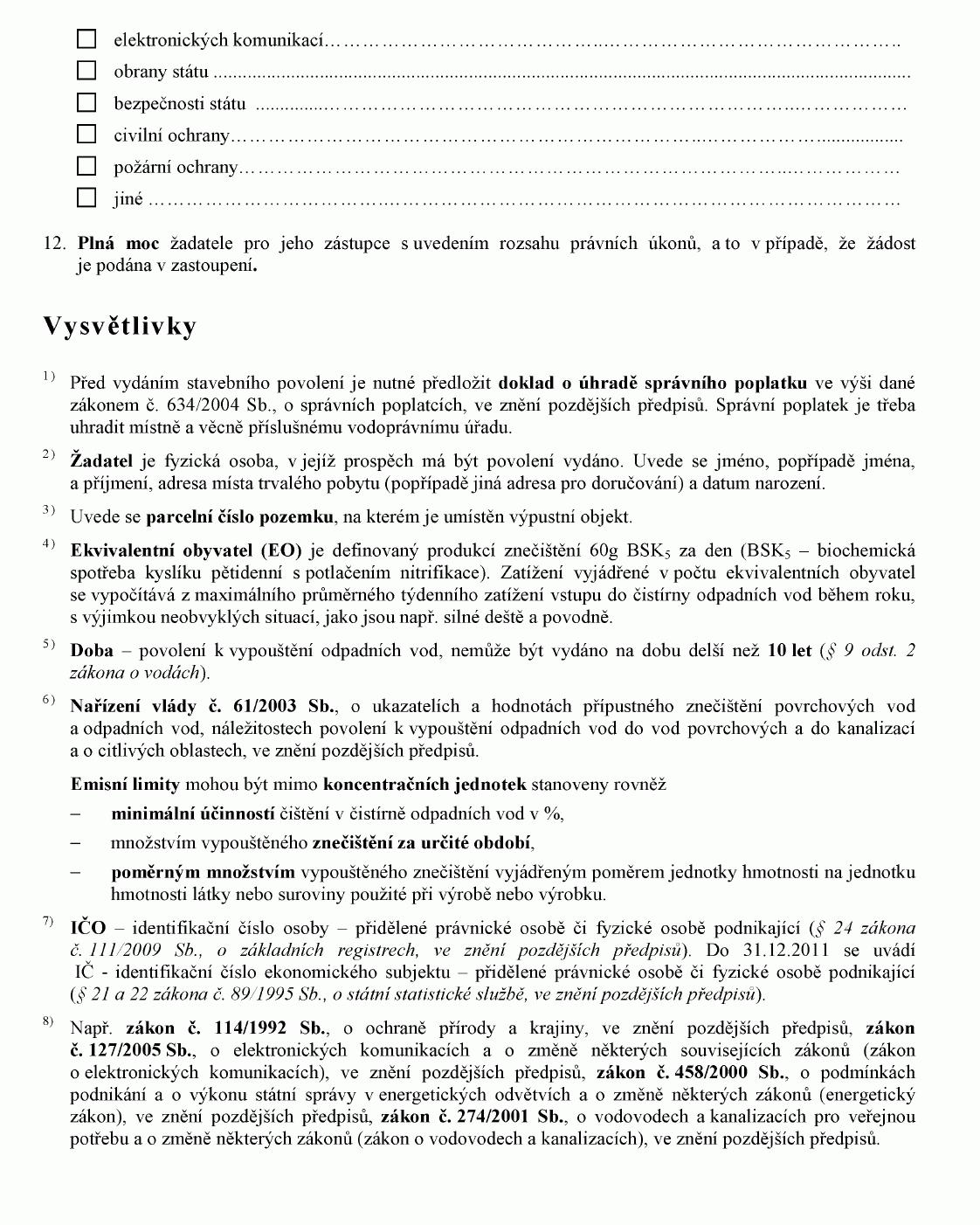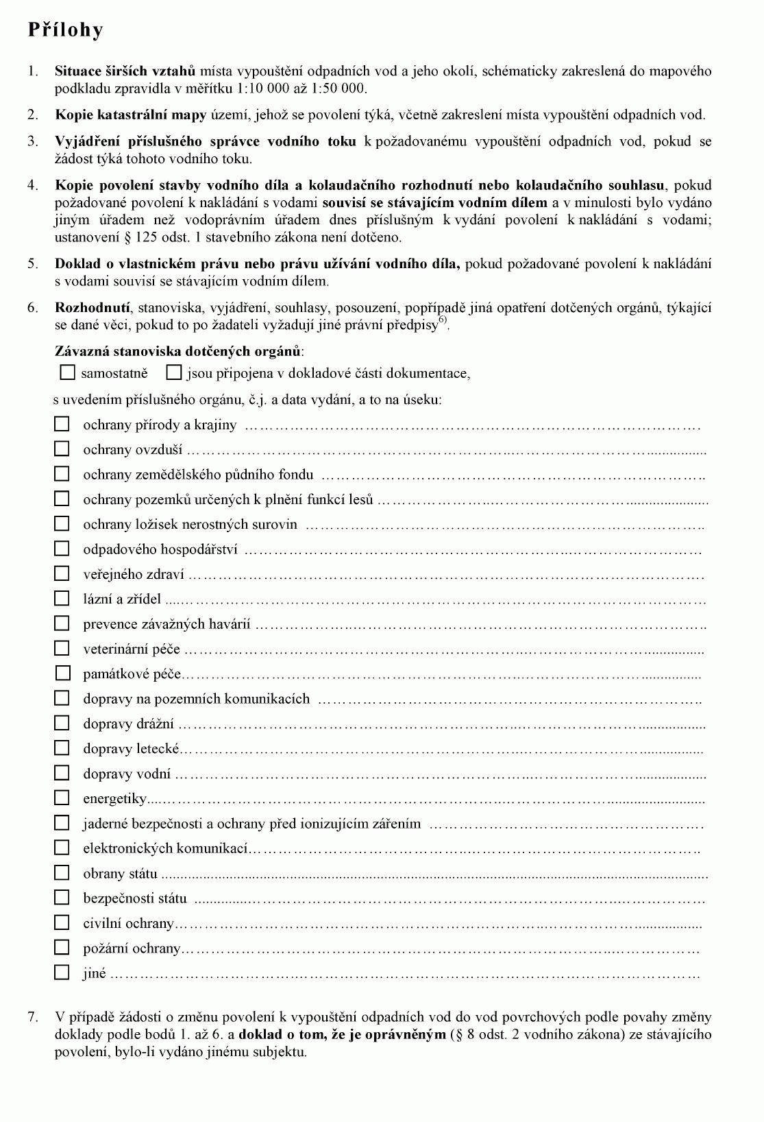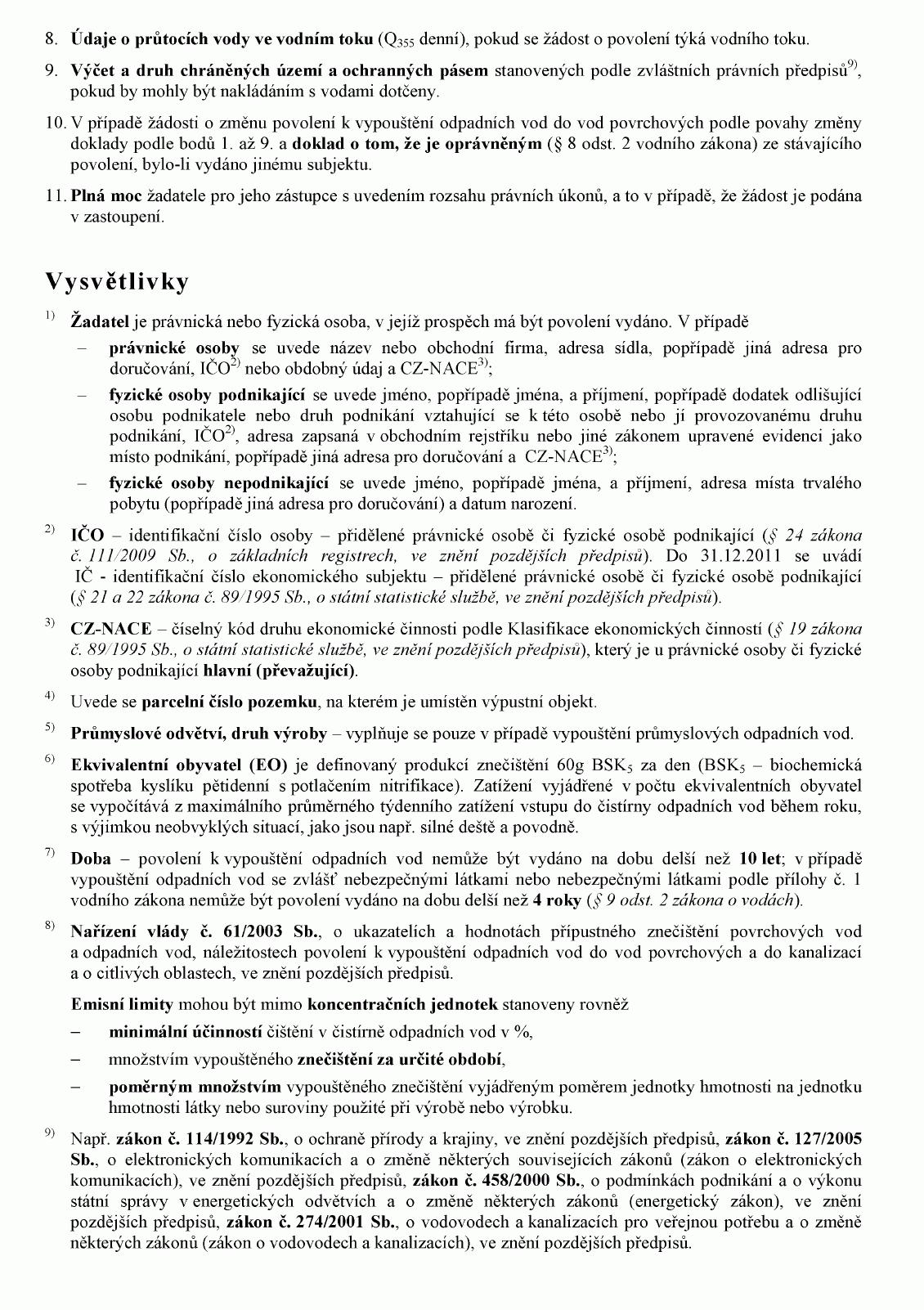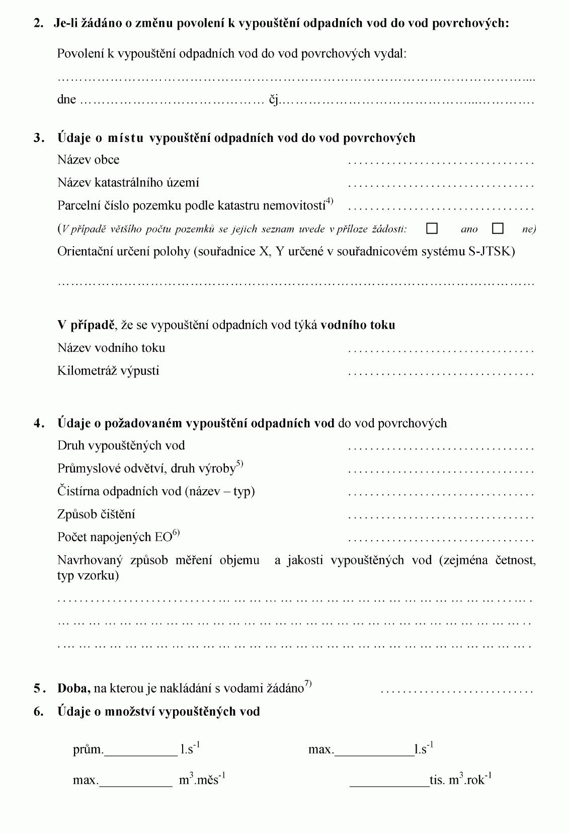 ŽÁDOST O POVOLENÍ K VYPOUŠTĚNÍ ODPADNÍCH VOD DO VOD POVRCHOVÝCH NEBO O