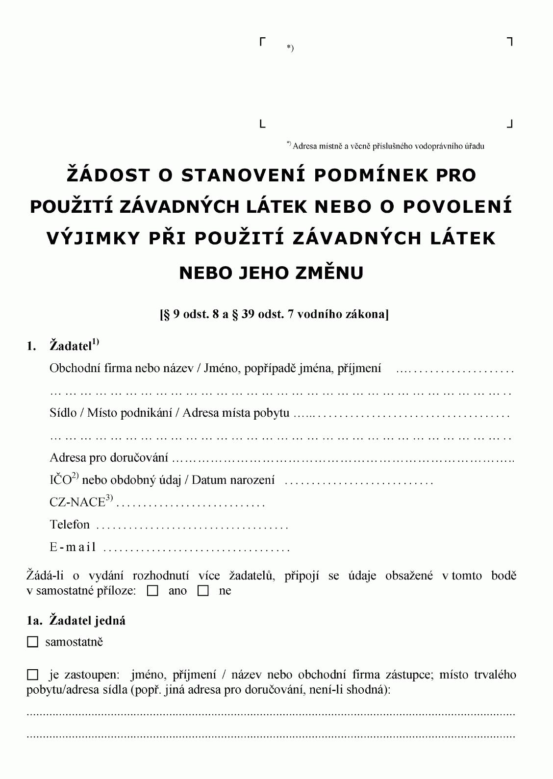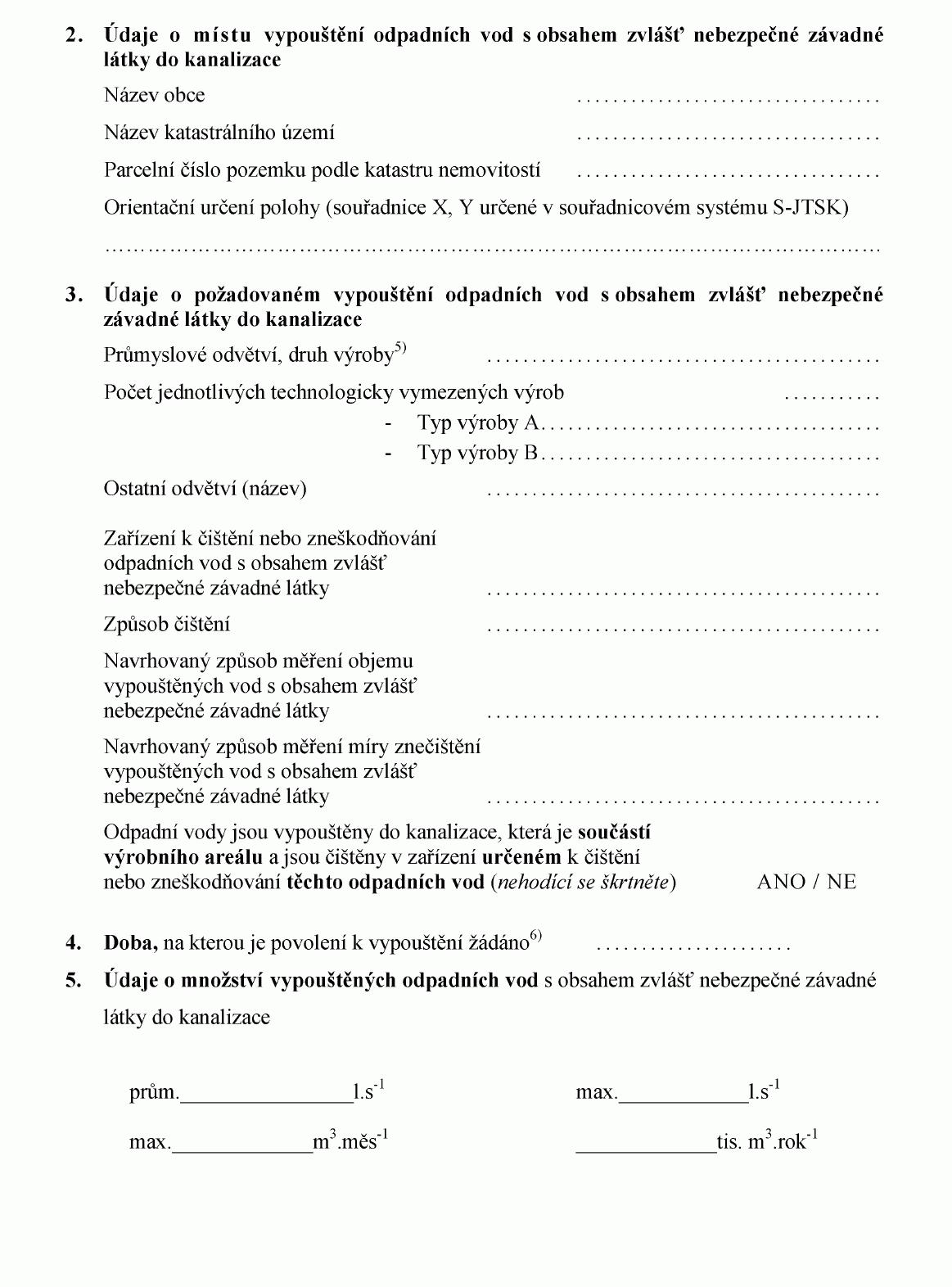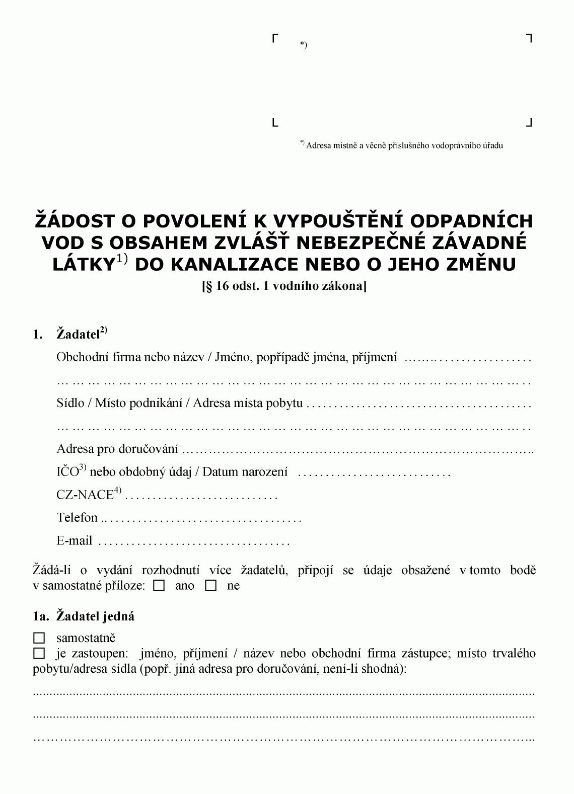 ŽÁDOST O POVOLENÍ K VYPOUŠTĚNÍ ODPADNÍCH VOD S OBSAHEM ZVLÁŠŤ NEBEZPEČNÉ
