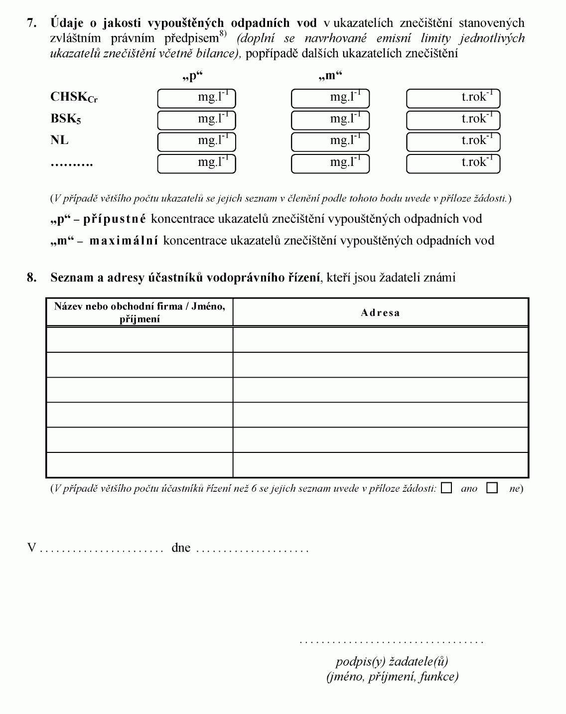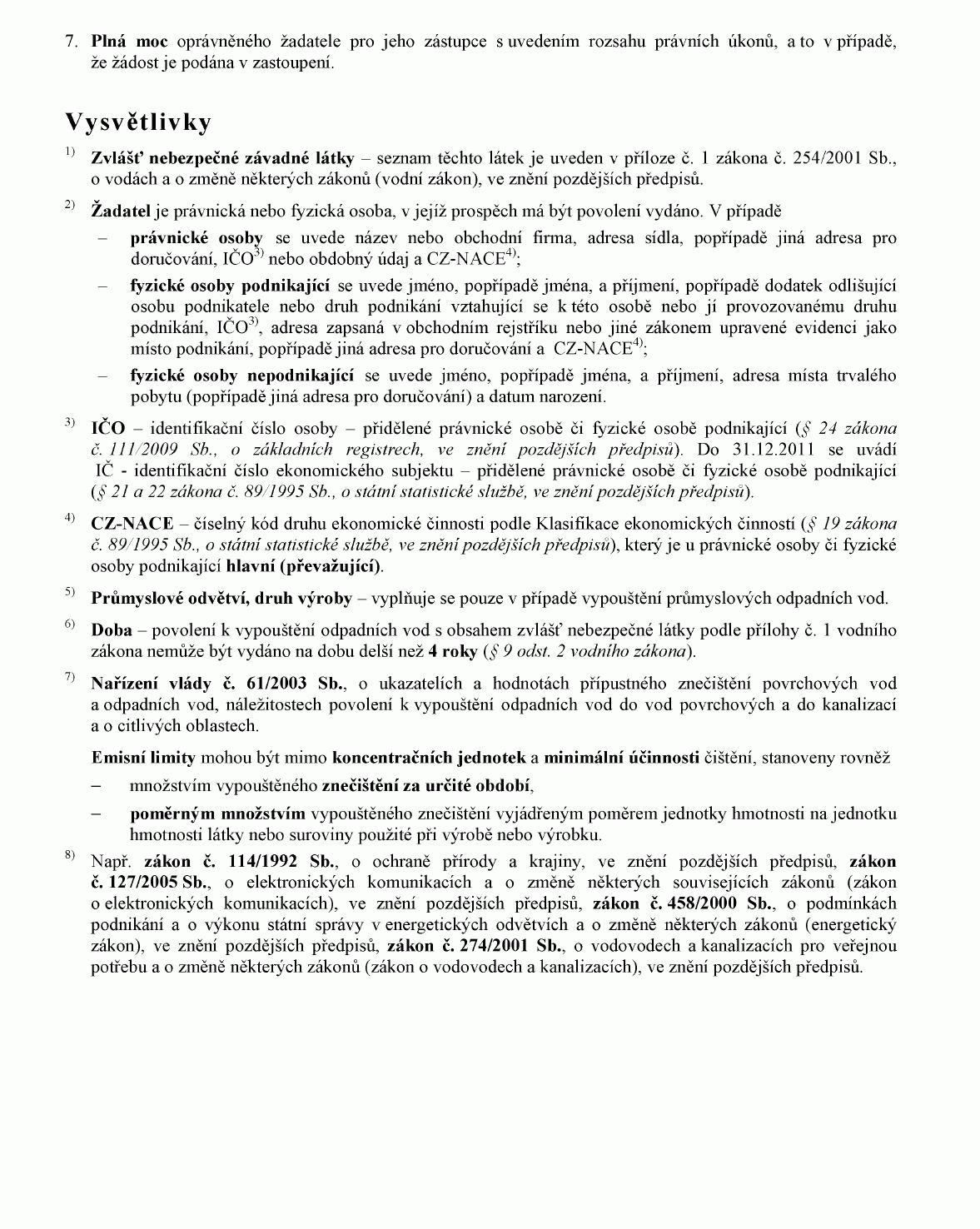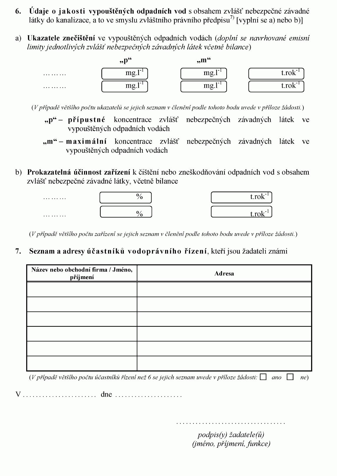 ŽÁDOST O POVOLENÍ K VYPOUŠTĚNÍ ODPADNÍCH VOD S OBSAHEM ZVLÁŠŤ NEBEZPEČNÉ