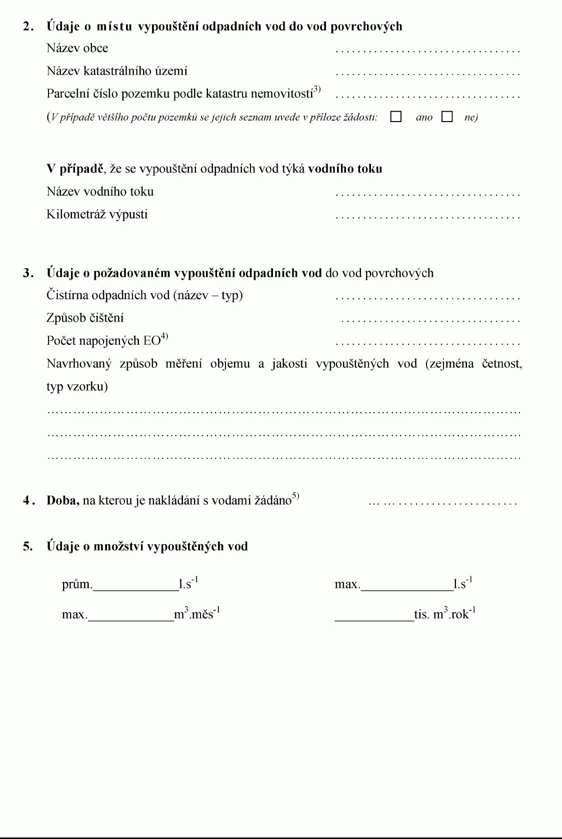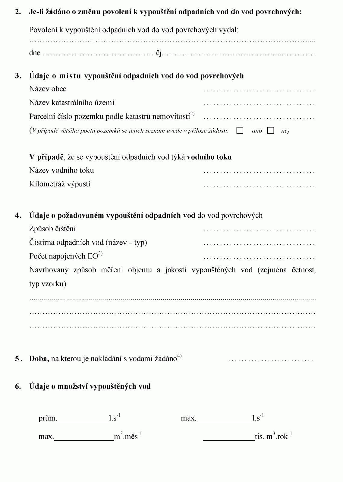 ŽÁDOST O POVOLENÍ K VYPOUŠTĚNÍ ODPADNÍCH VOD DO VOD POVRCHOVÝCH PRO POTŘEBY