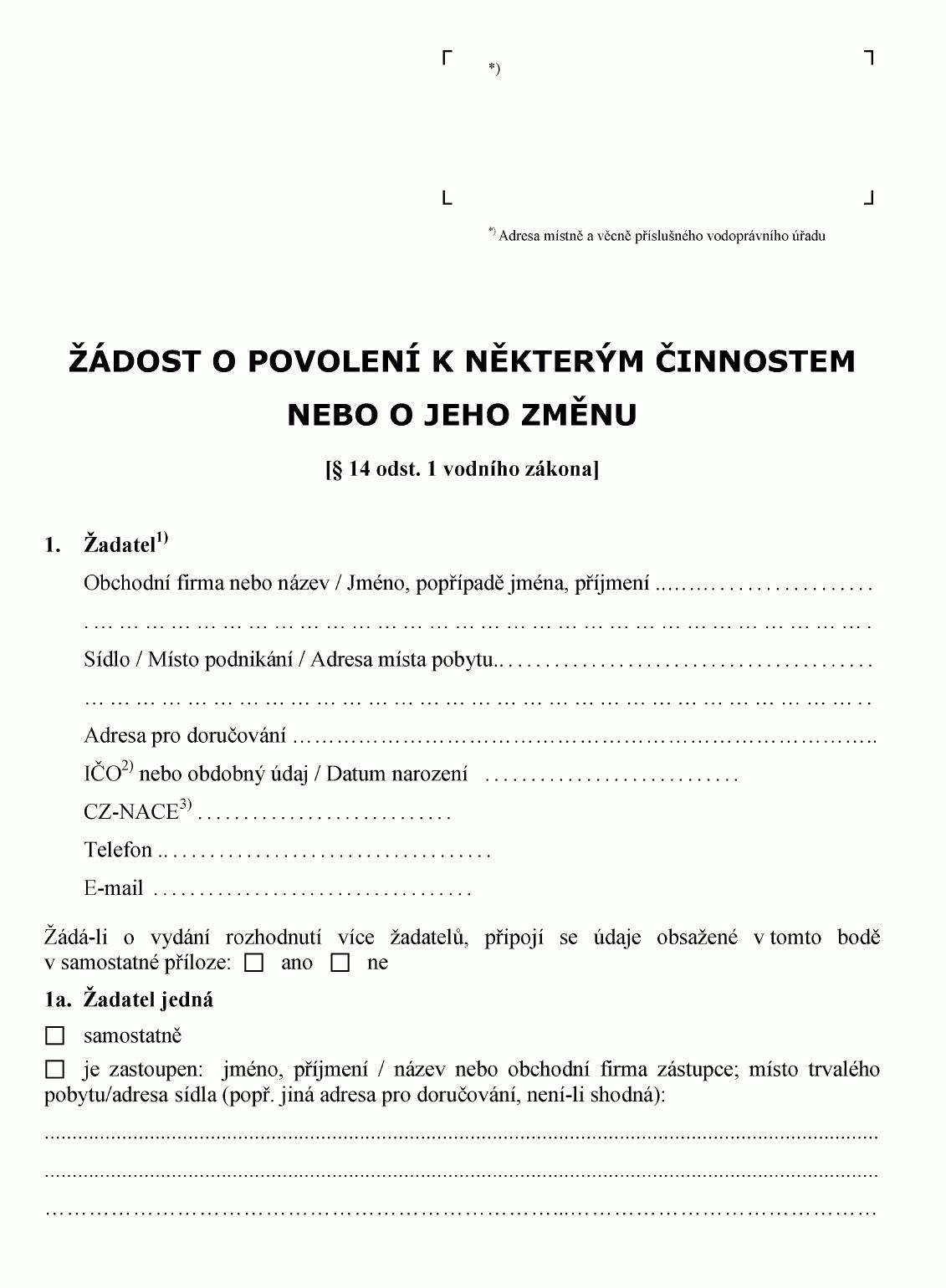 ŽÁDOST O POVOLENÍ K NĚKTERÝM ČINNOSTEM NEBO O JEHO ZMĚNU