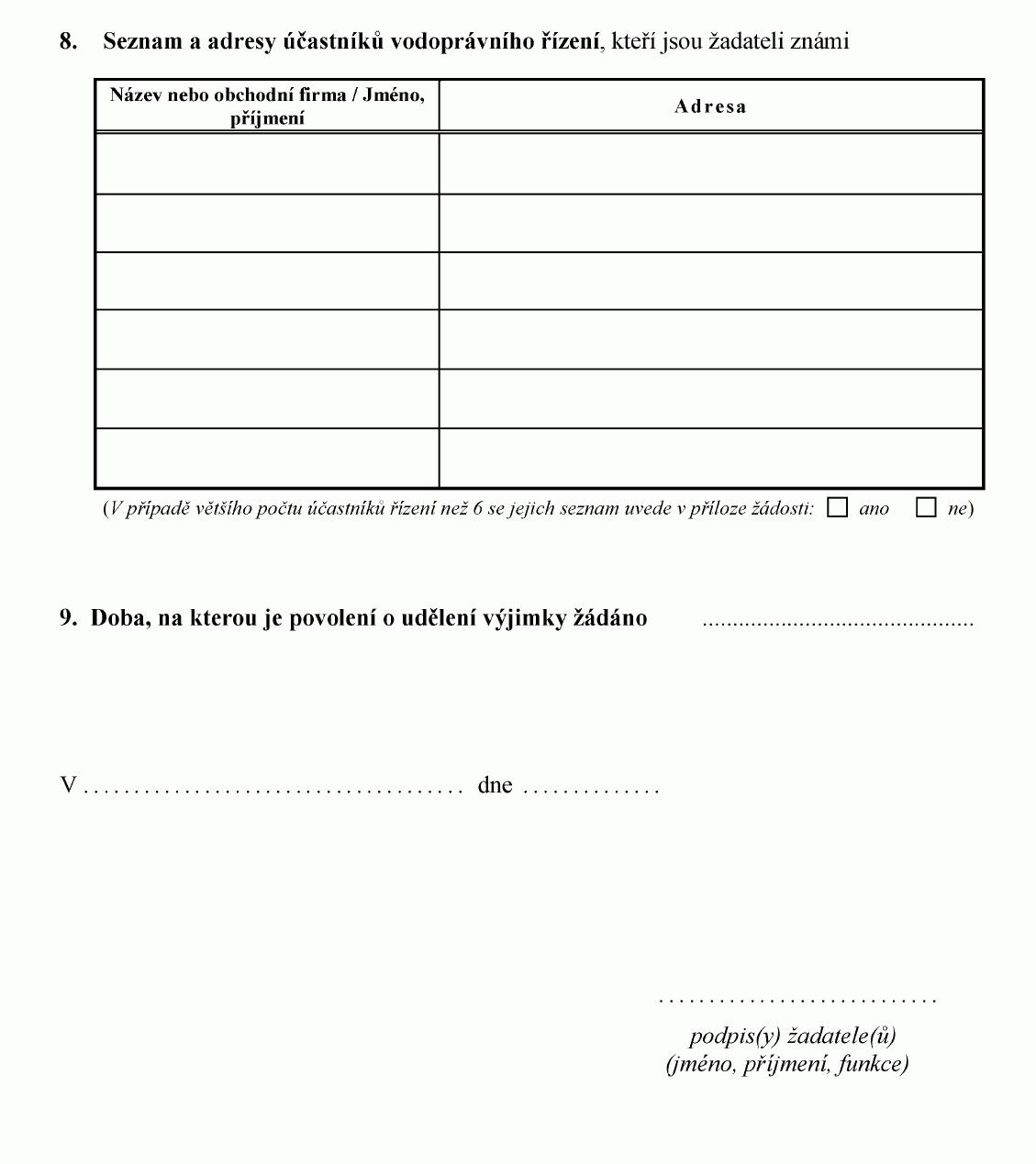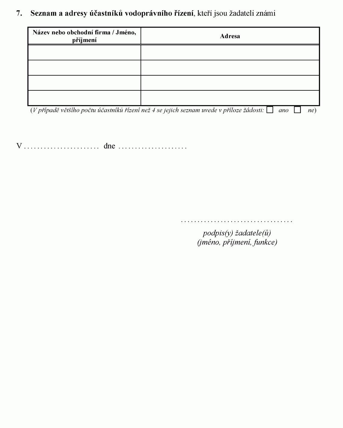 ŽÁDOST O POVOLENÍ K UŽÍVÁNÍ VODNÍCH DĚL