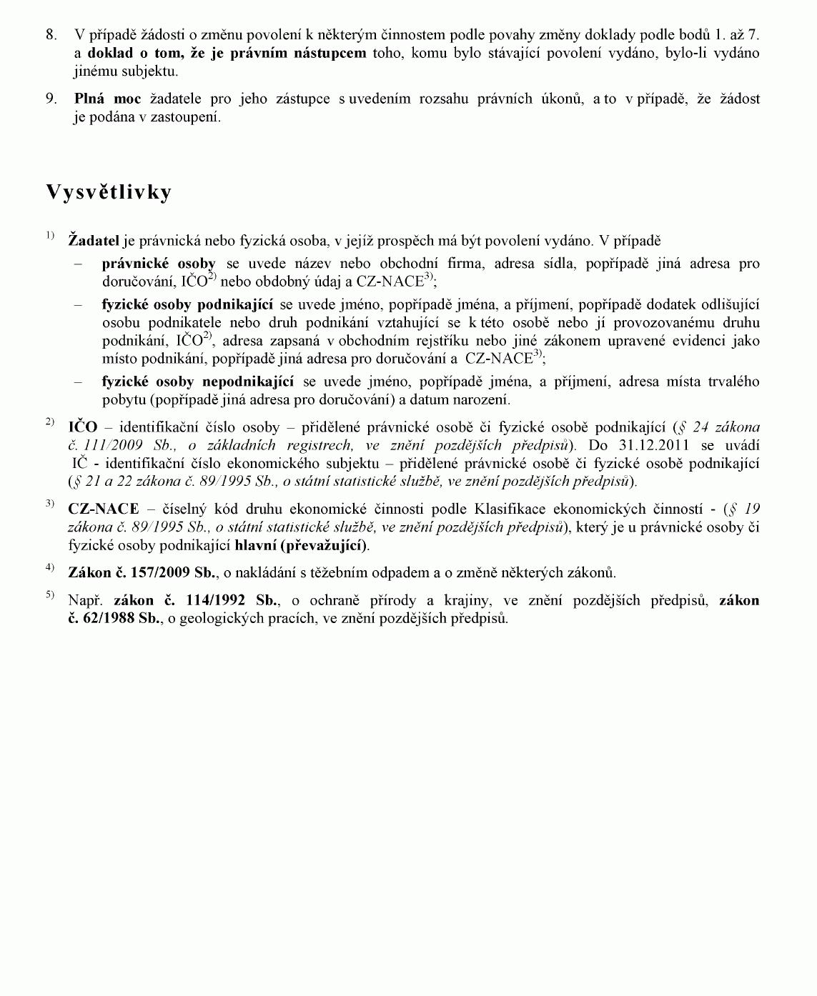 9) § 2 vyhlášky Ministerstva životního prostředí č. 137/1999 Sb., kterou