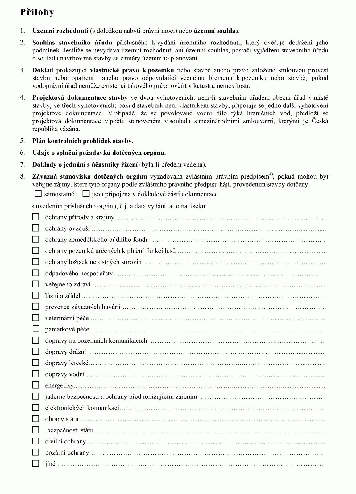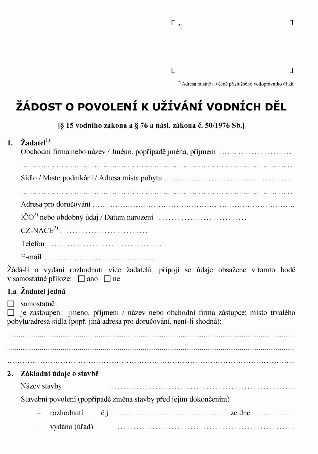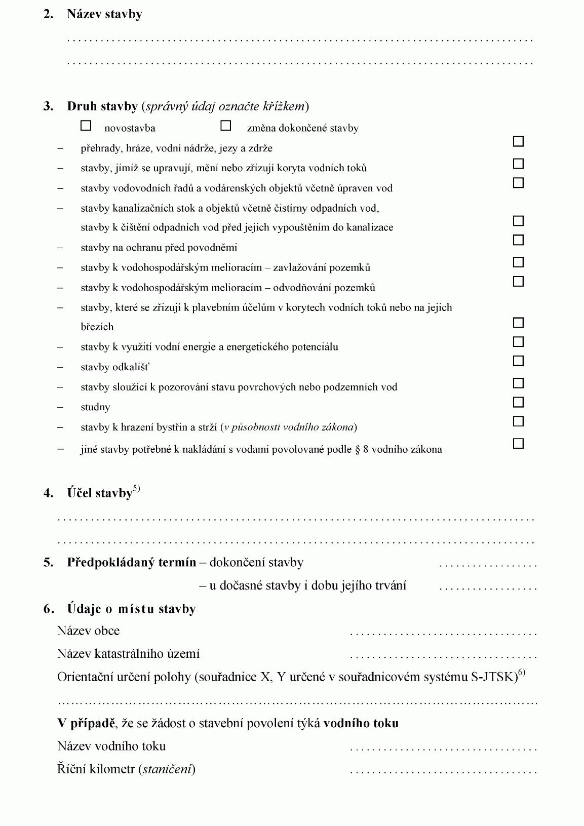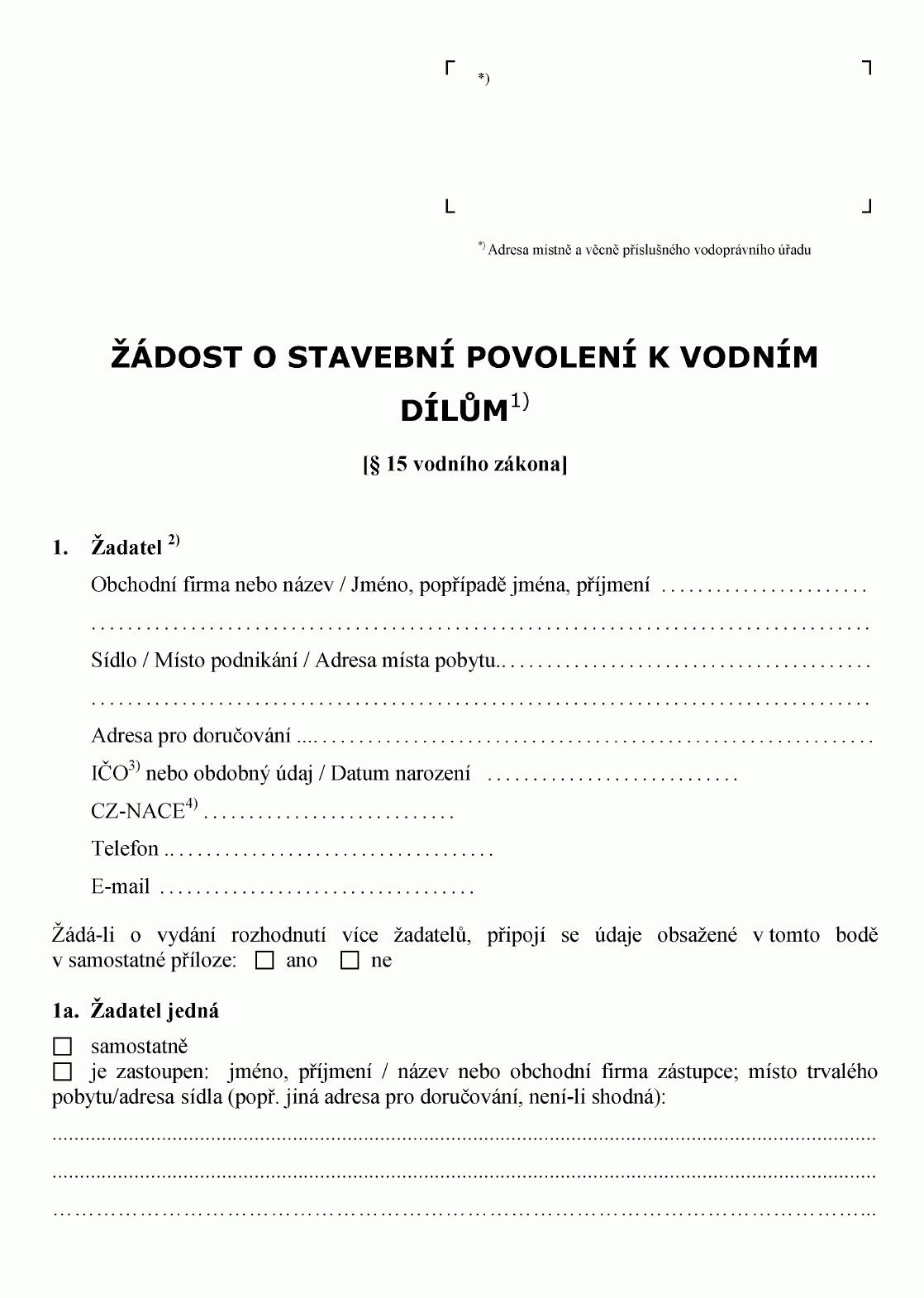 ŽÁDOST O STAVEBNÍ POVOLENÍ K VODNÍM DÍLŮM1)