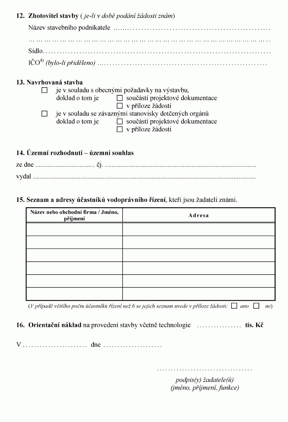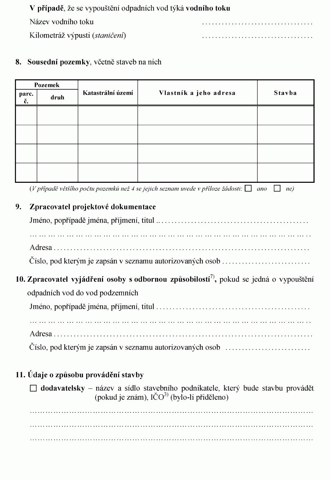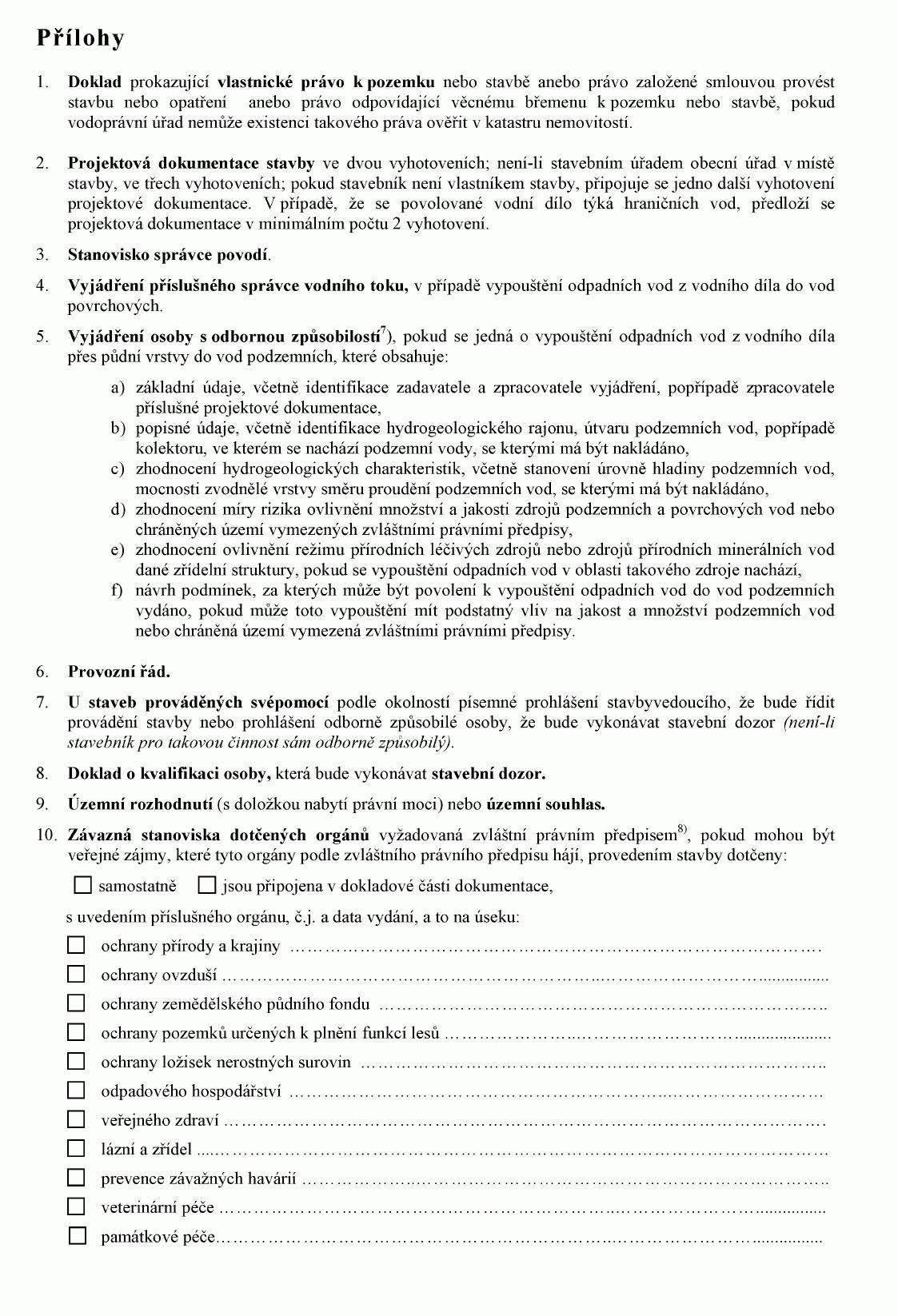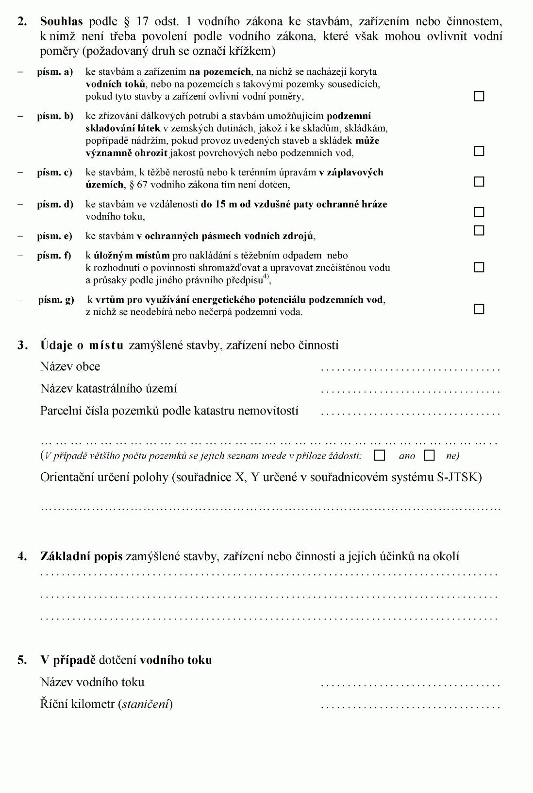 ŽÁDOST O STAVEBNÍ POVOLENÍ K VODNÍM DÍLŮM1)