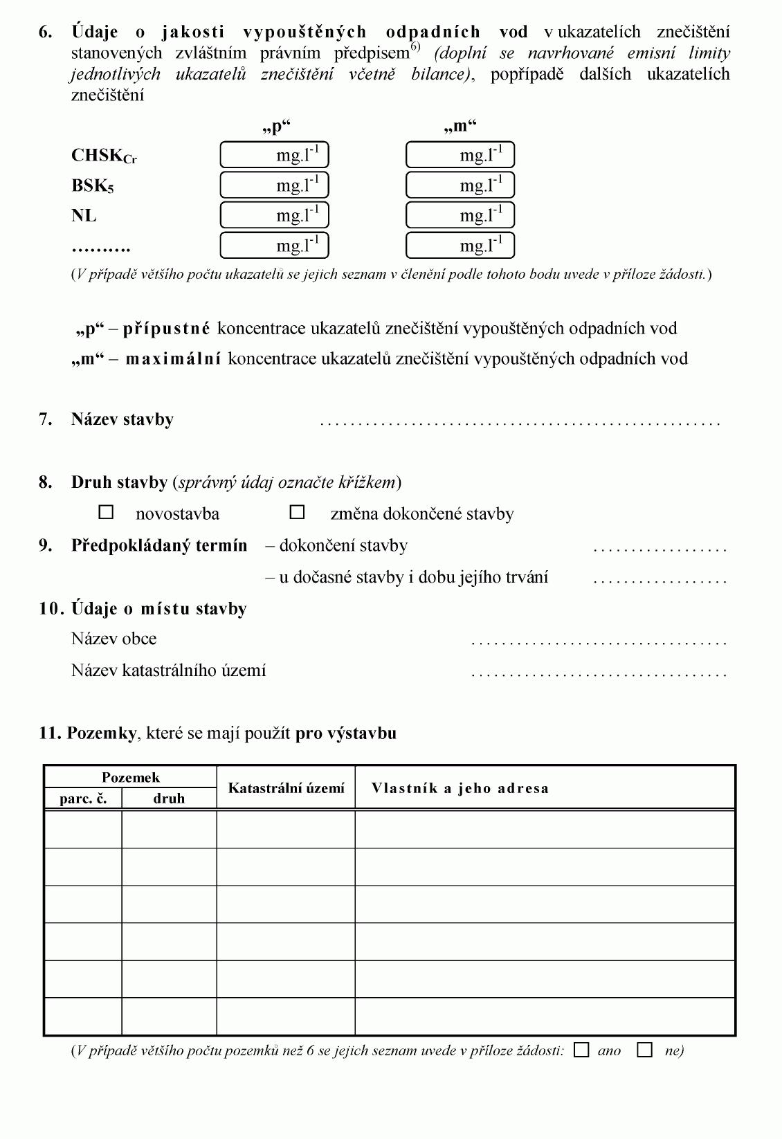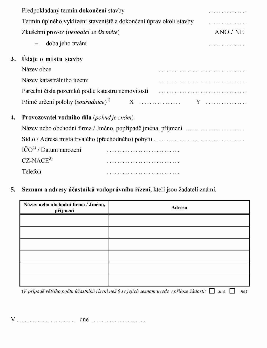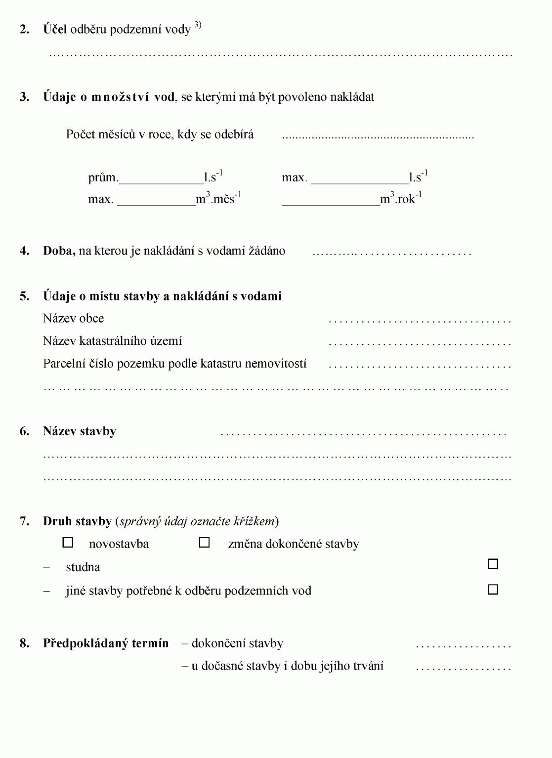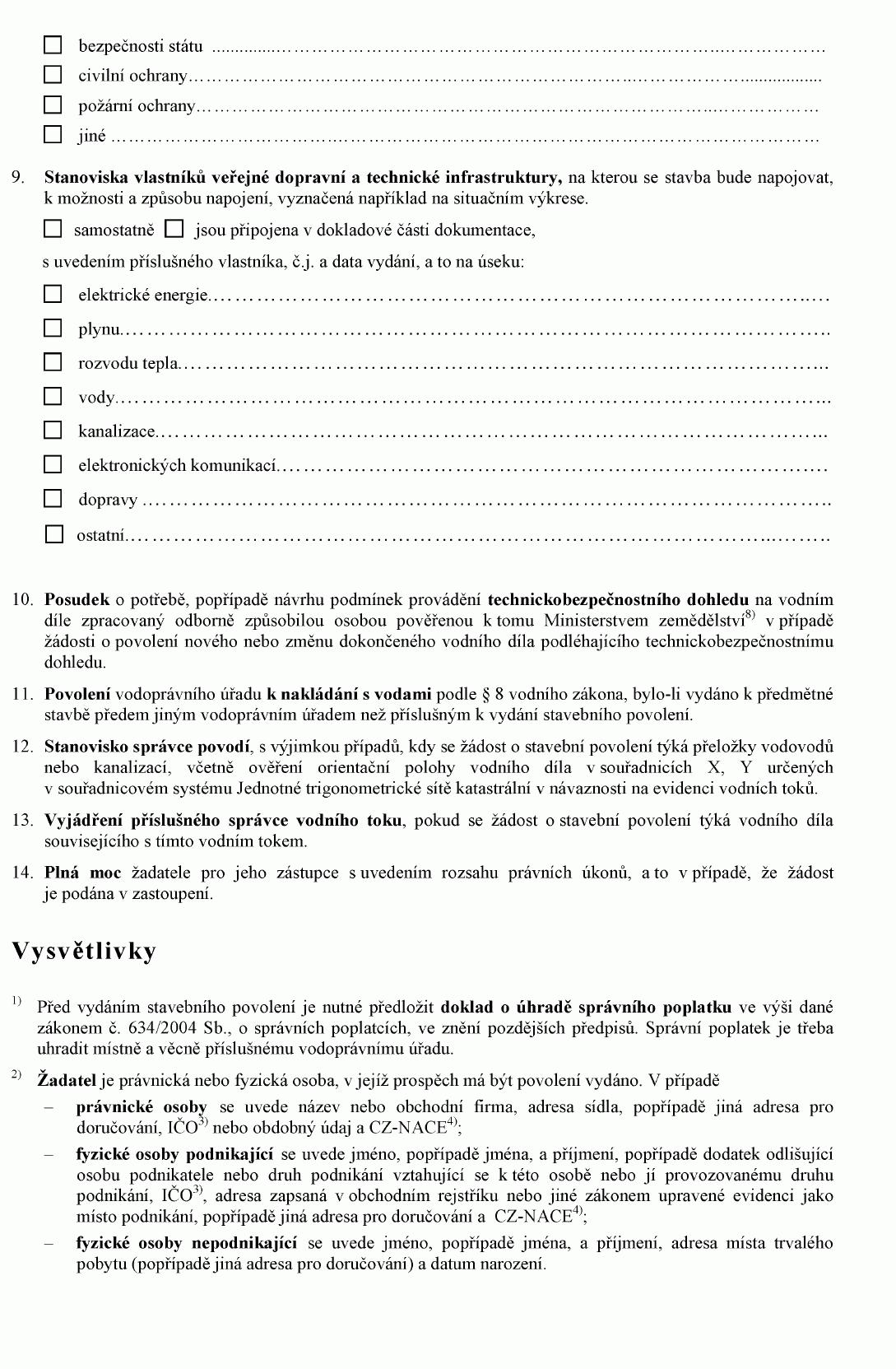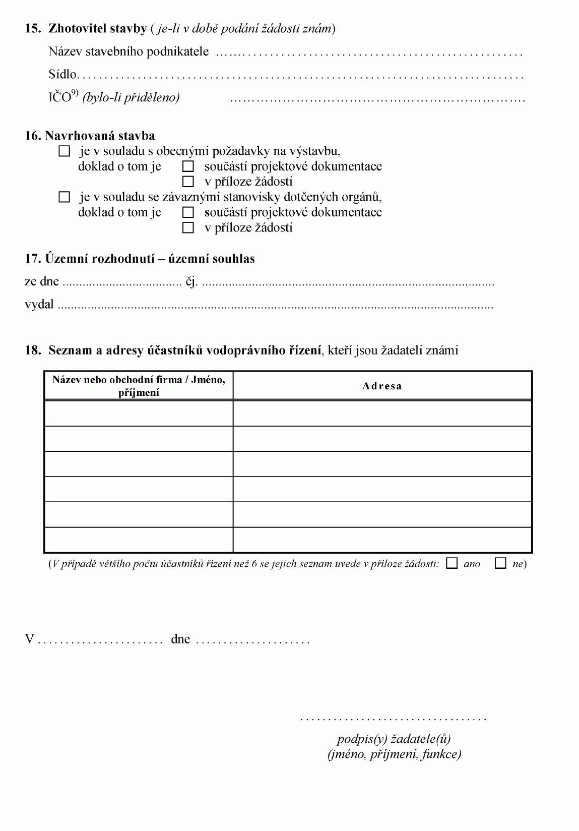 ŽÁDOST O STAVEBNÍ POVOLENÍ K VODNÍM DÍLŮM1)