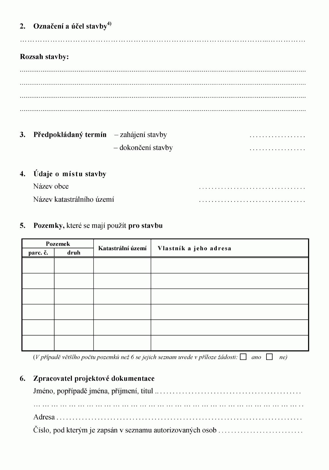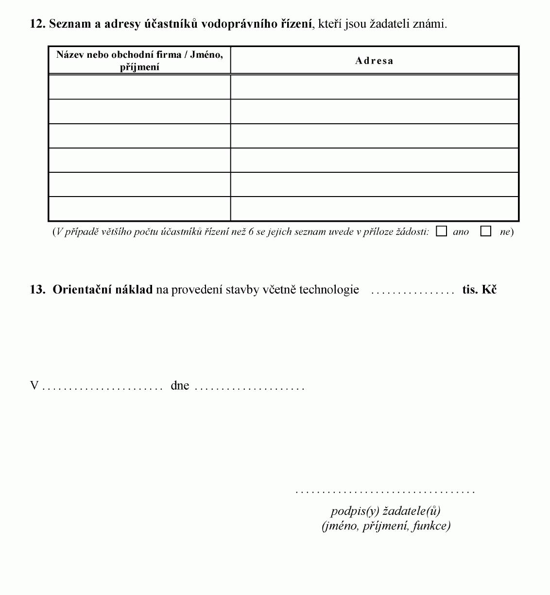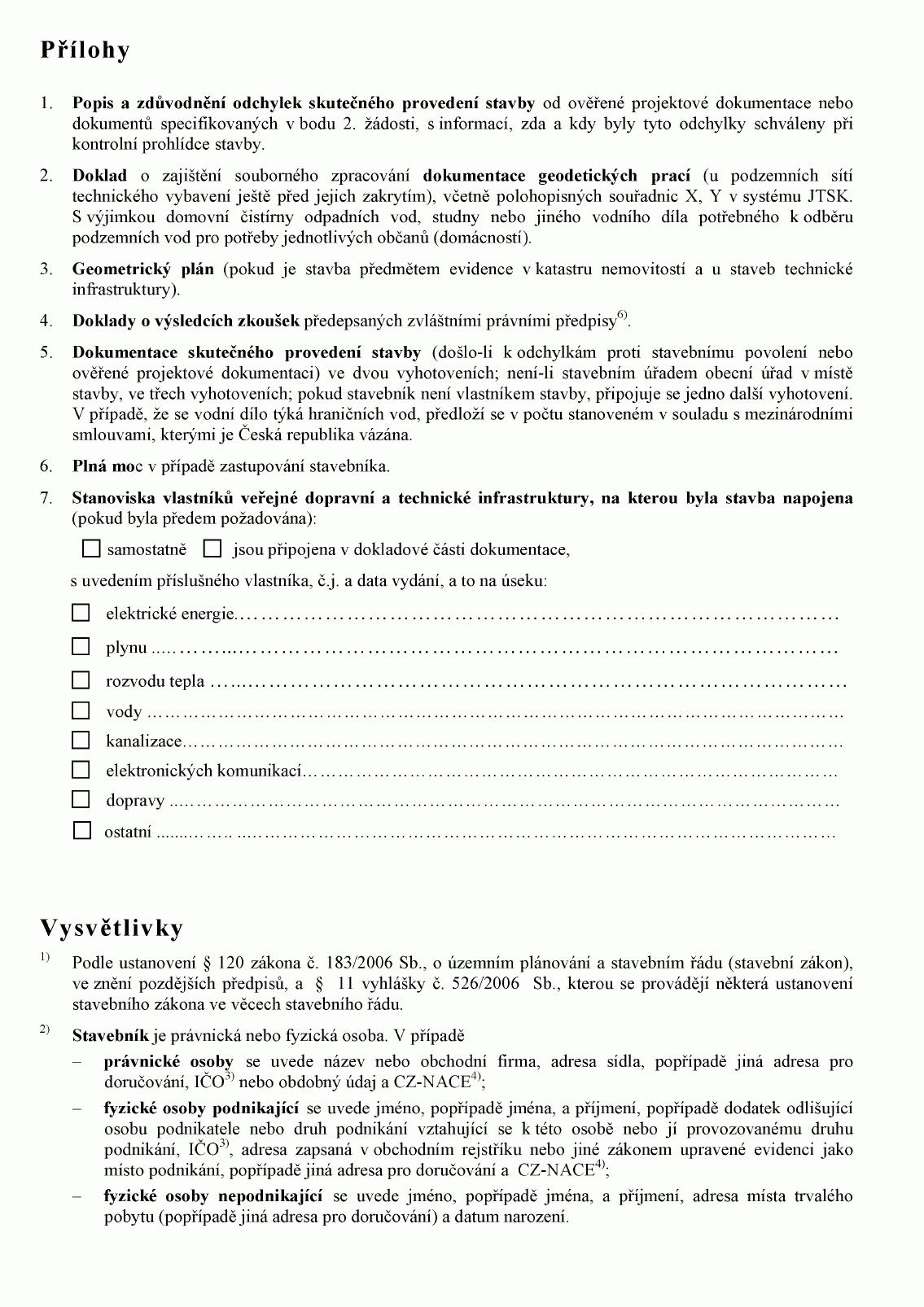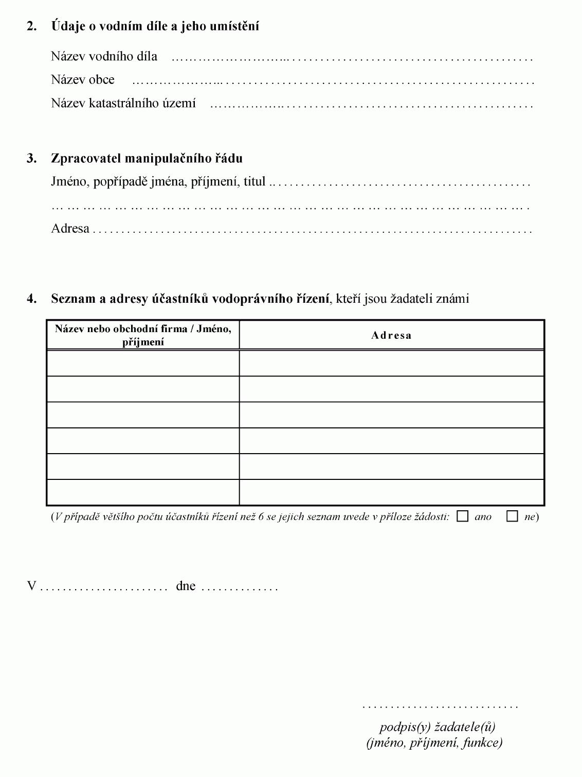 ŽÁDOST O STAVEBNÍ POVOLENÍ K VODNÍM DÍLŮM1)