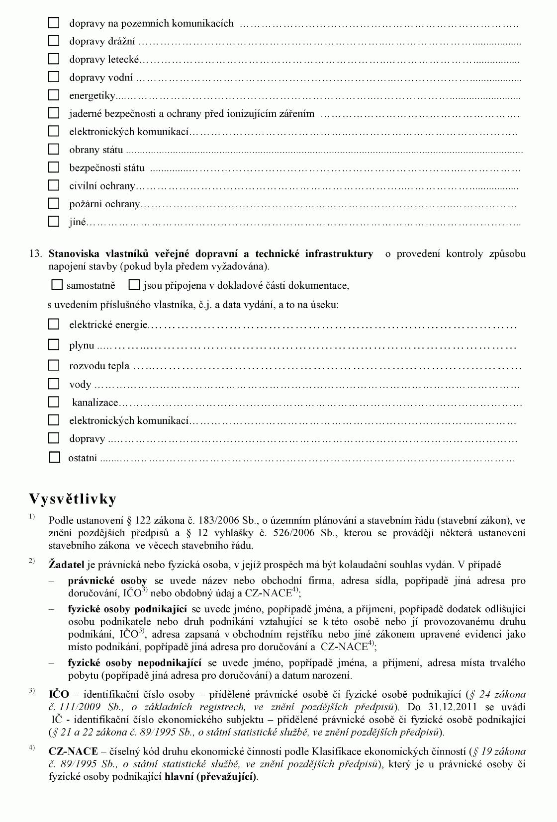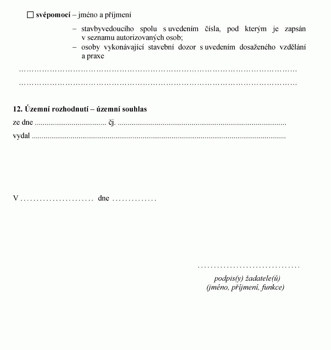 Vyhláška č. 432/2001 Sb., o dokladech žádosti o rozhodnutí nebo vyjádření a