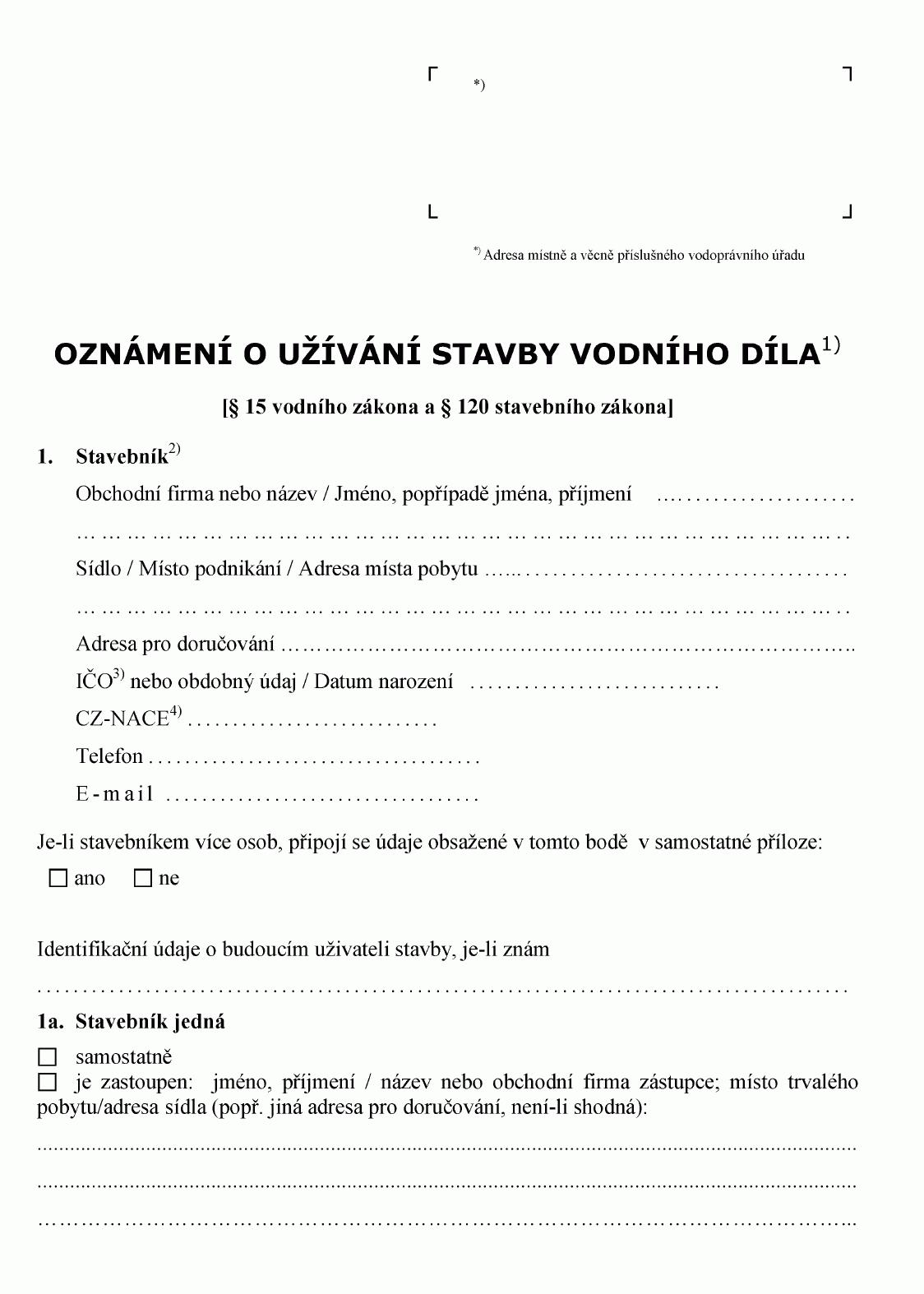OZNÁMENÍ O UŽÍVÁNÍ STAVBY VODNÍHO DÍLA1)