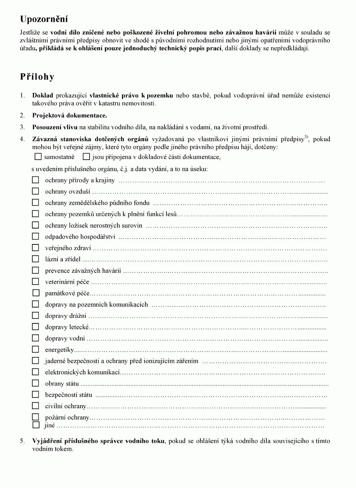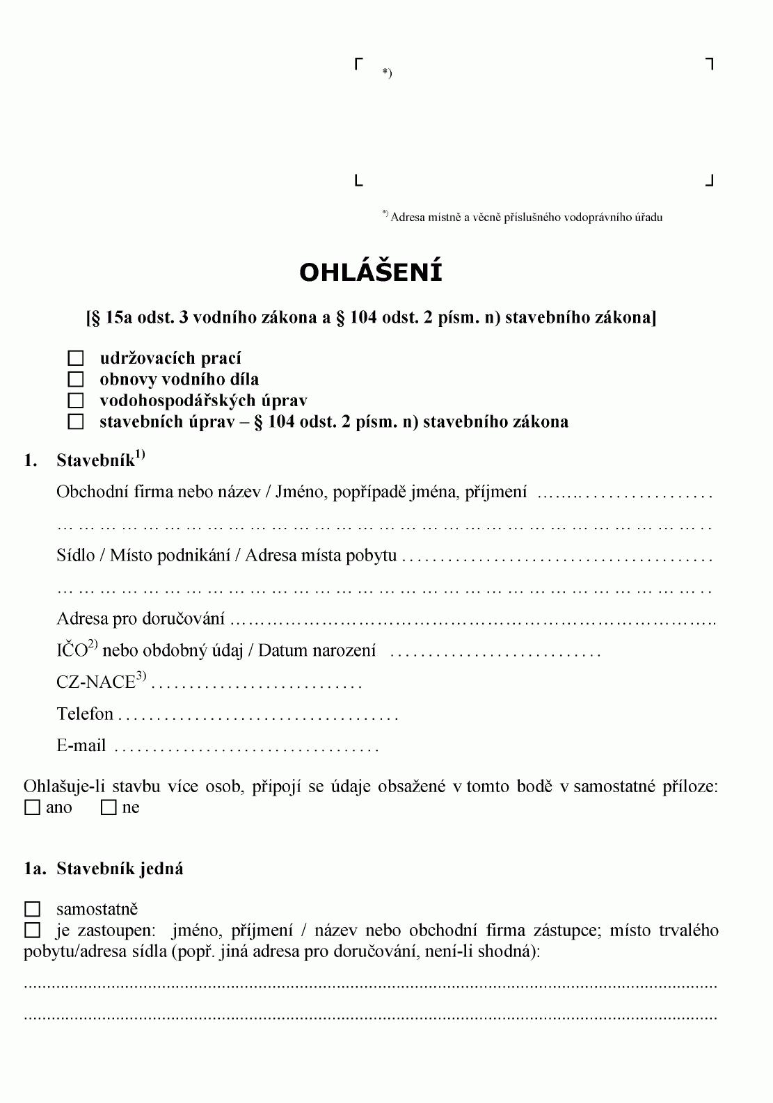 ohlášení stavebních úprav pro změny v užívání části stavby vodního díla podle stavebního