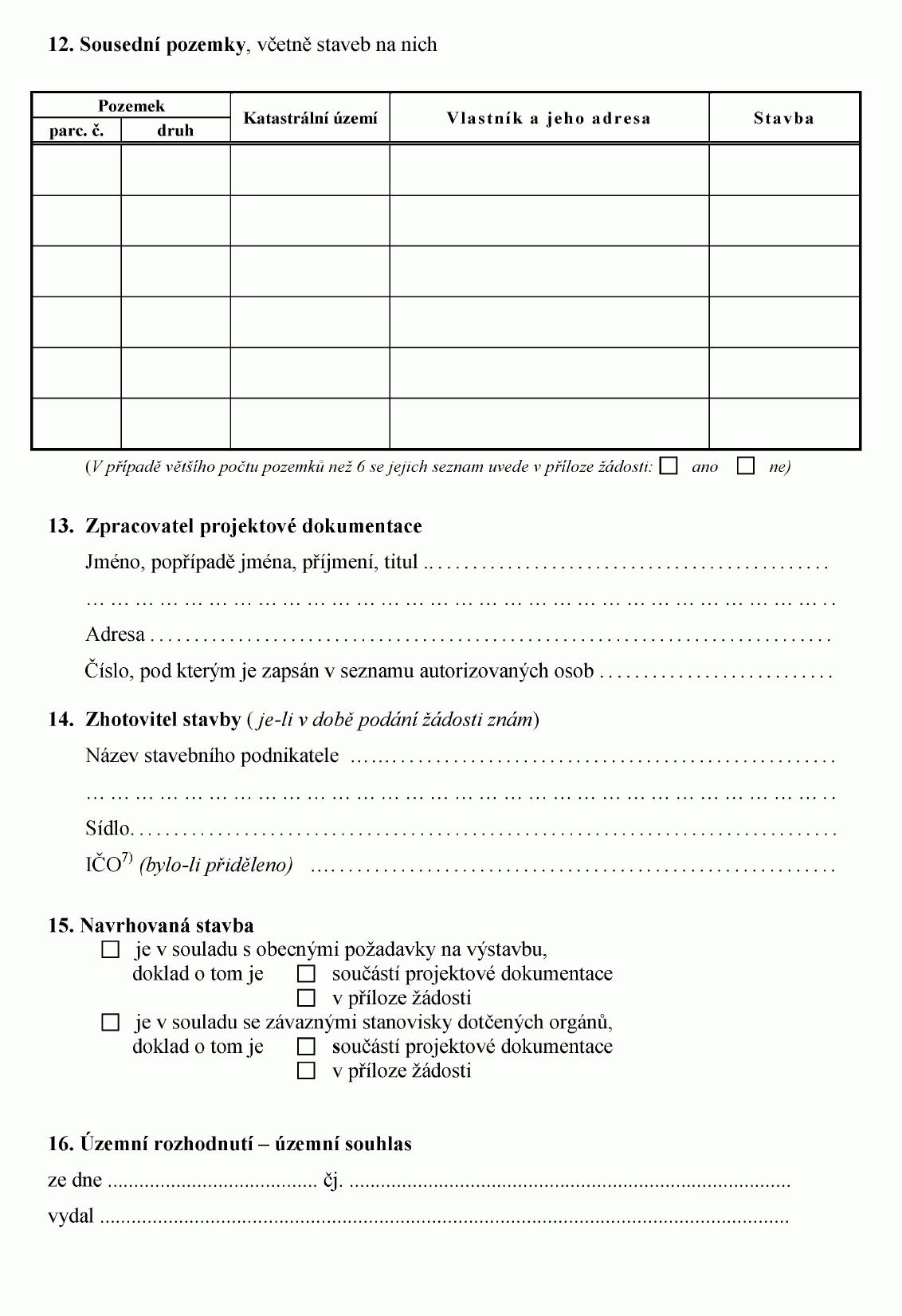 Příloha č. 16 k vyhlášce č. 432/2001 Sb.
