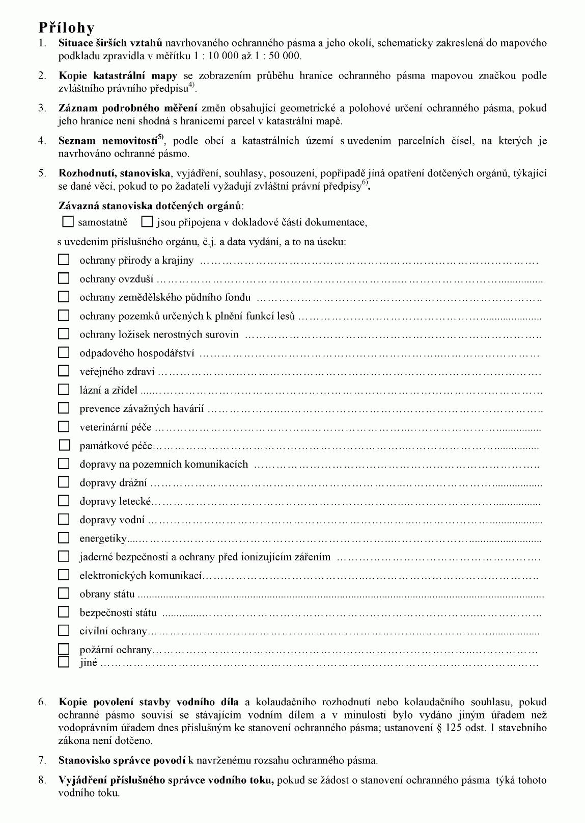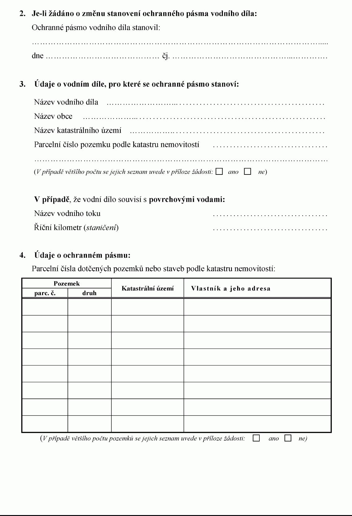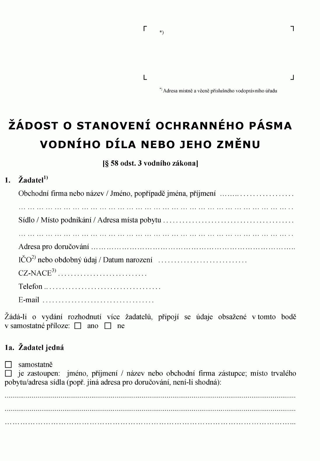 ŽÁDOST O STANOVENÍ OCHRANNÉHO PÁSMA VODNÍHO DÍLA NEBO JEHO ZMĚNU