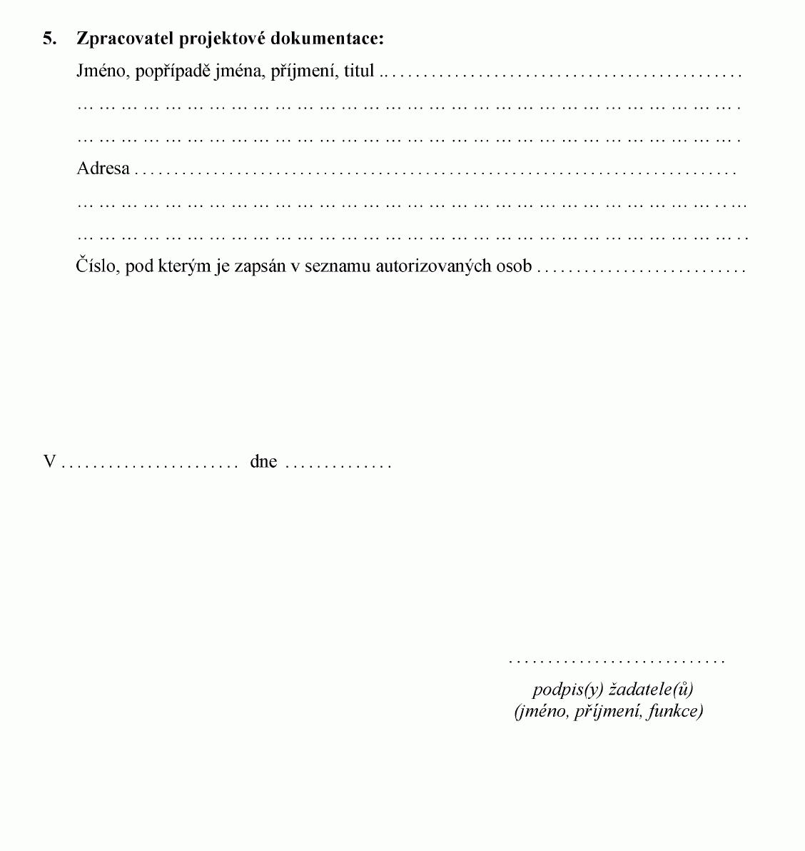 Příloha č. 5 k vyhlášce č. 432/2001 Sb.