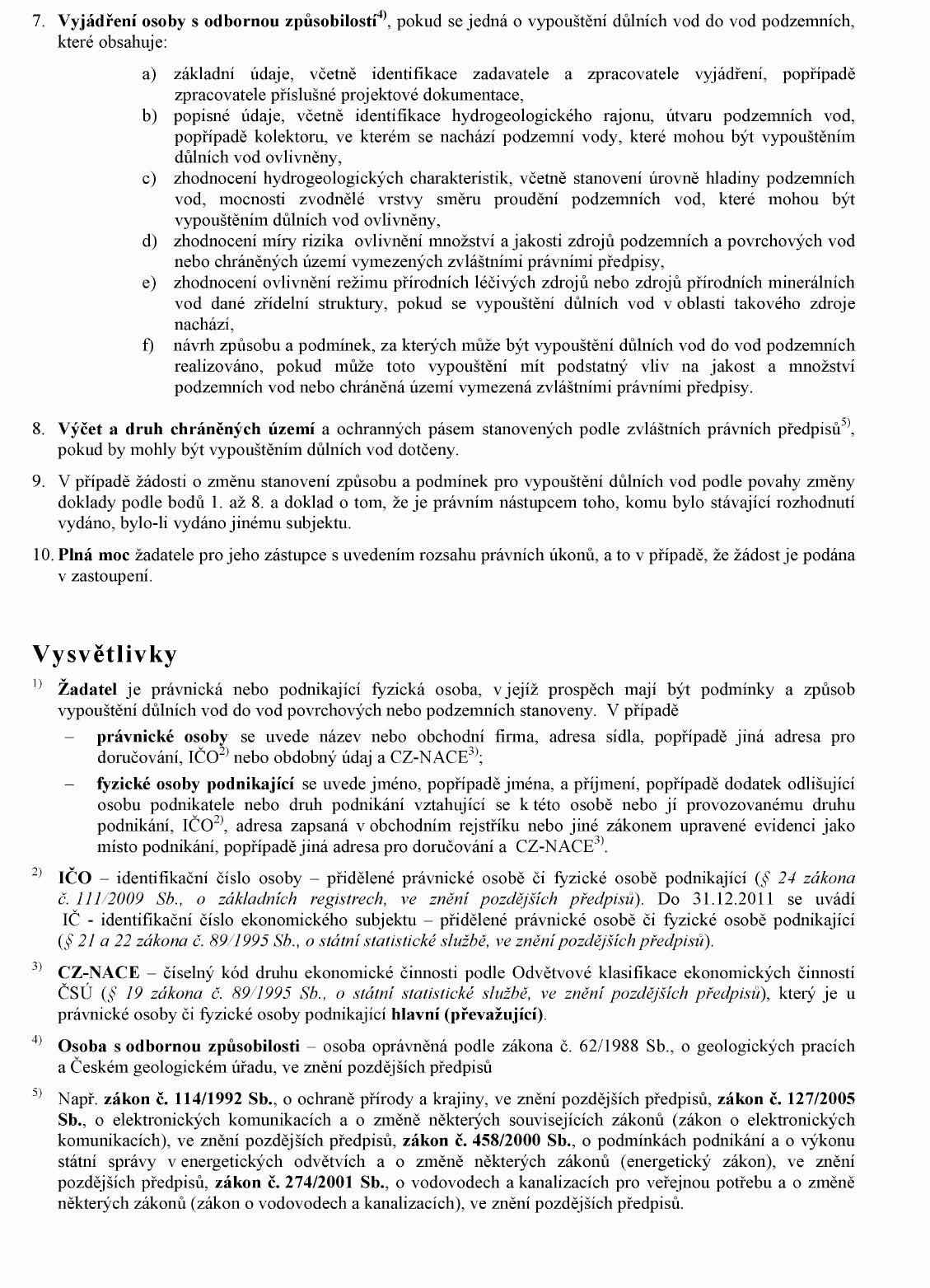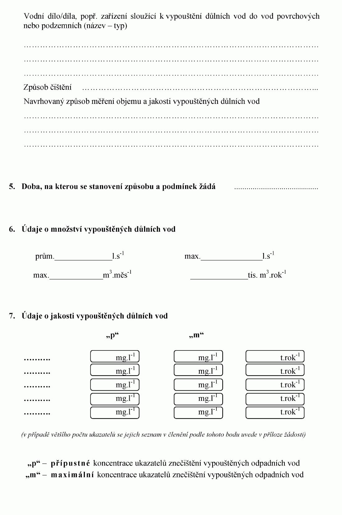ŽÁDOST O STANOVENÍ ZPŮSOBU A PODMÍNEK PRO VYPOUŠTĚNÍ DŮLNÍCH VOD DO VOD