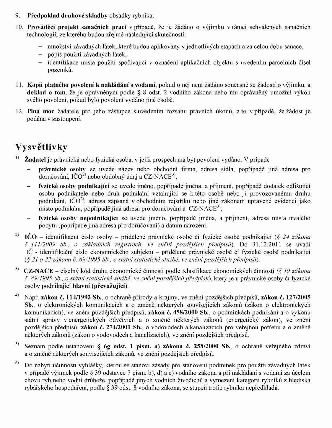 12) Vyhláška Ministerstva zemědělství č. 216/2011 Sb., o náležitostech