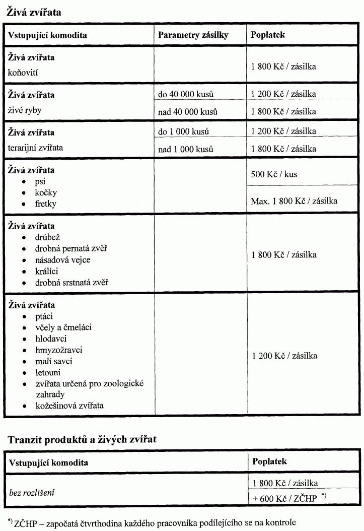 VÝŠE PAUŠÁLNÍ ČÁSTKY NÁKLADŮ SPOJENÝCH S PROVÁDĚNÍM POHRANIČNÍ VETERINÁRNÍ