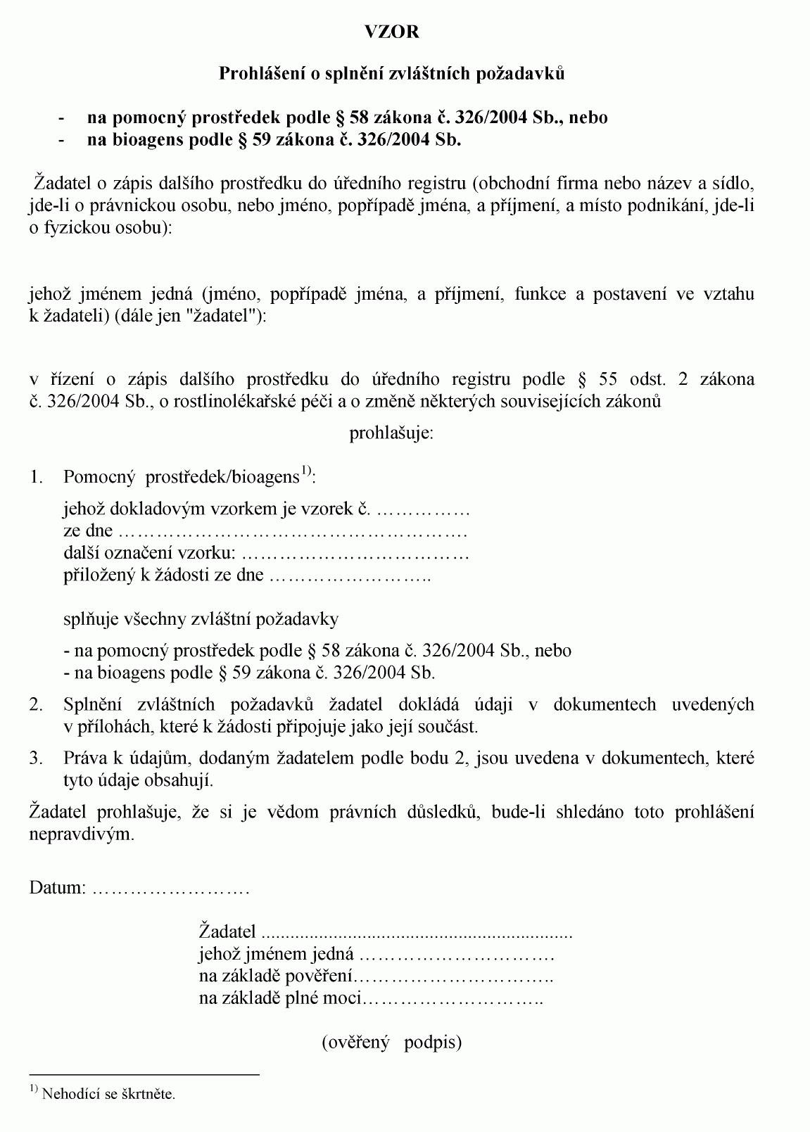 VZOR Prohlášení o splnění zvláštních požadavků