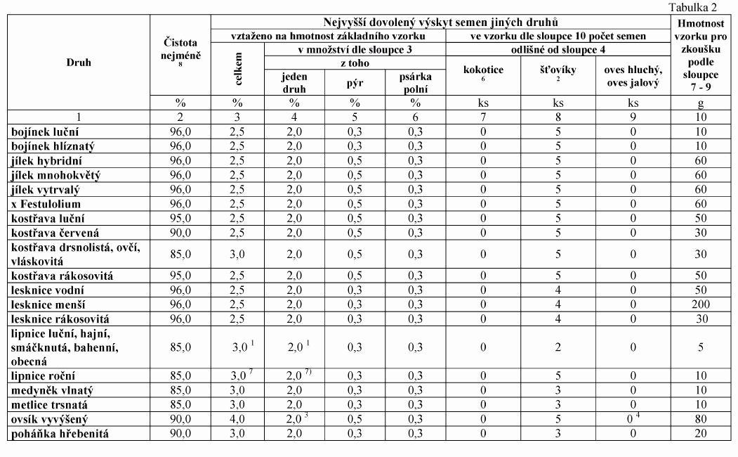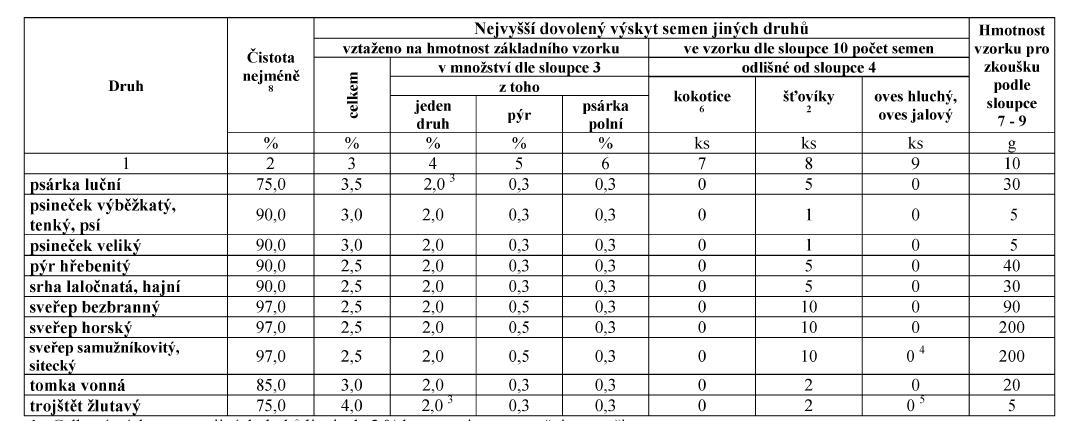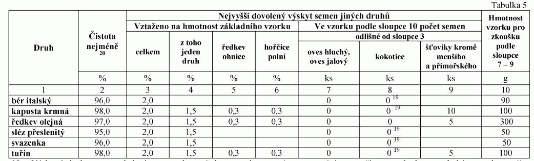 19 - Výskyt jednoho semene kokotic ve vzorku s předepsanou hmotností se nepovažuje za nečistotu,