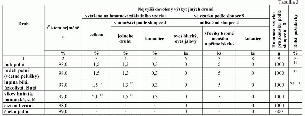 9 - Procentní podíl hořkých semen v jiných než hořkých odrůdách lupiny nesmí přesáhnout 2,5 %.