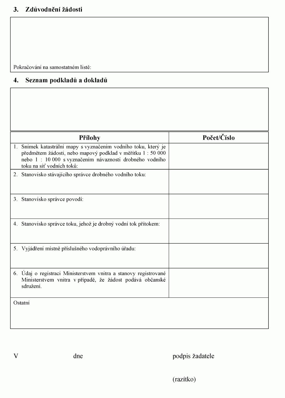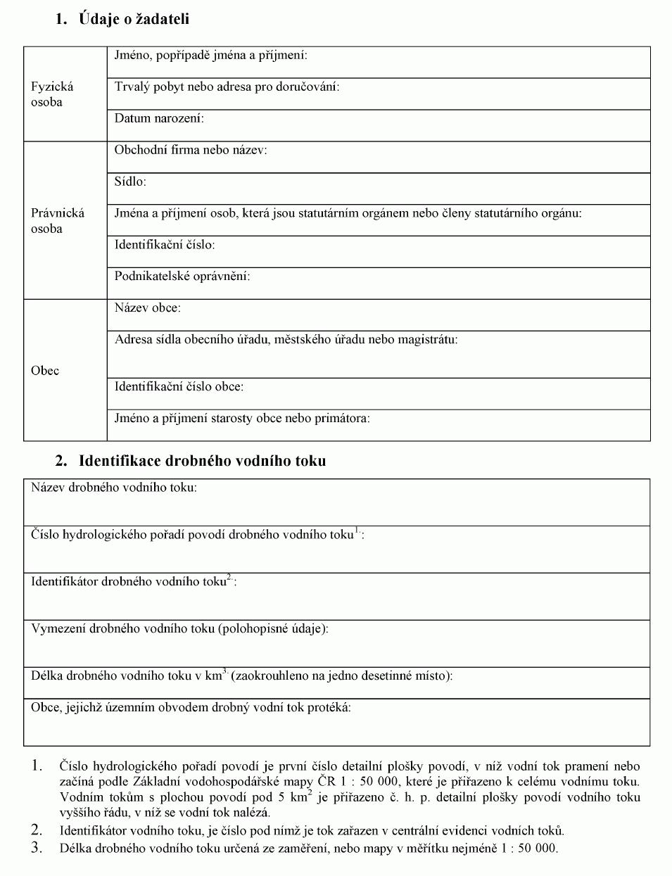 Právní předpisyVzor žádosti o určení správcem nebo zrušení správcem drobného vodního toku