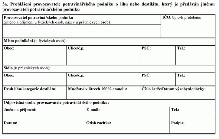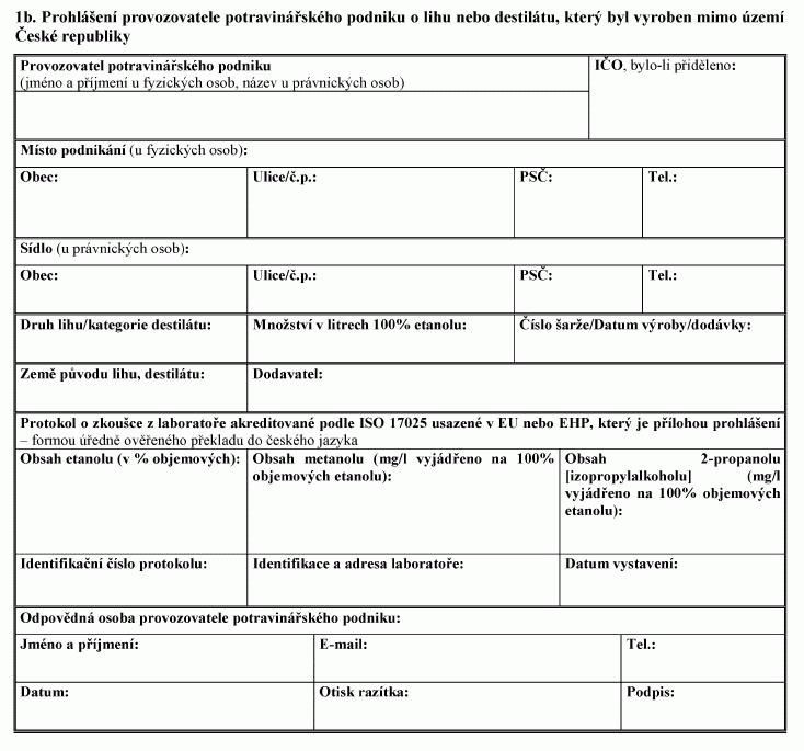 Právní předpisyFormulář dokladu o původu lihu pro potravinářské účely, destilátu a lihovin o obsahu etanolu nejméně 20 % objemových nebo více