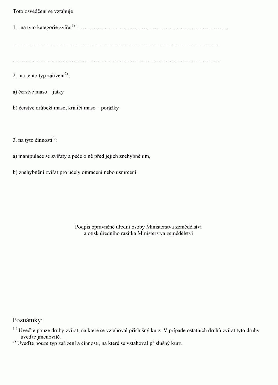 Vzor dočasného osvědčení o způsobilosti pro osoby podílející se na úkonech souvisejících s porážením zvířat