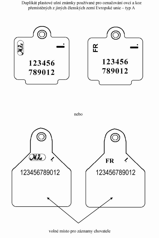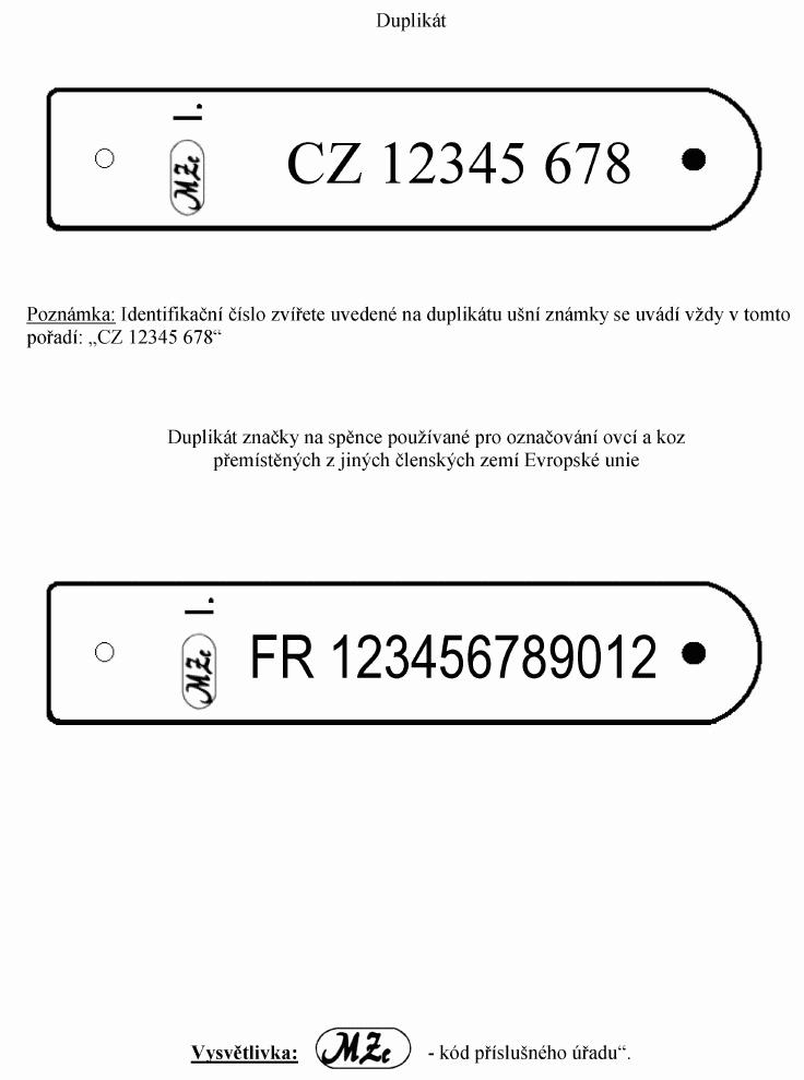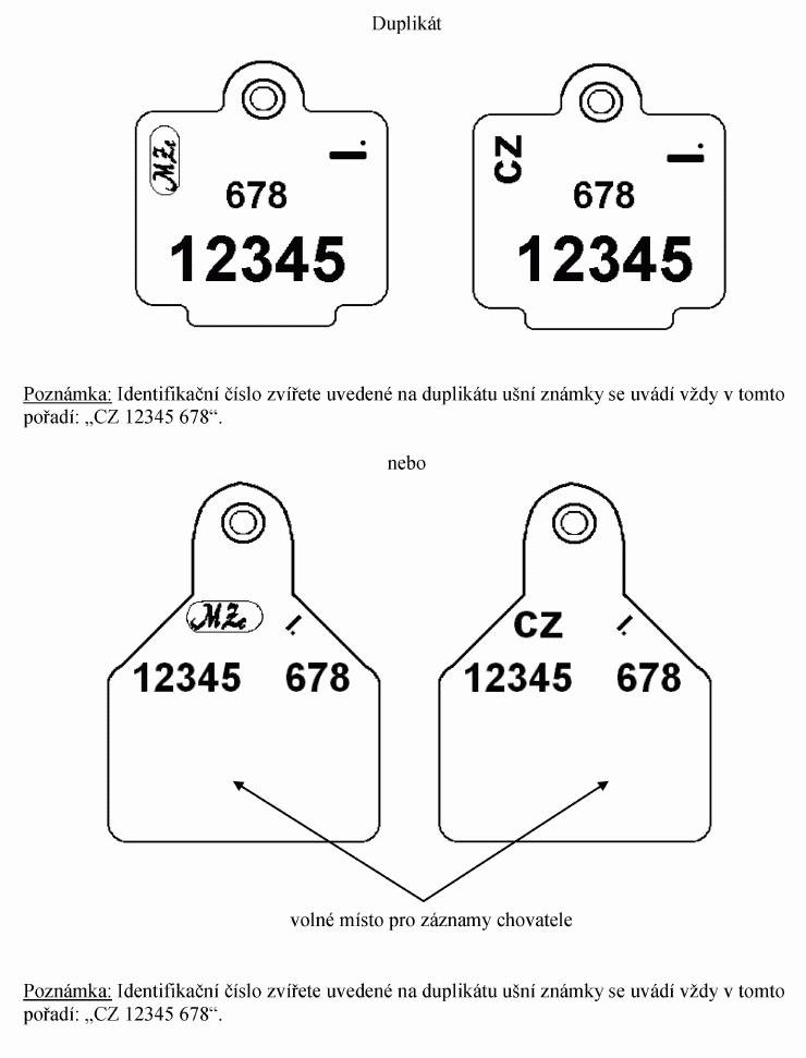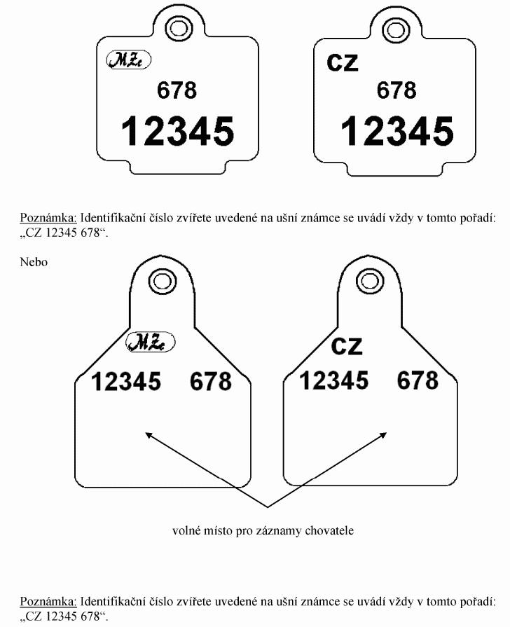 ušními známkami, po jedné v každém uchu, a do této doby chovatel musí zabezpečit,