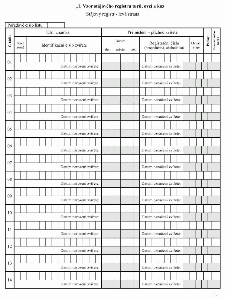 „(1) Stájové registry, registry zvířat v hospodářství s výjimkou koní,