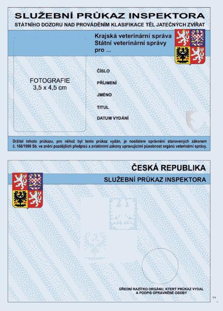 Služební průkaz inspektora státního dozoru nad prováděním klasifikace těl