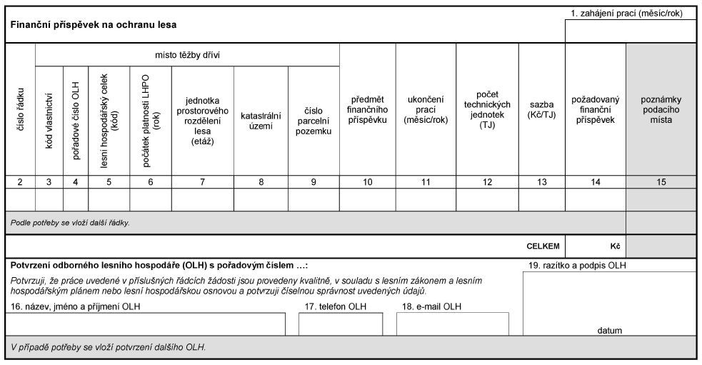 VZOR ŽÁDOSTI O POSKYTNUTÍ FINANČNÍCH PŘÍSPĚVKŮ NA HOSPODAŘENÍ V LESÍCH POSKYTOVANÝCH