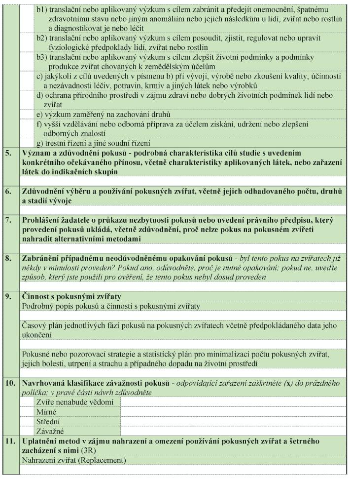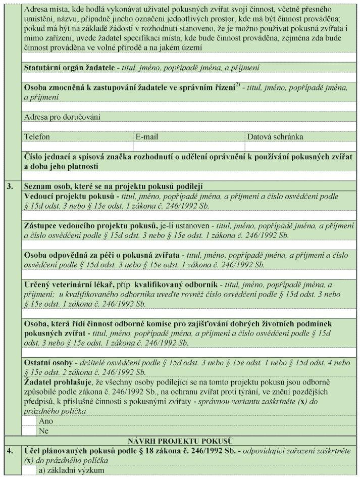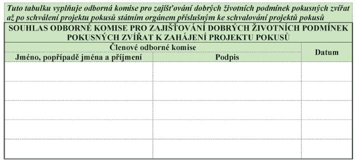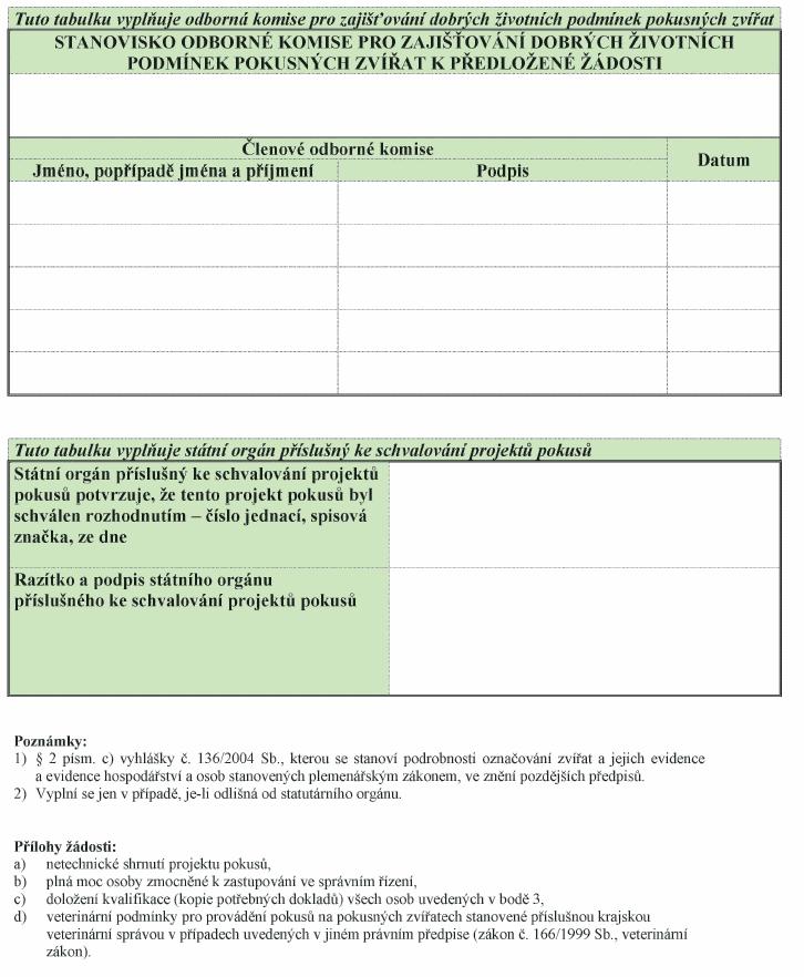 Vzor formuláře žádosti o schválení projektu pokusů je uveden v příloze