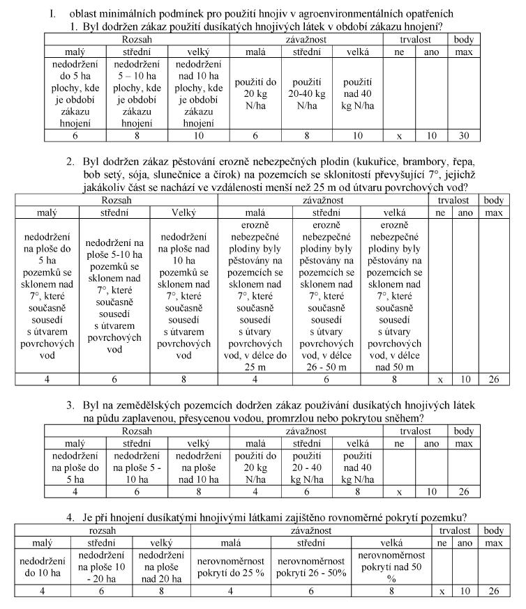 I. oblast minimálních podmínek pro použití hnojiv v agroenvironmentálních